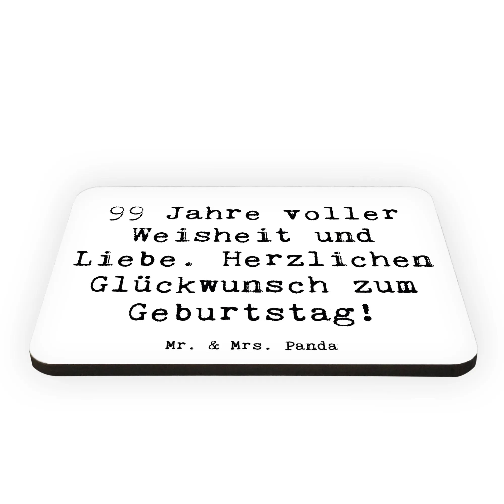 Der 99. Geburtstag ist ein ganz besonderes Ereignis, und was könnte da besser passen als unser liebevoll gestalteter Kühlschrankmagnet von Mr. & Mrs. Panda? Dieser charmante Magnet mit dem Spruch '99 Jahre voller Weisheit und Liebe. Herzlichen Glückwunsch zum Geburtstag!' ist das ideale Geschenk für all diejenigen, die dieses witzige und gleichzeitig herzerwärmende Motto schätzen.