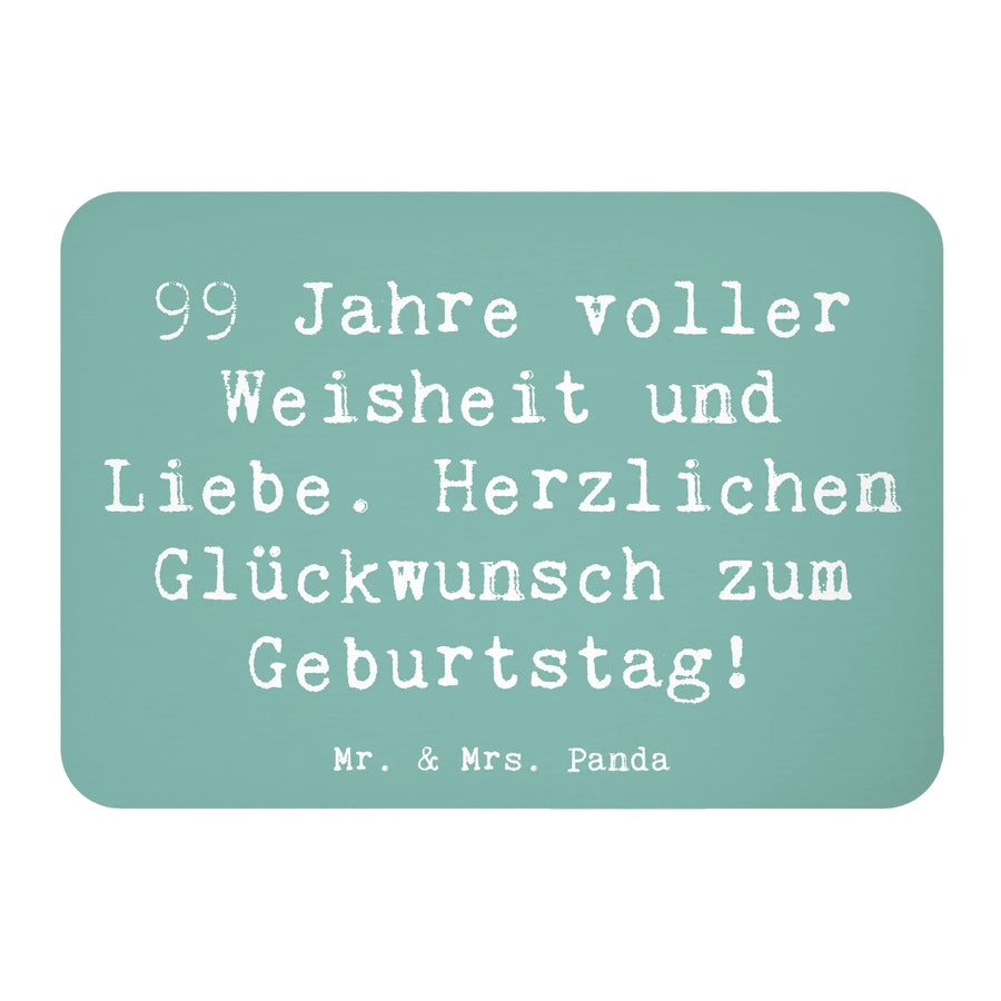 Wenn du auf der Suche nach einem ganz besonderen Geschenk zum 99. Geburtstag bist, dann ist dieser Kühlschrankmagnet von Mr. & Mrs. Panda genau das Richtige für dich! Mit dem liebevollen Spruch "99 Jahre voller Weisheit und Liebe. Herzlichen Glückwunsch zum Geburtstag!" bringt dieser Magnet eine wunderschöne Botschaft direkt in dein Zuhause.