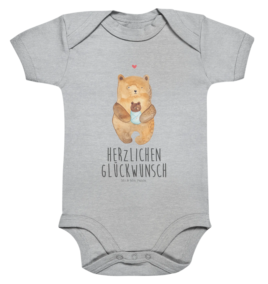 Der Organic Baby Body mit dem niedlichen Motiv "Bär mit Baby" aus der exklusiven Bären-Kollektion von Mr. & Mrs. Panda ist das perfekte Geschenk für Schwangere, frischgebackene Eltern oder als besonderes Präsent zur Taufe. Hergestellt aus hochwertiger Baumwolle, bietet dieser Wickelbody nicht nur einen großen Tragekomfort, sondern ist auch ideal für die empfindliche Haut deines Babys. Das sanfte Heather Grey sorgt dafür, dass dein kleiner Schatz immer gut aussieht, während das entzückende Motiv eines Bären, der sein Babybärchen sanft in der Hand hält, jedem sofort ein Lächeln ins Gesicht zaubert.