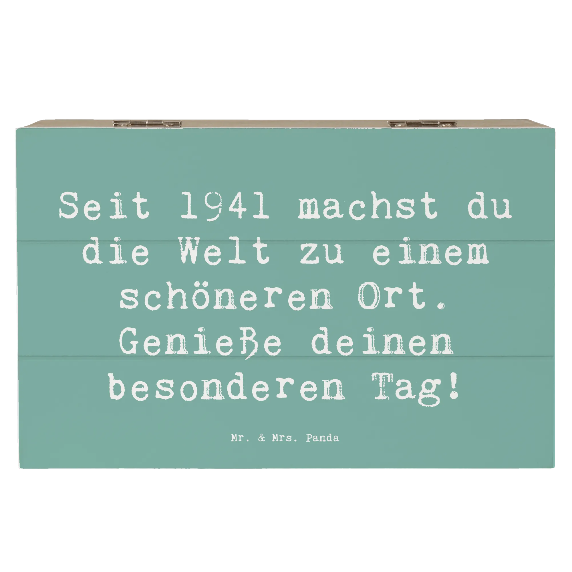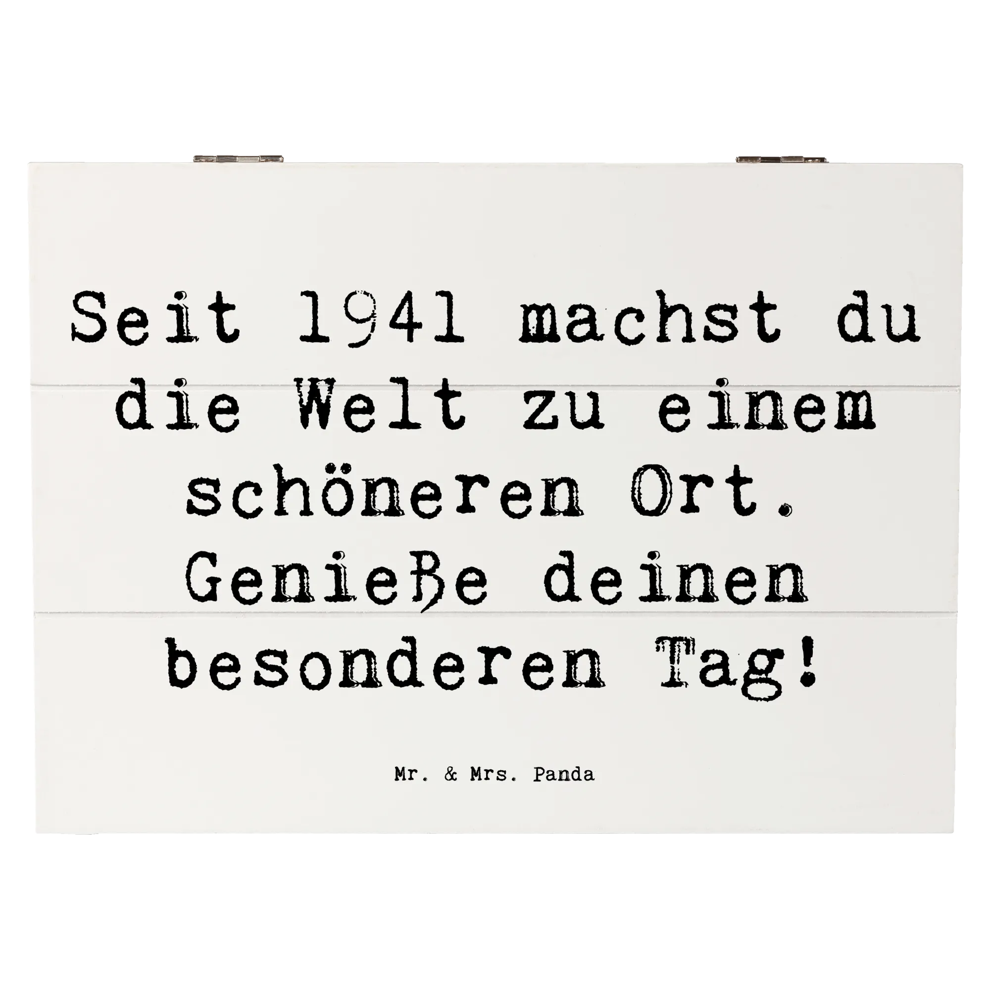Die Holzkiste "1941 Geburtstag" von Mr. & Mrs. Panda ist das perfekte Geschenk für alle, die 2021 ihren besonderen Tag feiern. Mit einem liebevoll gestalteten Spruch, "Seit 1941 machst du die Welt zu einem schöneren Ort. Genieße deinen besonderen Tag!", bringt diese Kiste nicht nur Freude, sondern auch bleibende Erinnerungen.