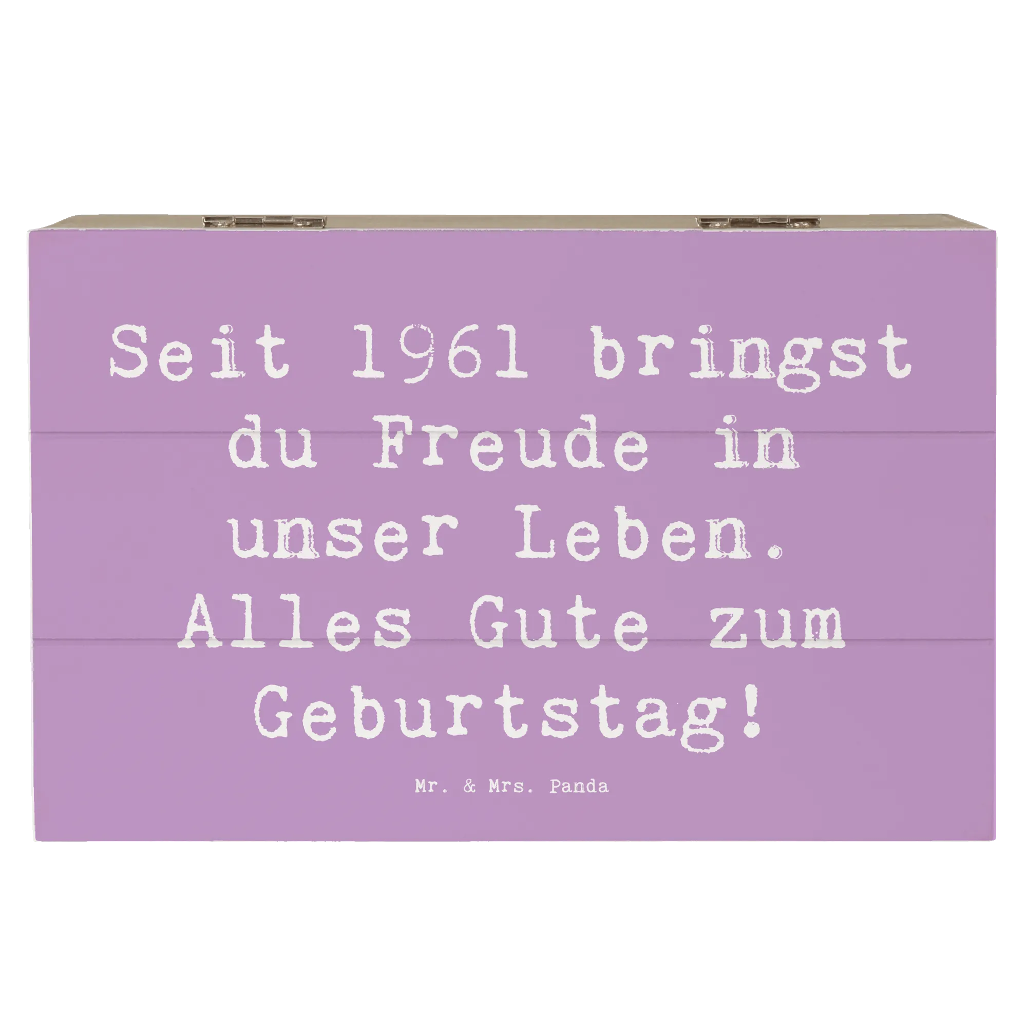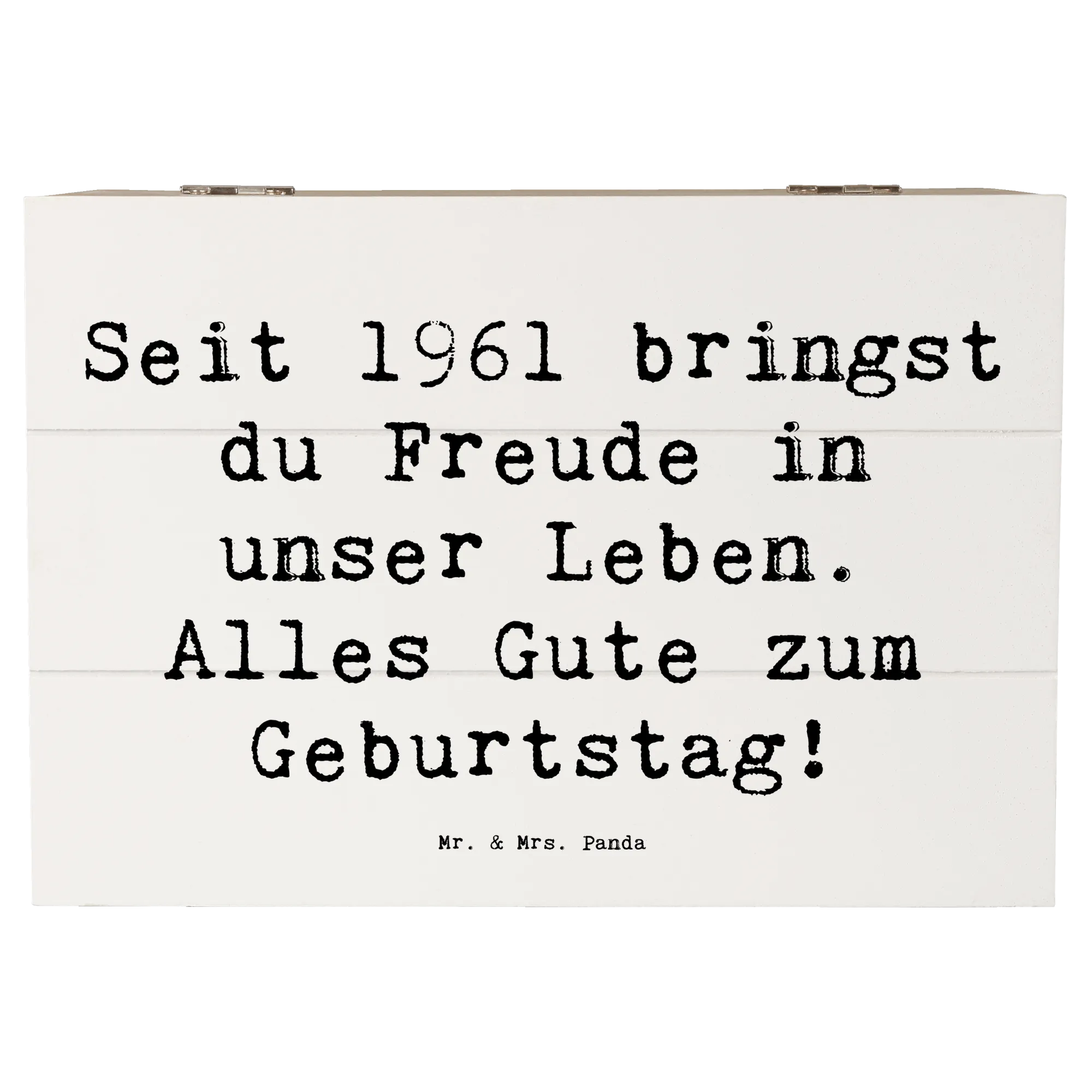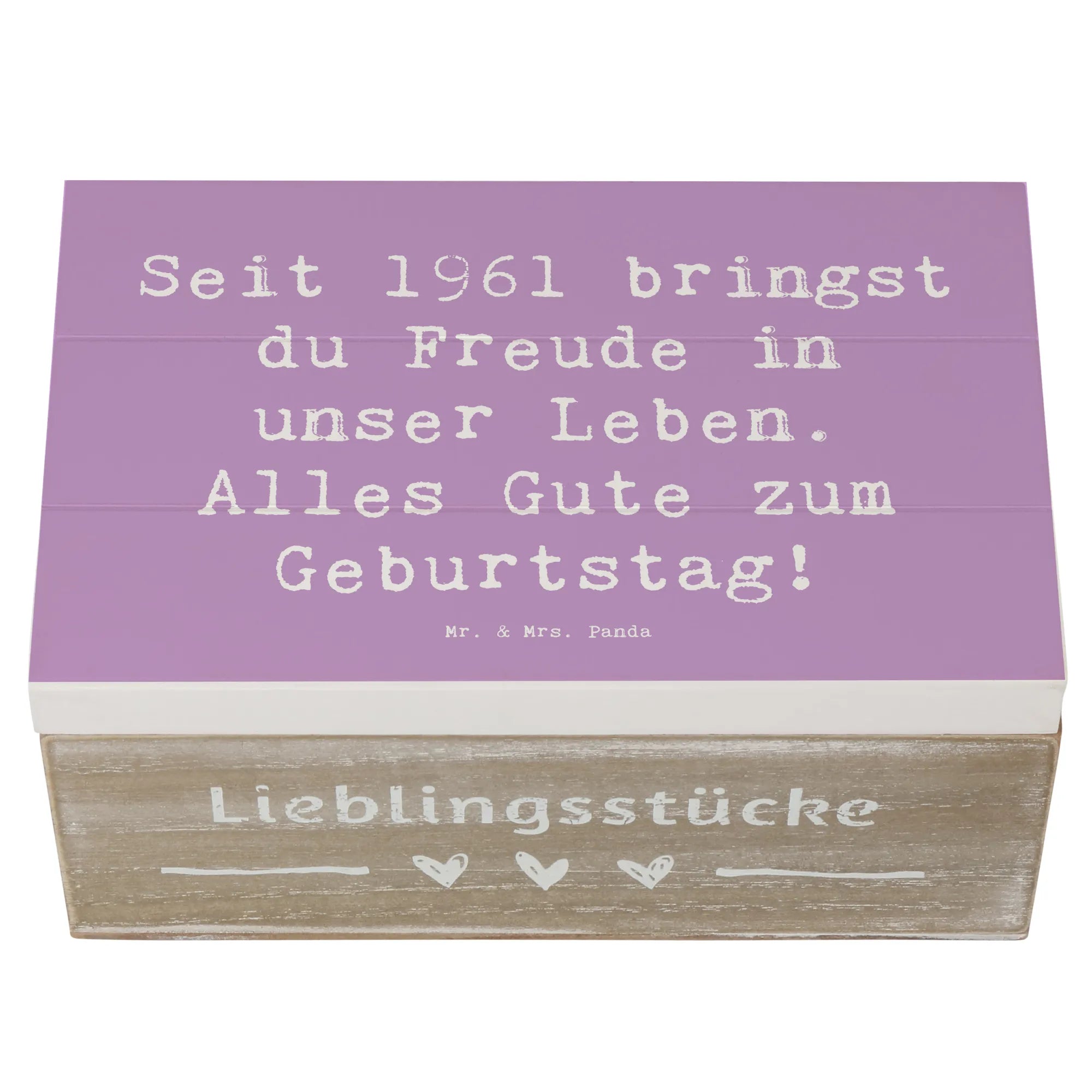 Entdecke die wunderbare Holzkiste von Mr. & Mrs. Panda, die das perfekte Geschenk für jeden Geburtstag ist! Mit dem liebevollen Motiv "Seit 1961 bringst du Freude in unser Leben. Alles Gute zum Geburtstag!" wird diese Kiste zu einem handgemachten Schatz, der besondere Erinnerungen bewahrt.