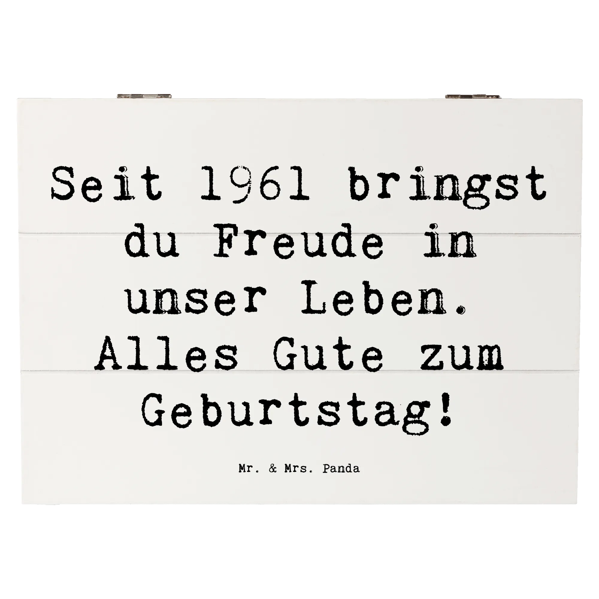 Eine liebevoll gestaltete Holzkiste von Mr. & Mrs. Panda: Unsere Holzkiste „1961 Geburtstag“ aus der Geburtstags Geburtsjahr-Kollektion ist das perfekte Geschenk für alle, die Erinnerungen bewahren möchten. Der herzliche Spruch „Seit 1961 bringst du Freude in unser Leben. Alles Gute zum Geburtstag!“ macht diese Holzbox zu einem emotionalen Unikat.