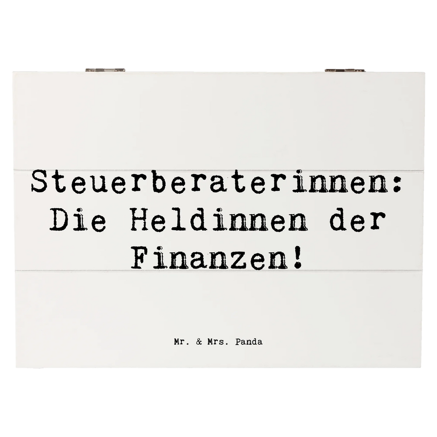 Die wunderschöne Holzkiste von Mr. & Mrs. Panda ist das perfekte Geschenk für jede Steuerberaterin! Mit ihrem liebevoll handgezeichneten Design und dem inspirierenden Spruch "Steuerberaterinnen: Die Heldinnen der Finanzen!" bringt diese Kiste Freude und Wertschätzung in den Berufsalltag.