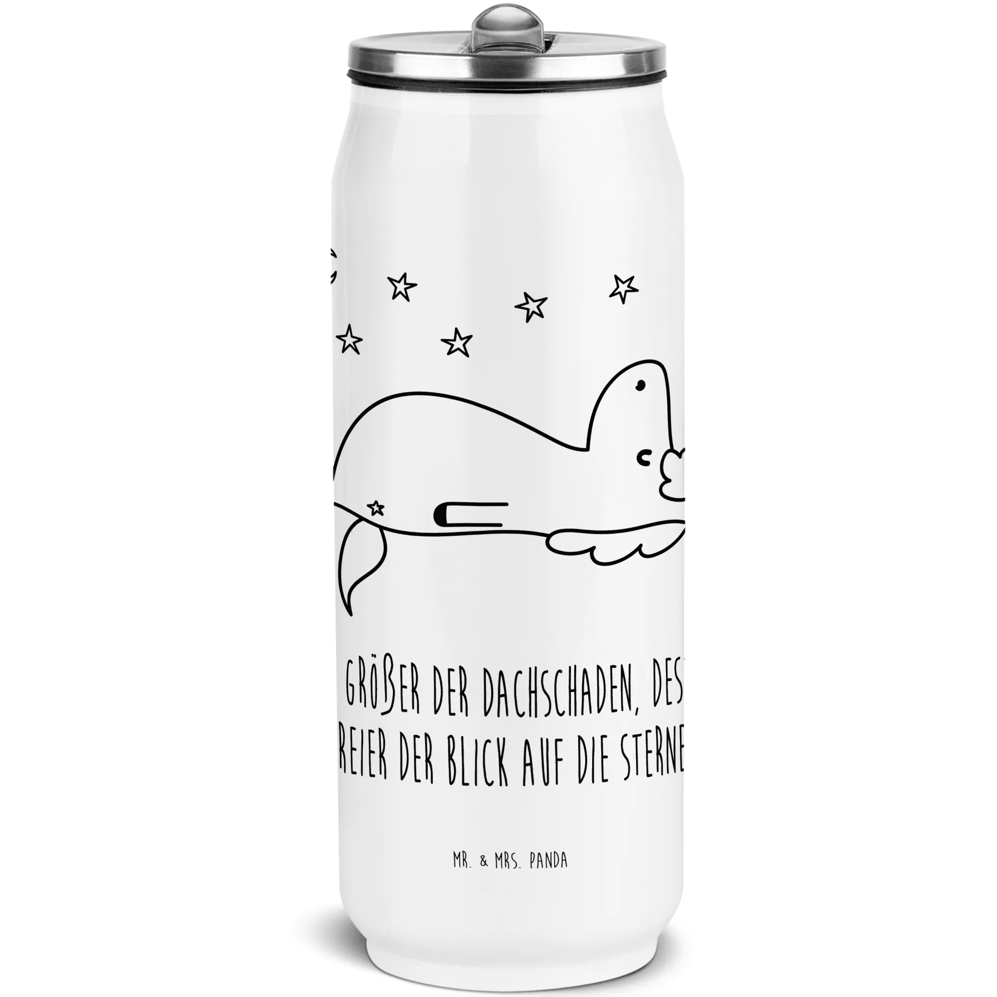 Die wunderschöne und edle Edelstahl Getränkedosen Trinkflasche von Mr. & Mrs. Panda mit dem zauberhaften Einhorn Sternenhimmel Motiv ist das perfekte Geschenk für alle Einhorn-Liebhaber! Ob für den nächsten Campingausflug, die Wanderung oder einfach im Alltag – diese stylische Flasche bringt ein bisschen Magie in jeden Moment. Mit ihrem charmanten Design und dem Spruch "Je größer der Dachschaden, desto freier der Blick auf die Sterne" zaubert sie ein Lächeln auf jedes Gesicht.