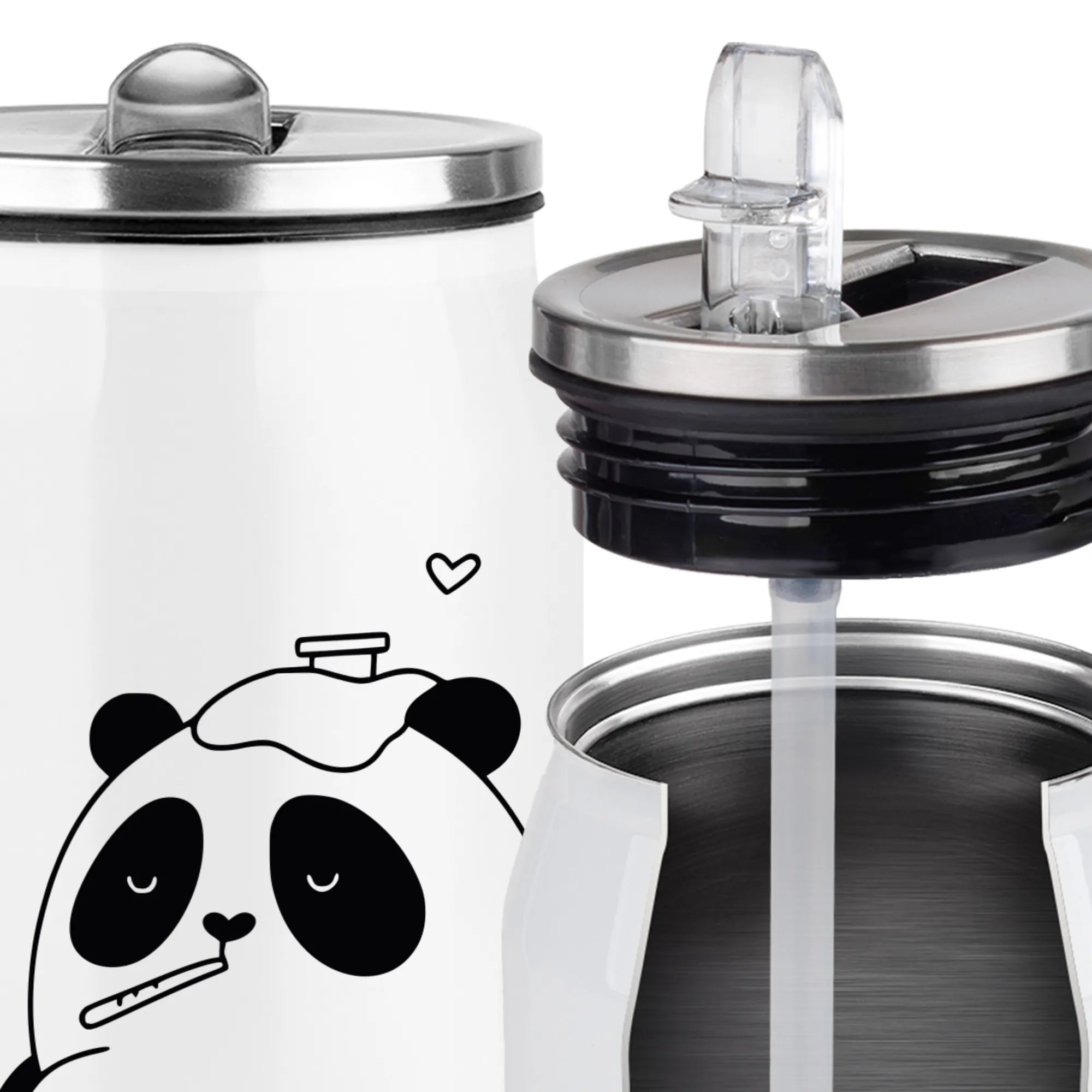 🐼 Praktischer Trinkhalm und klappbare Öffnung – für einfacheres Trinken unterwegs.