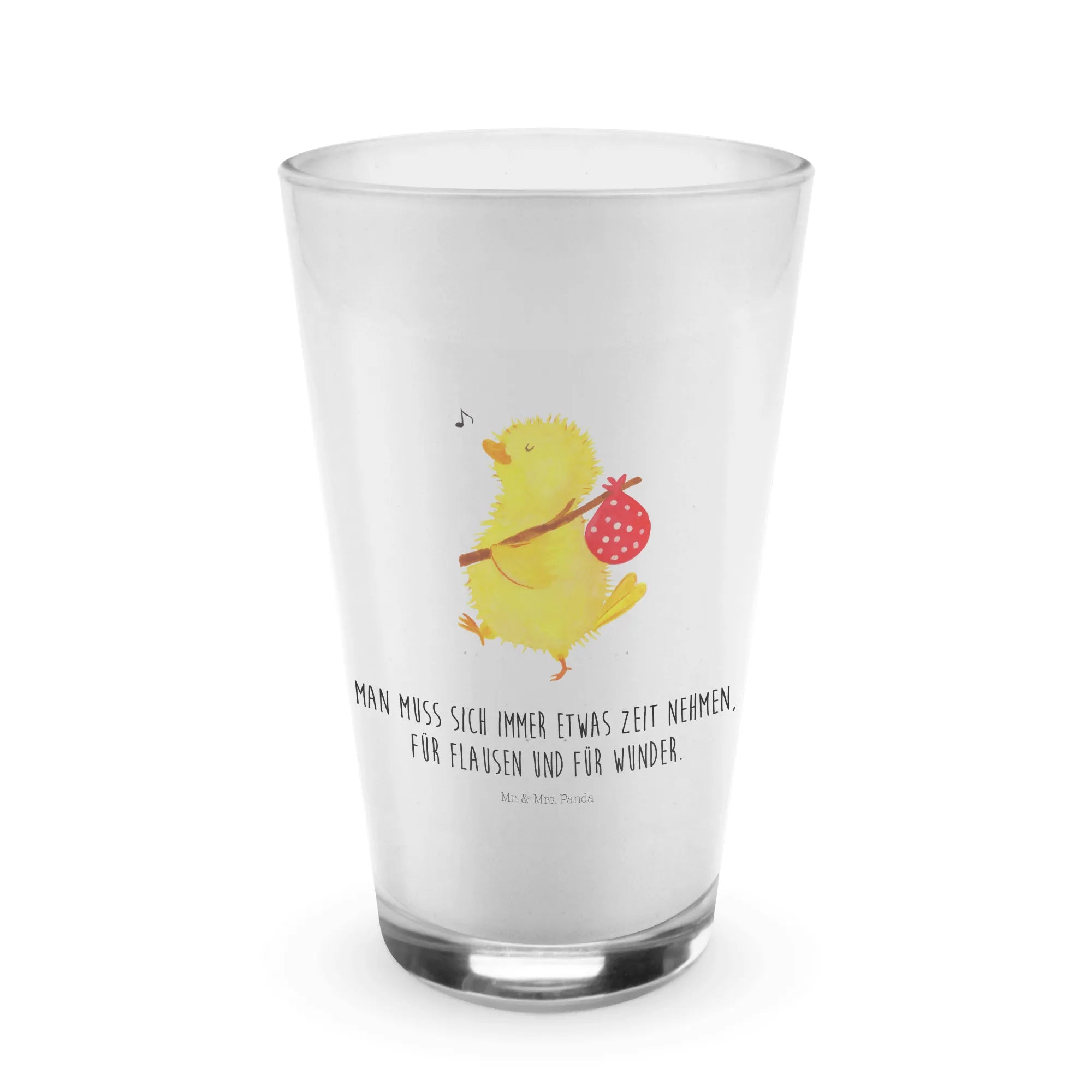 Das süße Küken Wanderer Glas von Mr. & Mrs. Panda ist das ideale Geschenk für alle, die Ostern und die Frühlingszeit lieben. Mit seinem zauberhaften Motiv eines kleinen Küken, das stolz mit einem Beutel seiner wichtigsten Dinge umherzieht, versprüht dieses Glas pure Lebensfreude. Jeder Schluck aus diesem edlen, satinierten Premiumglas wird zur kleinen Auszeit, denn: 'Man muss sich immer etwas Zeit Nehmen, für Flausen und für Wunder.'