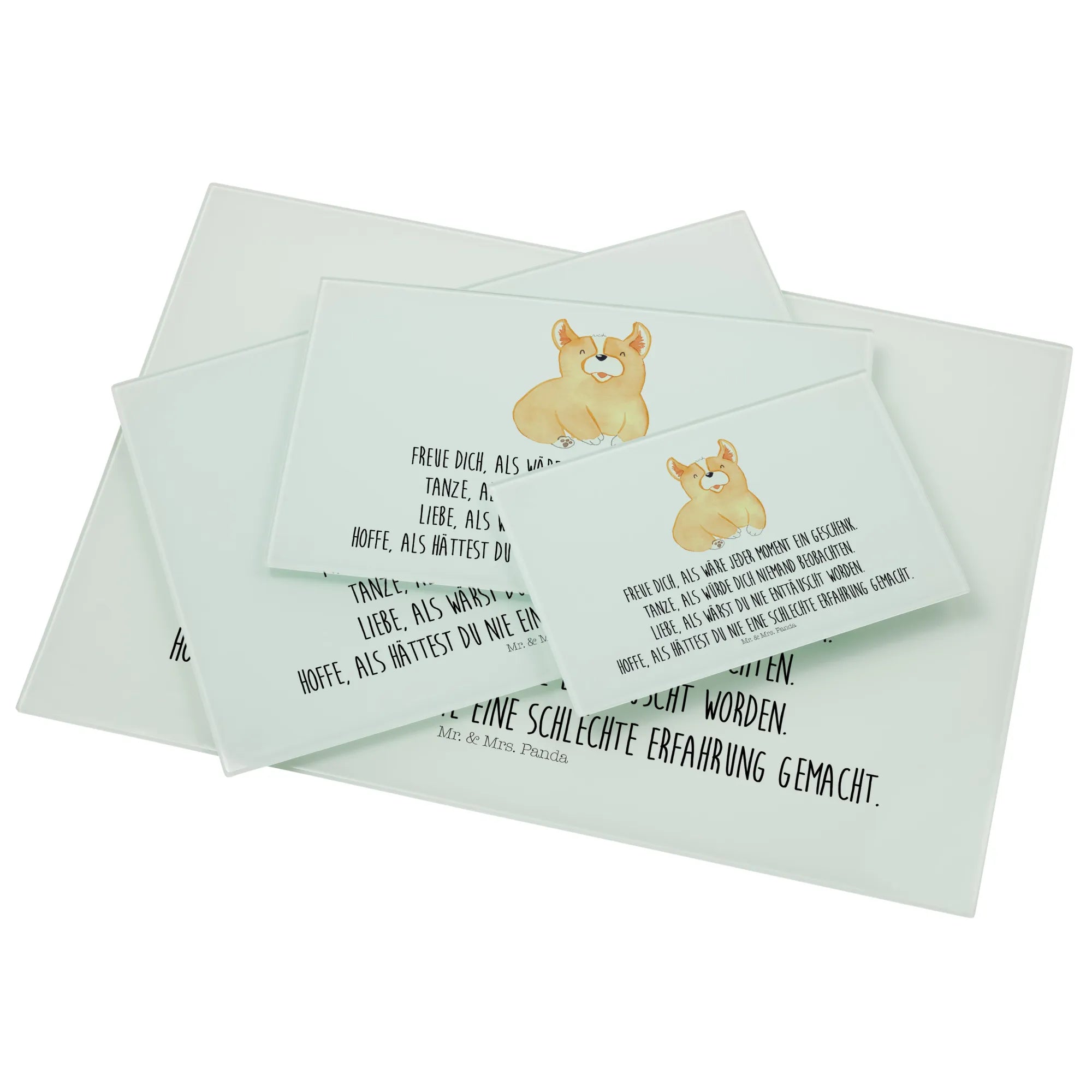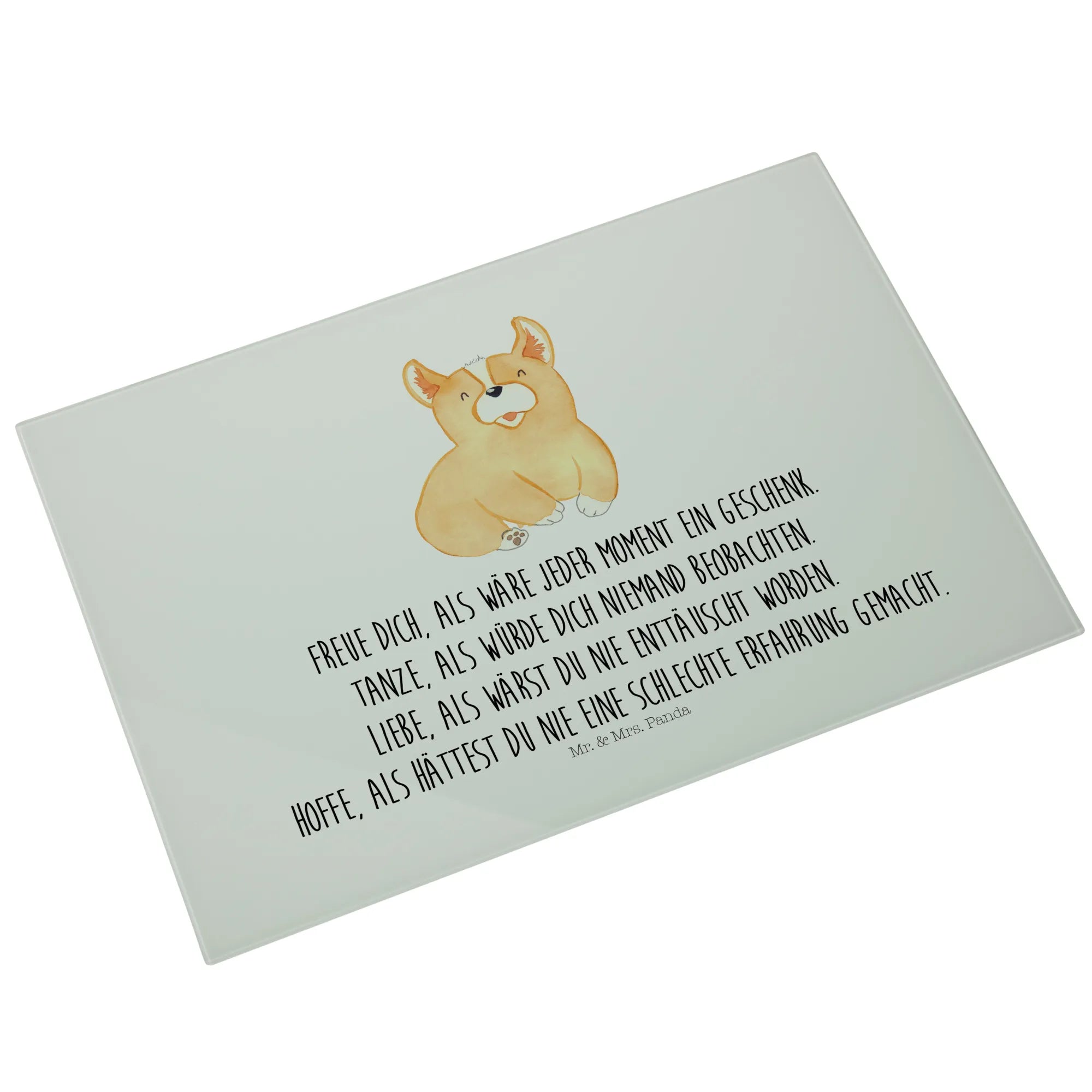Das XL Glas Schneidbrett mit dem niedlichen Corgie-Motiv von Mr. & Mrs. Panda ist das perfekte Geschenk für all die Tierliebhaber und Hundebesitzer, die das Glück und die Freude in ihrem Alltag feiern möchten.