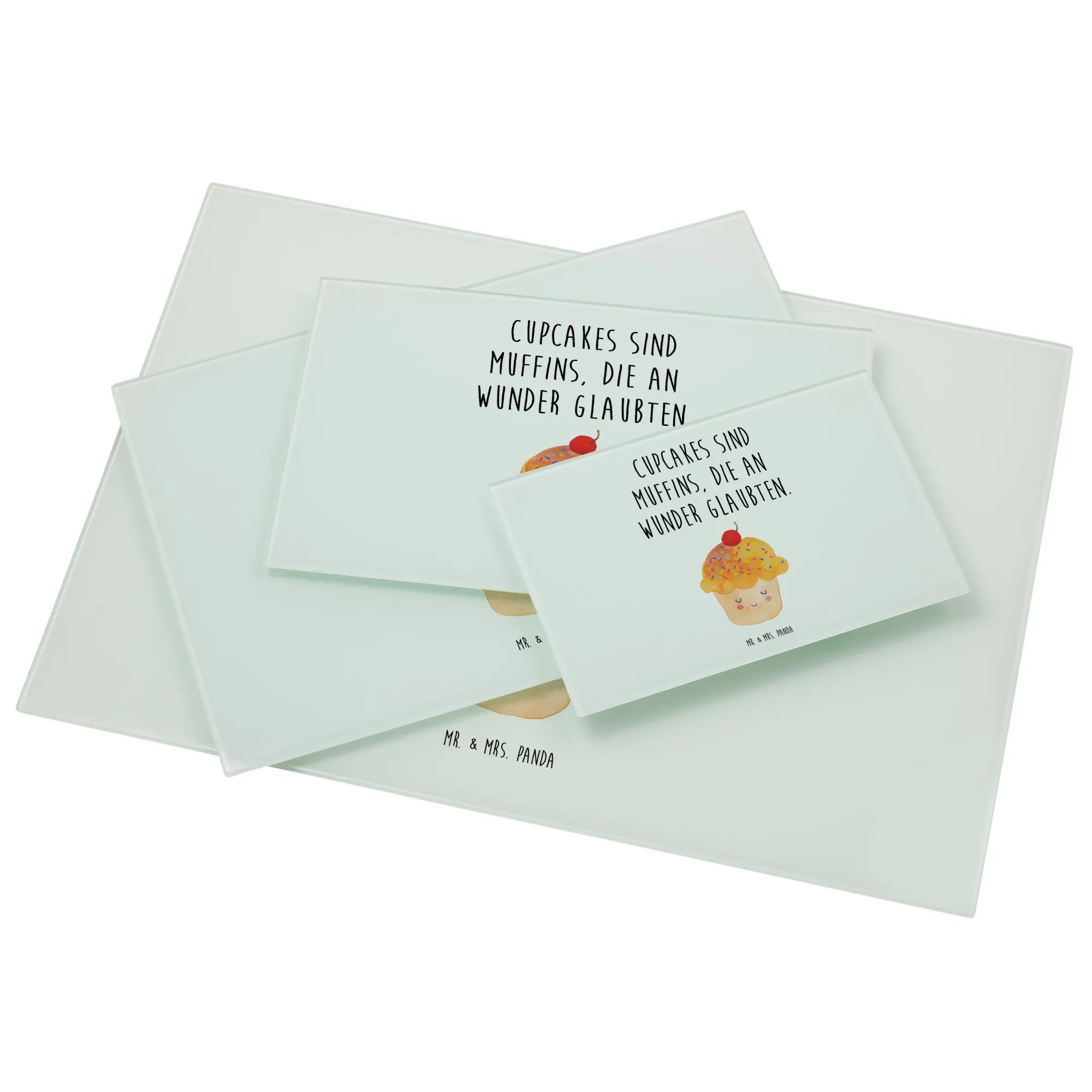 Suchst du nach einem perfekten Geschenk für alle Backliebhaber? Dann ist das Medium Glas Schneidbrett mit dem zauberhaften Cupcake-Motiv von Mr. & Mrs. Panda genau das Richtige für dich! Ob für die eigene Küche, als Küchen Deko oder als liebevolles Geschenk für Freunde und Familie, dieses Schneidebrett bringt nicht nur Freude, sondern auch gute Laune in jede Küchensituation. Mit dem süßen Slogan "Cupcakes sind Muffins, die an Wunder glaubten." verleiht es deiner Küche eine kreative Note und inspiriert beim Backen von köstlichen Kuchen und Muffins.