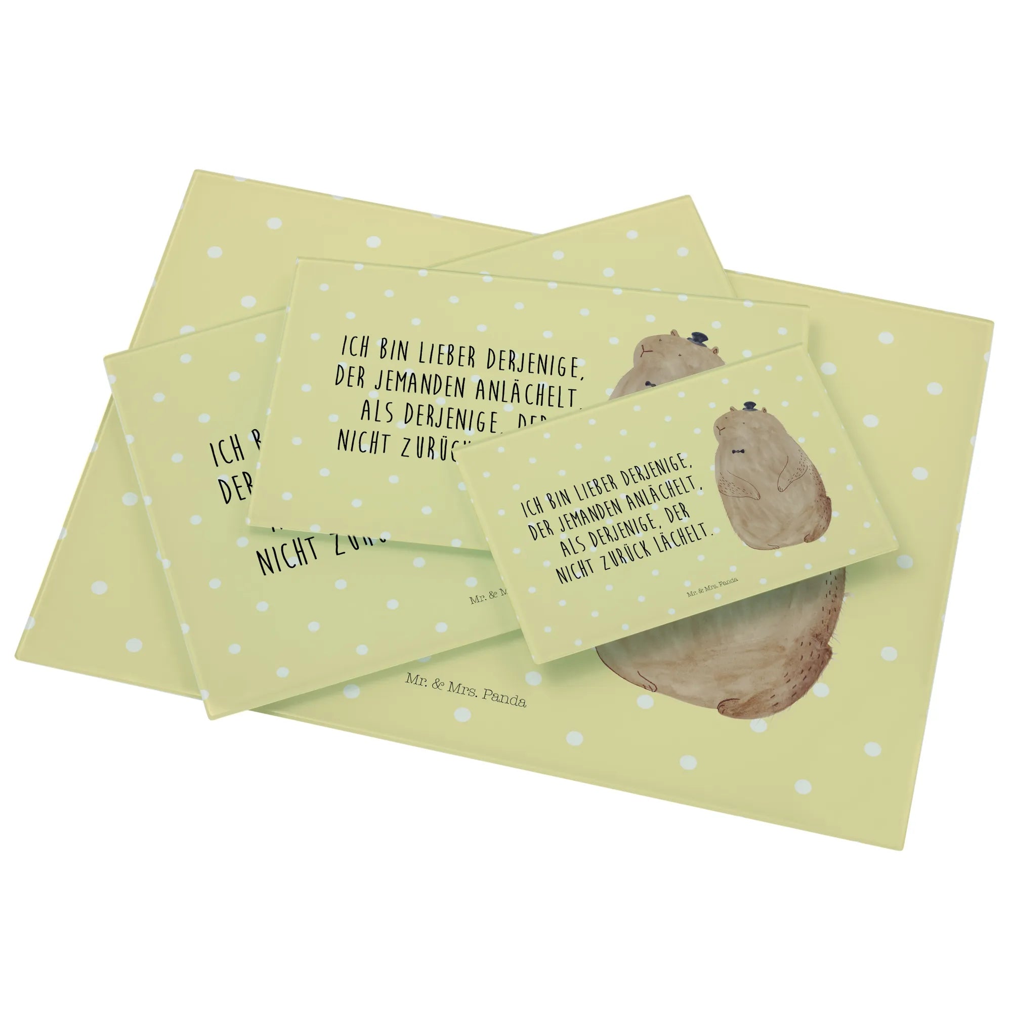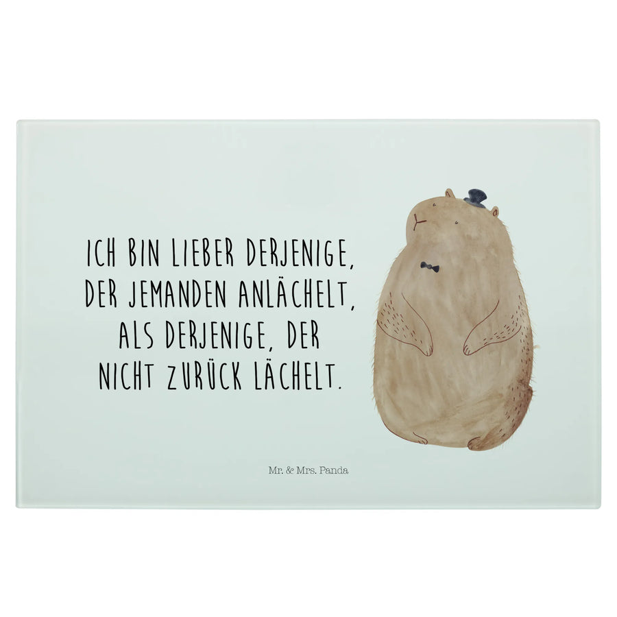 Das XL Glas Schneidbrett mit dem süßen Murmeltier-Motiv aus der Small World Kollektion von Mr. & Mrs. Panda ist das perfekte Geschenk für alle Tierliebhaber und Hobbyköche.