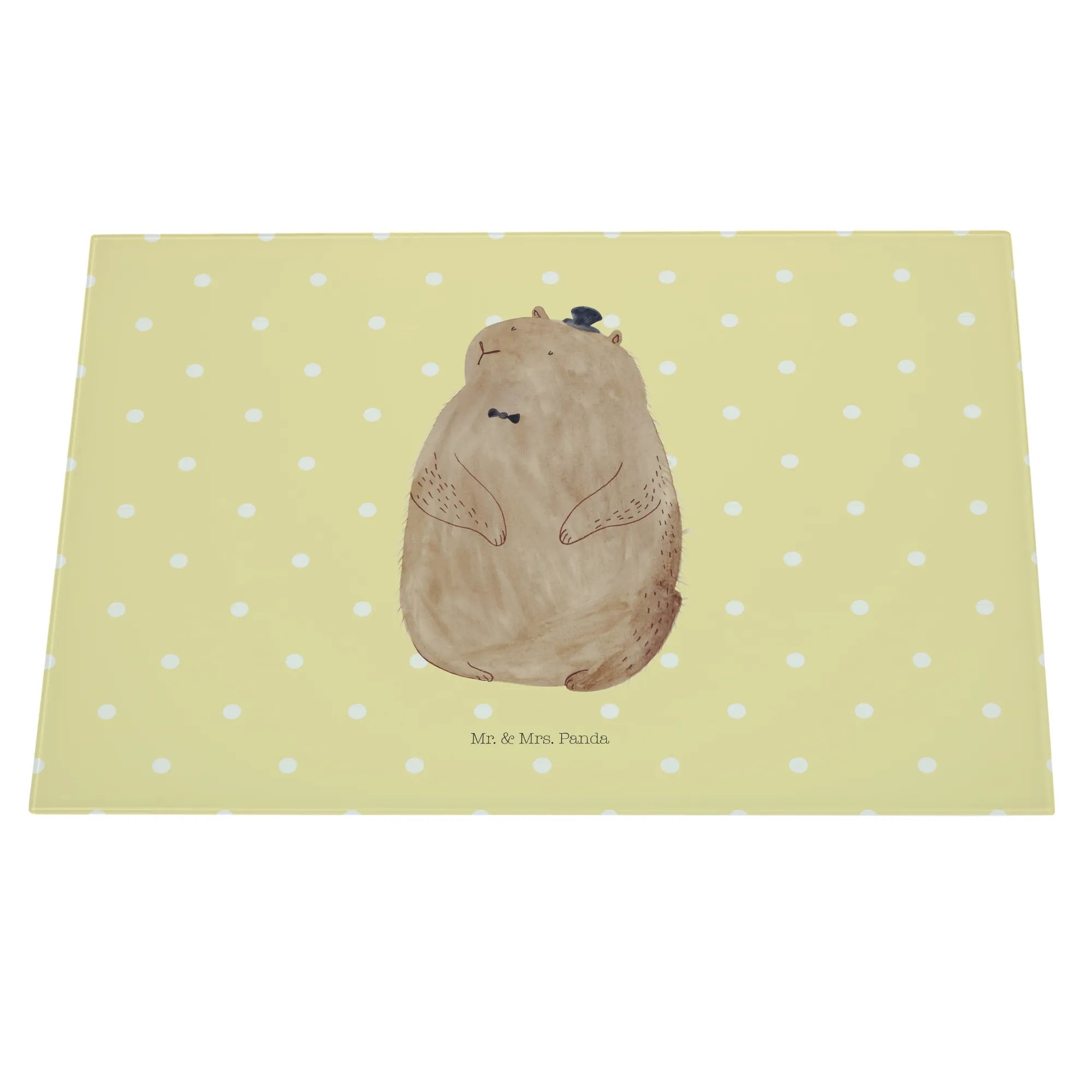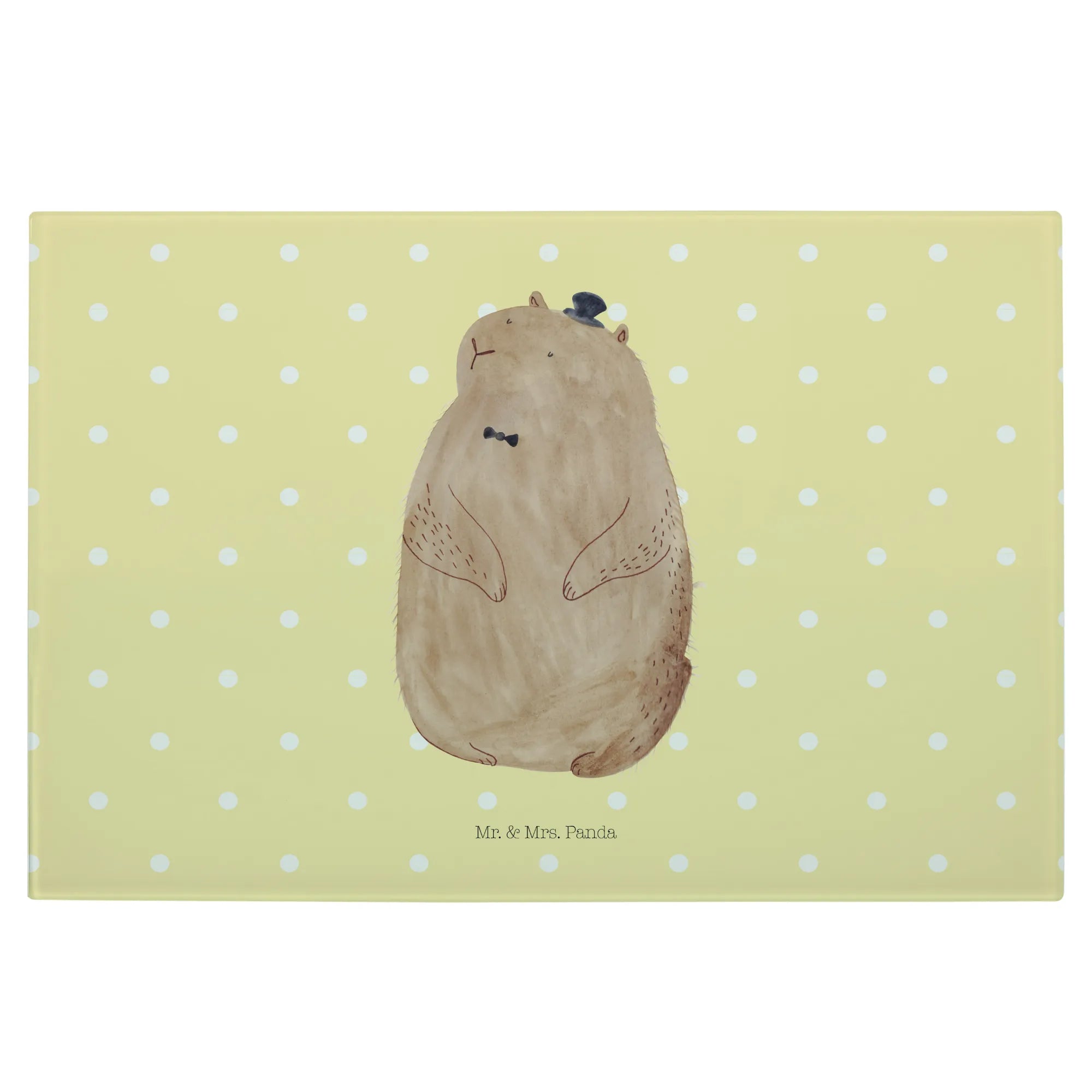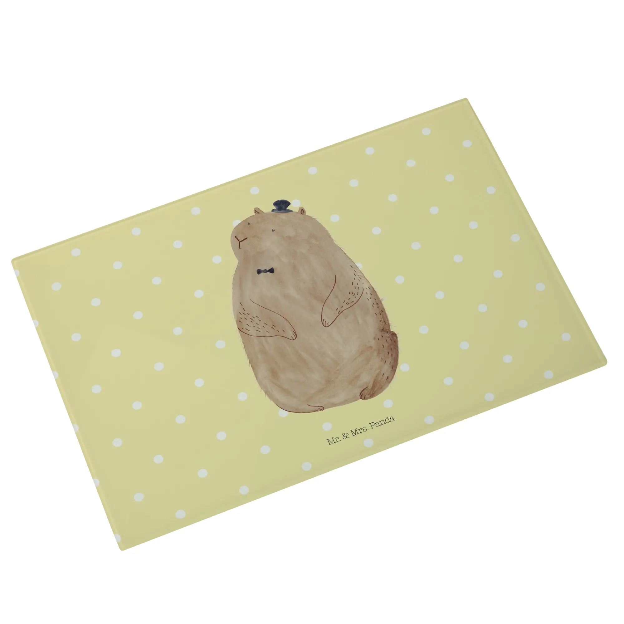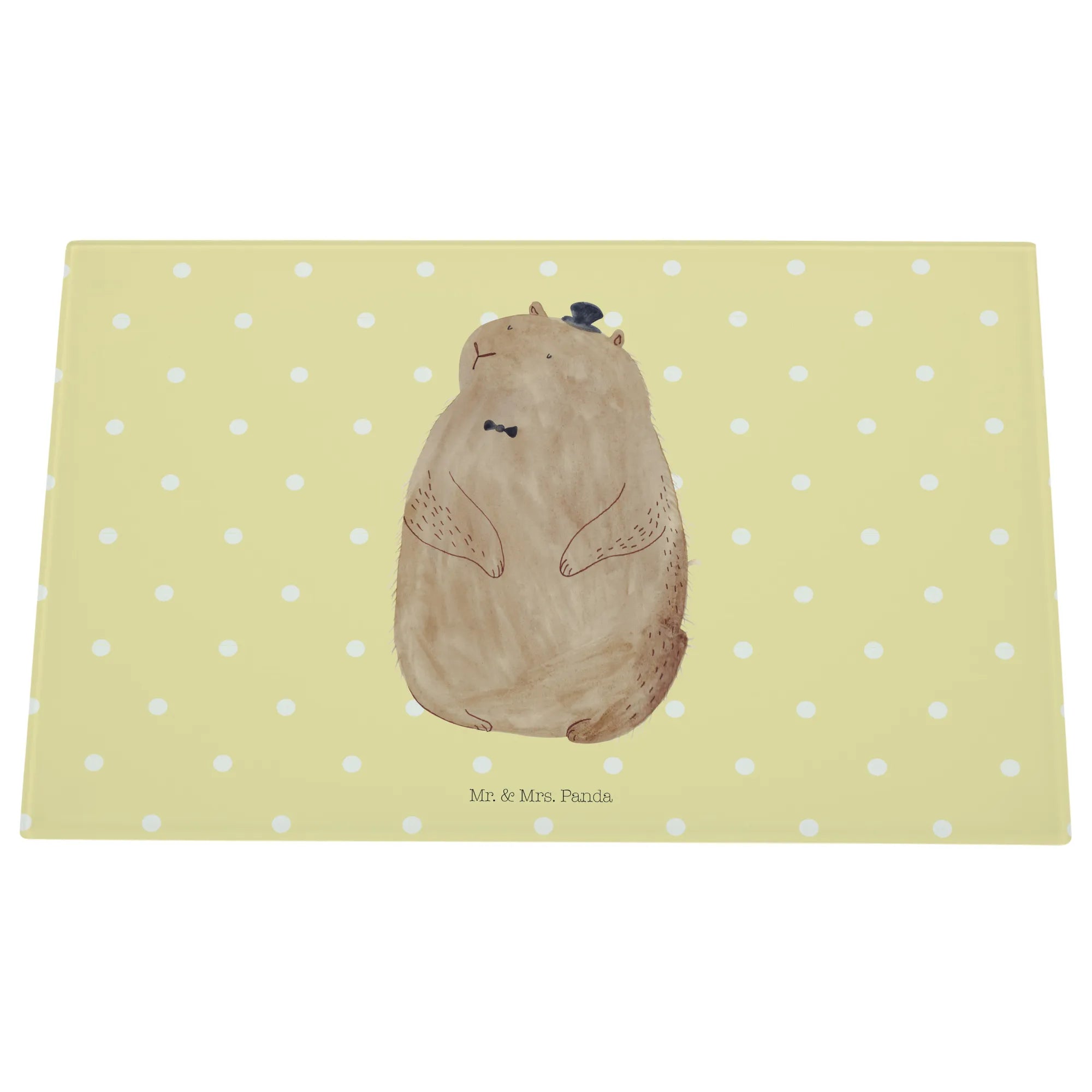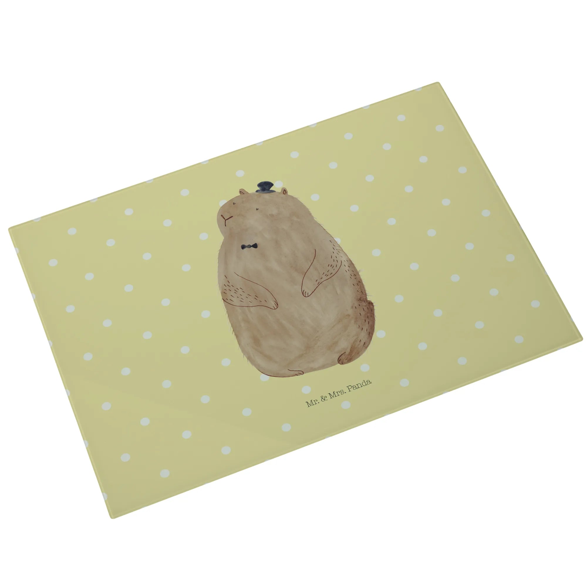 Das Medium Glas Schneidbrett mit dem fröhlichen Murmeltier-Motiv von Mr. & Mrs. Panda ist mehr als nur ein praktisches Küchenutensil. Es ist ein Stück Lebensfreude, dass beim Kochen und Vorbereiten von leckeren Speisen gute Laune verbreitet. Mit einer Größe von 284 mm x 200 mm ist dieses Schneidebrett ideal geeignet, um Gemüse, Obst oder Fleisch zu schneiden. Das süße Murmeltier, das einen Zylinder auf dem Kopf trägt, bringt nicht nur einen Hauch von Niedlichkeit in Deine Küche, sondern vermittelt auch eine Botschaft der Freundlichkeit und des Respekts.