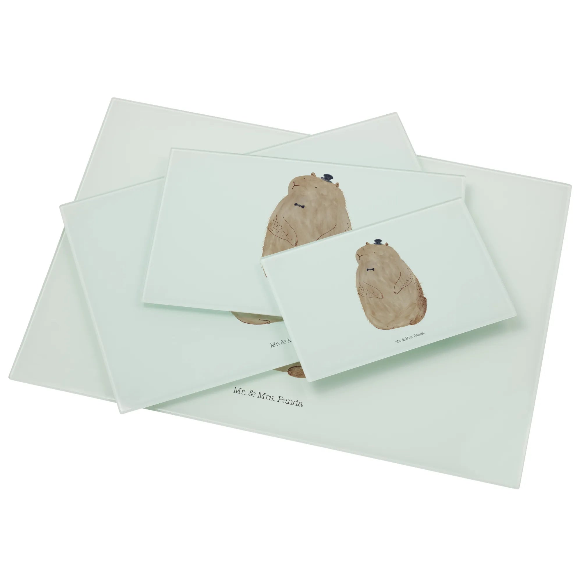 Dein perfekter Begleiter in der Küche – das XL Glas Schneidebrett mit dem süßen Murmeltier-Motiv von Mr. & Mrs. Panda! Dieses einzigartige und stabile Schneidbrett ist nicht nur praktisch, sondern bringt auch einen Hauch von Fröhlichkeit in deine Küche.
