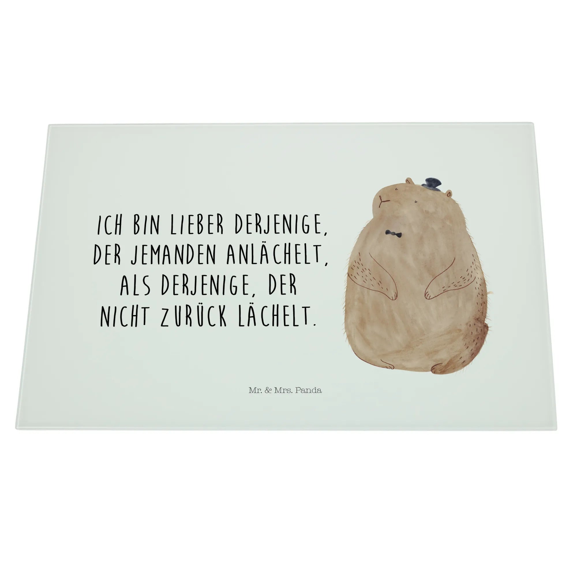 Glasschneidebrett Murmeltier - Medium Glas Schneidbrett - mit Spruch - Weiß