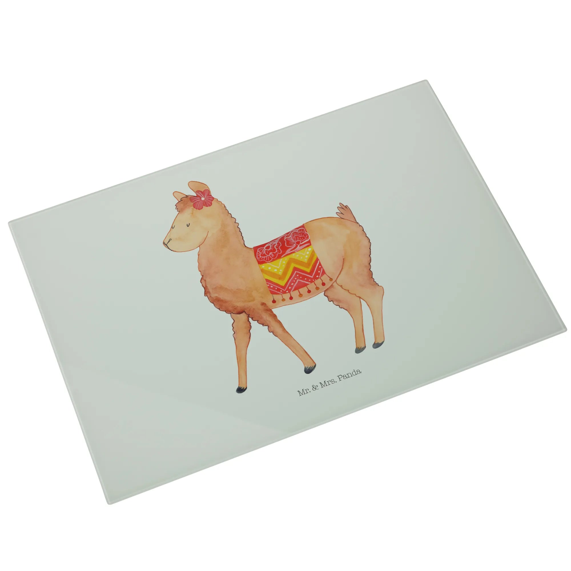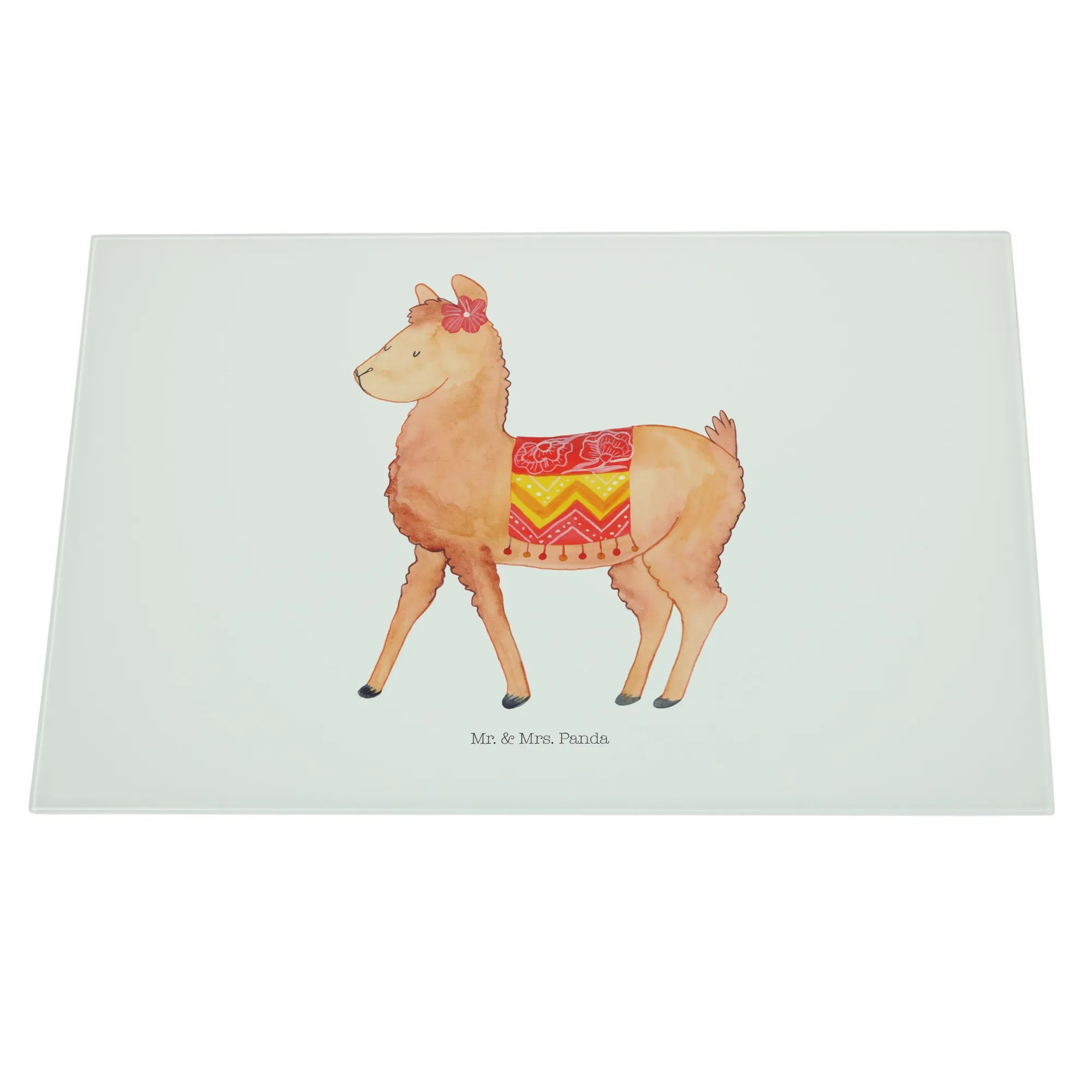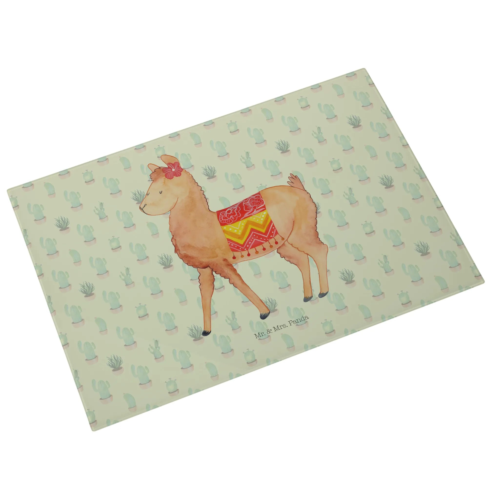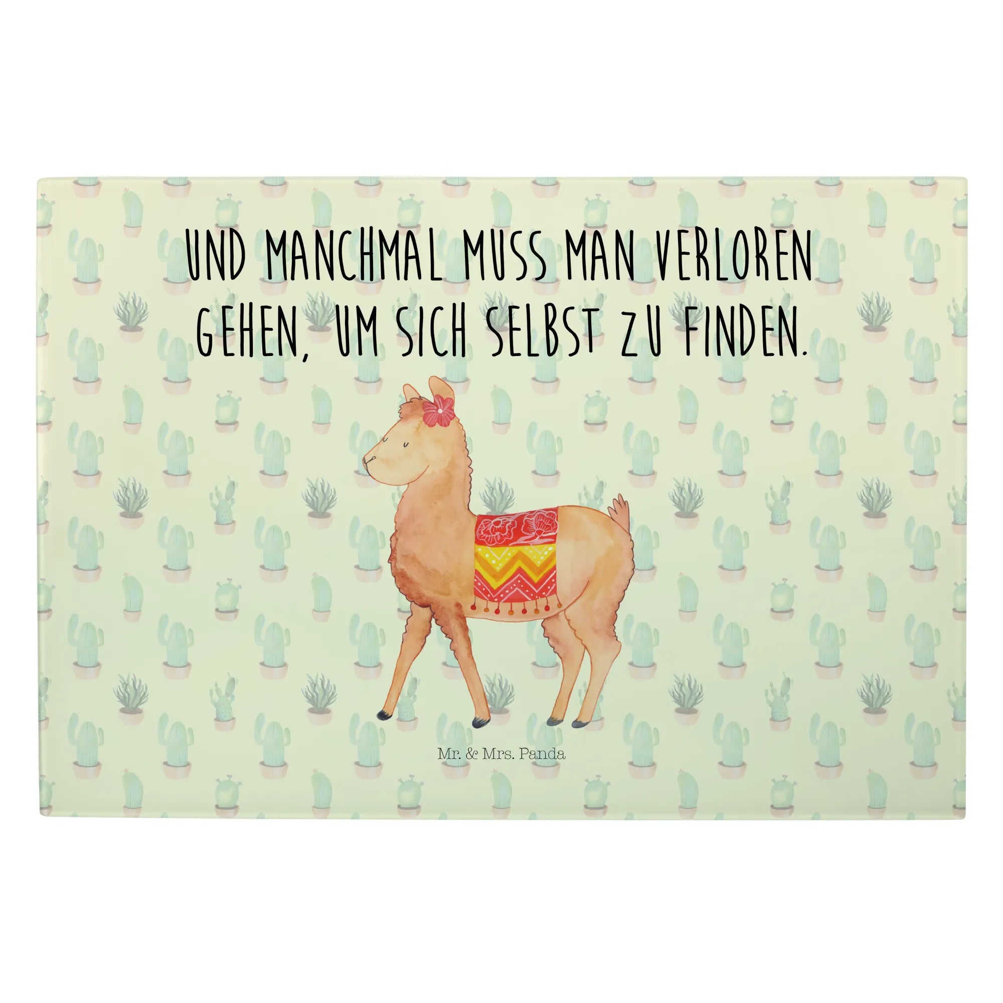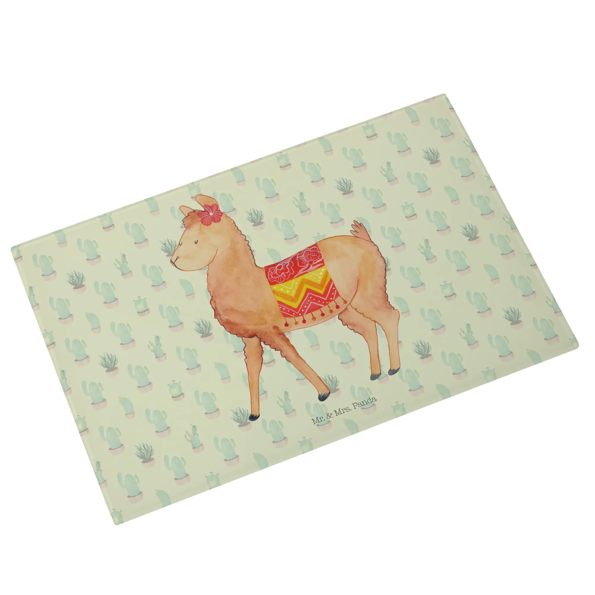 Das XL Glas Schneidbrett "Alpaka stolz" von Mr. & Mrs. Panda ist das perfekte Geschenk für alle Kochliebhaber und Kunstfreunde!