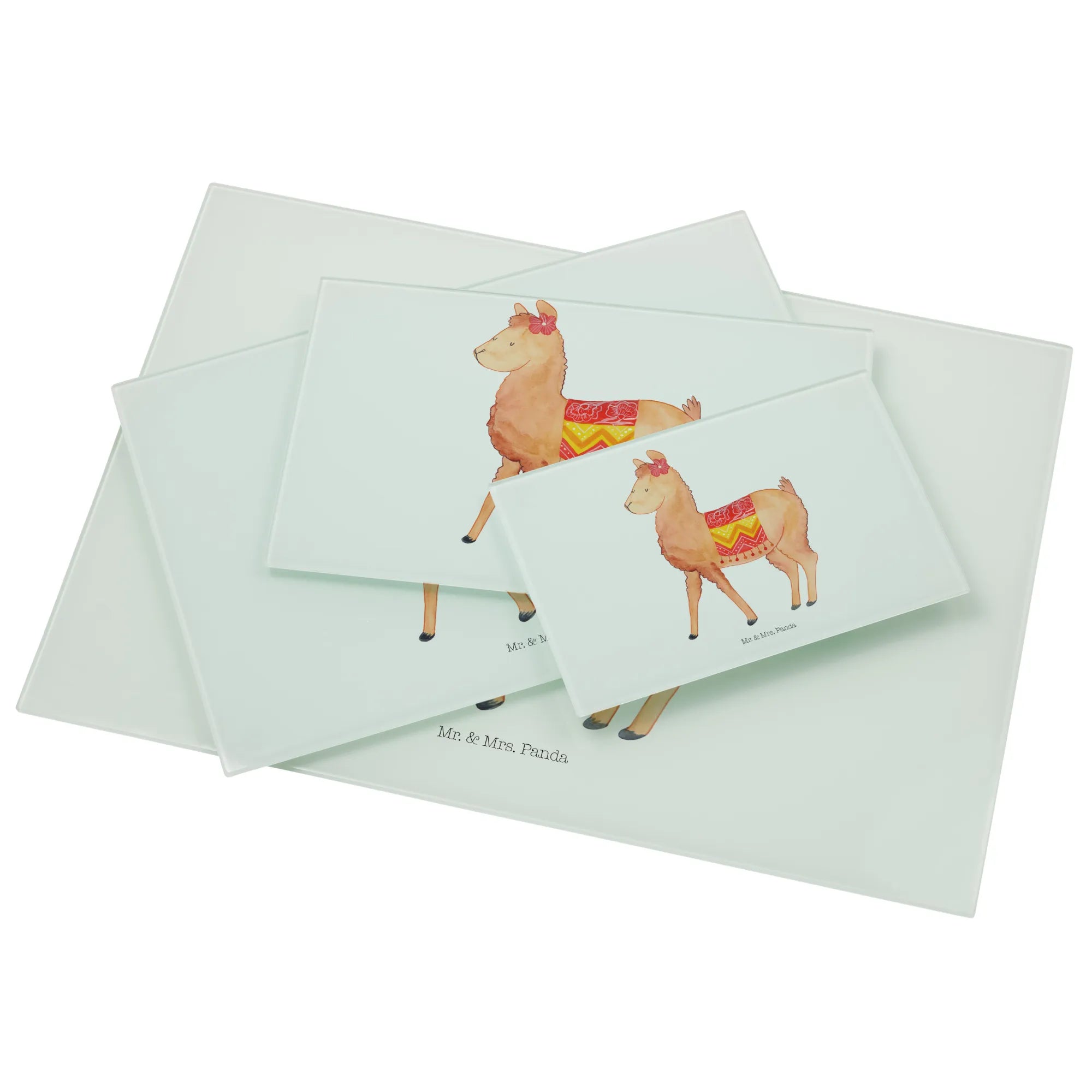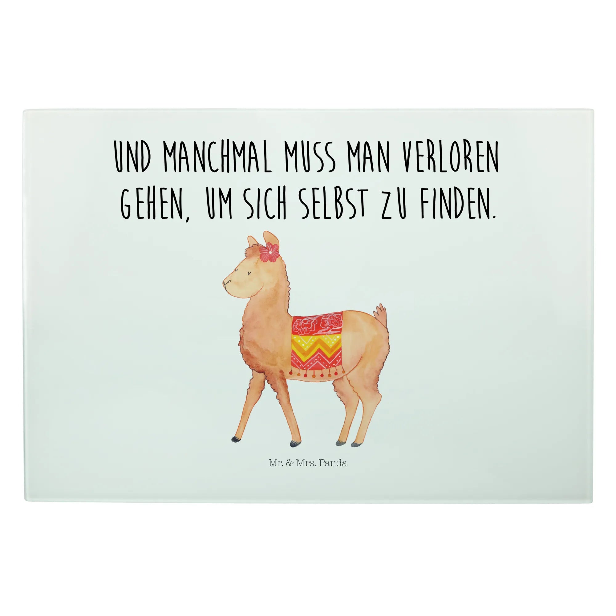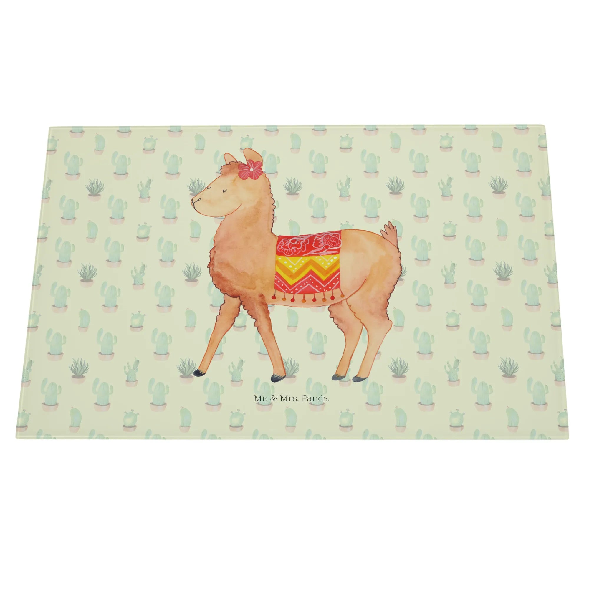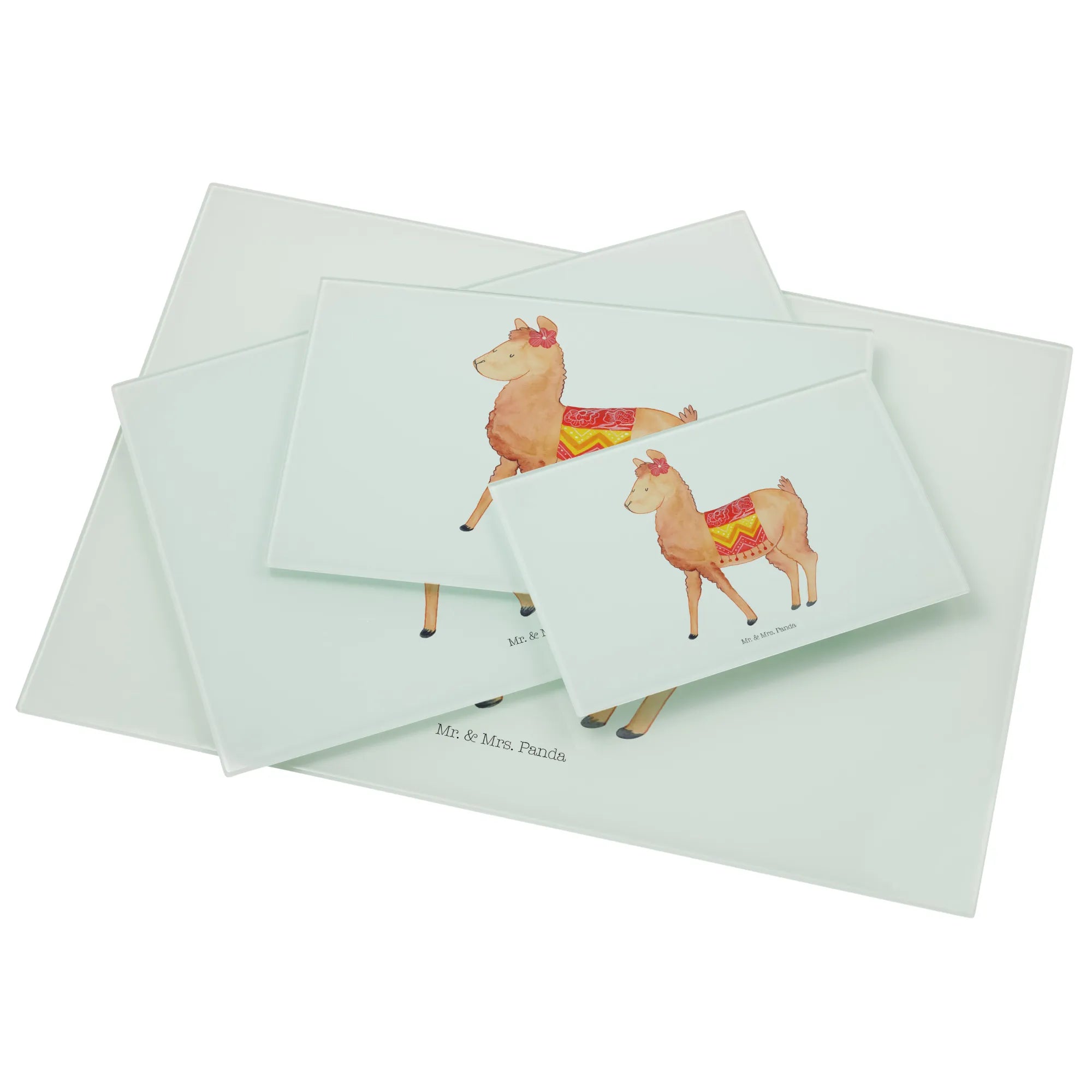 Das XL Glas Schneidbrett "Alpaka stolz" von Mr. & Mrs. Panda ist das perfekte Geschenk für alle Kochliebhaber und Kunstfreunde!
