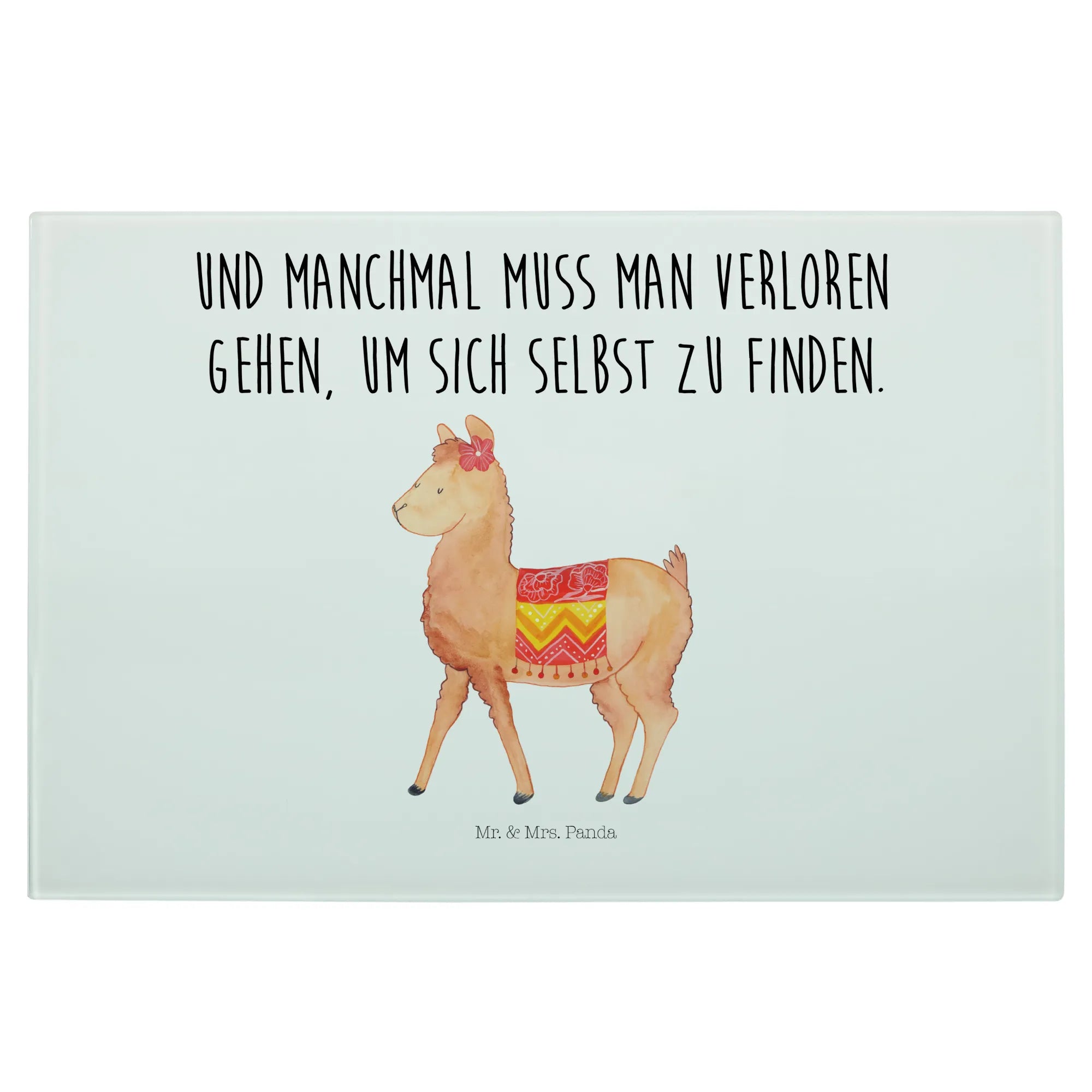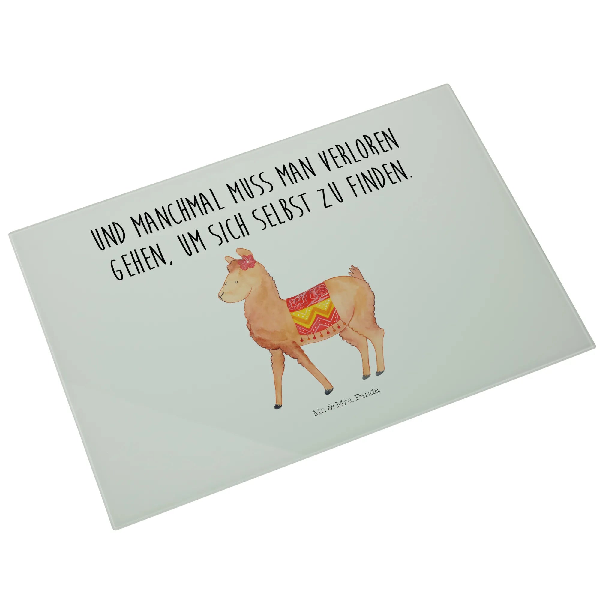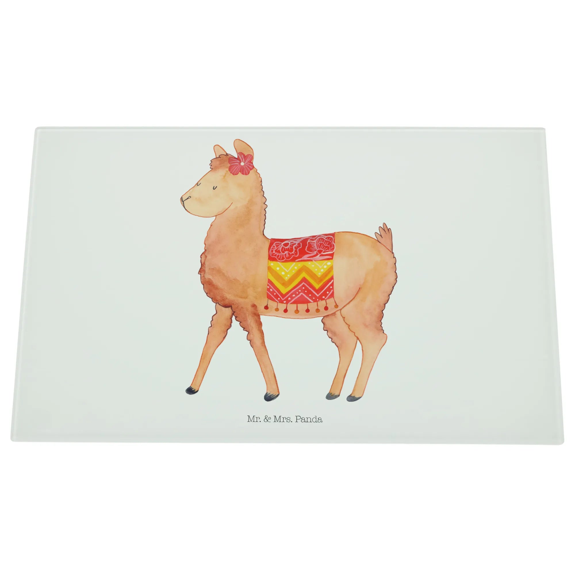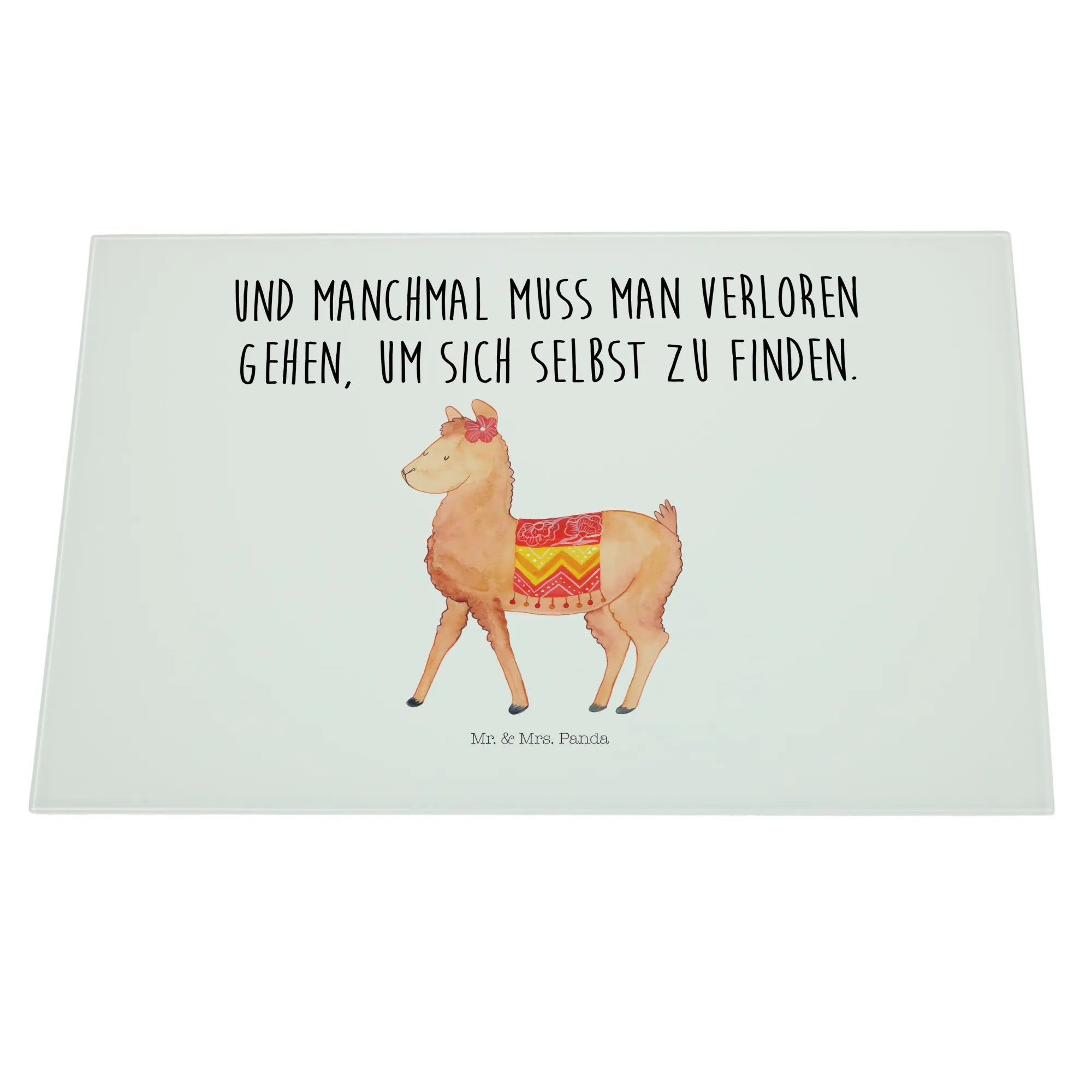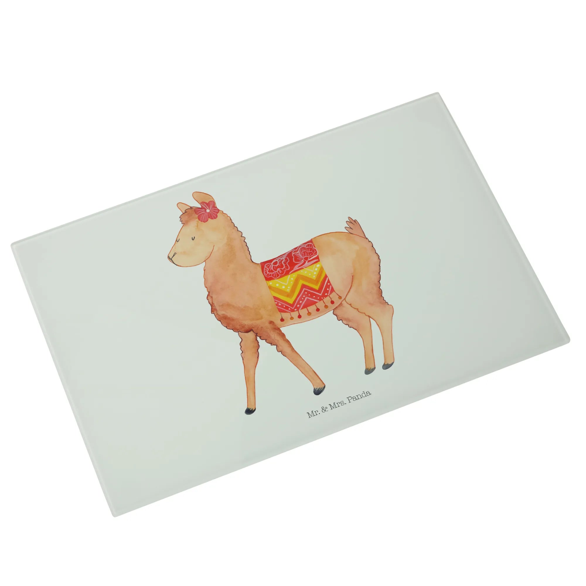 Das XL Glas Schneidbrett "Alpaka stolz" von Mr. & Mrs. Panda ist das perfekte Geschenk für alle Kochliebhaber und Kunstfreunde!