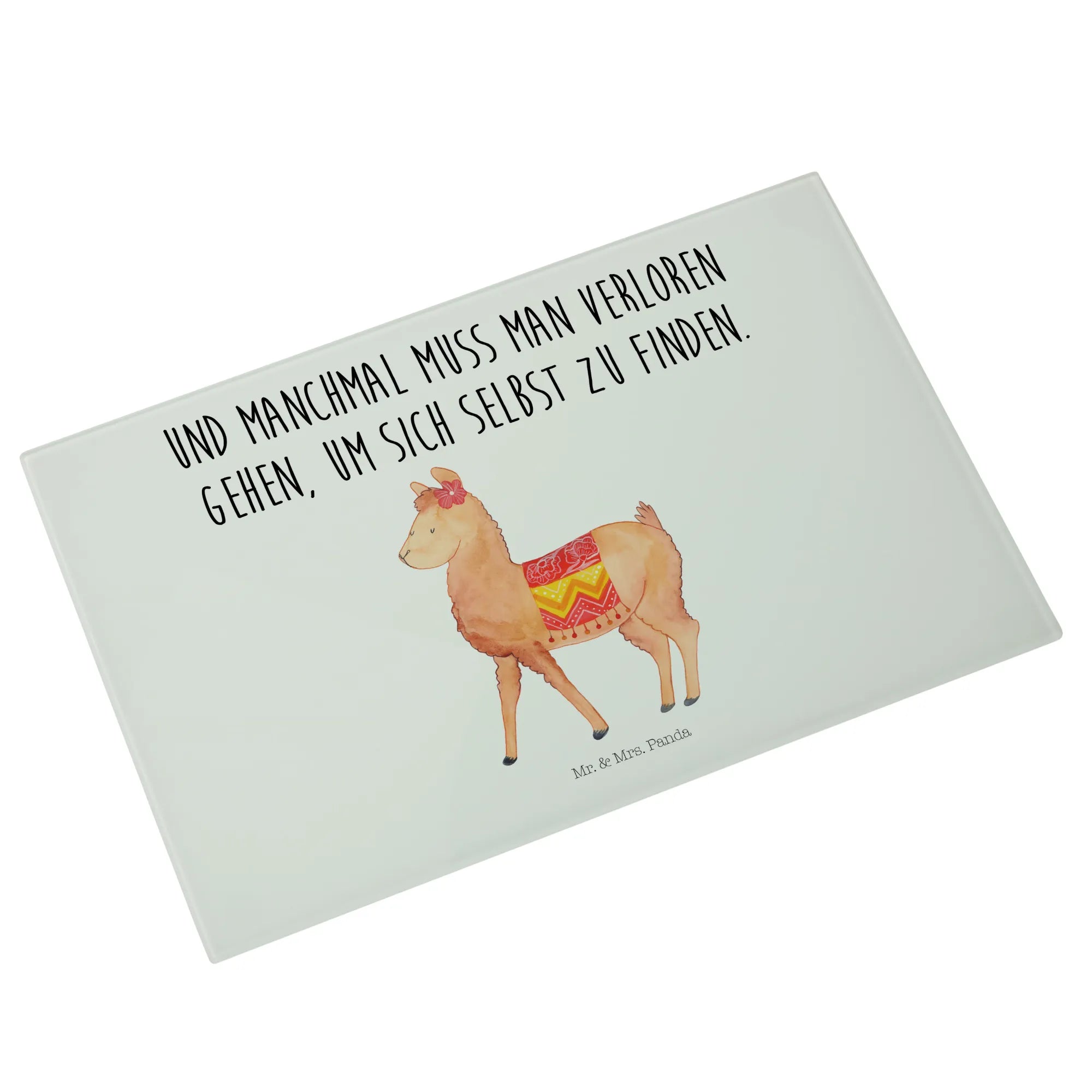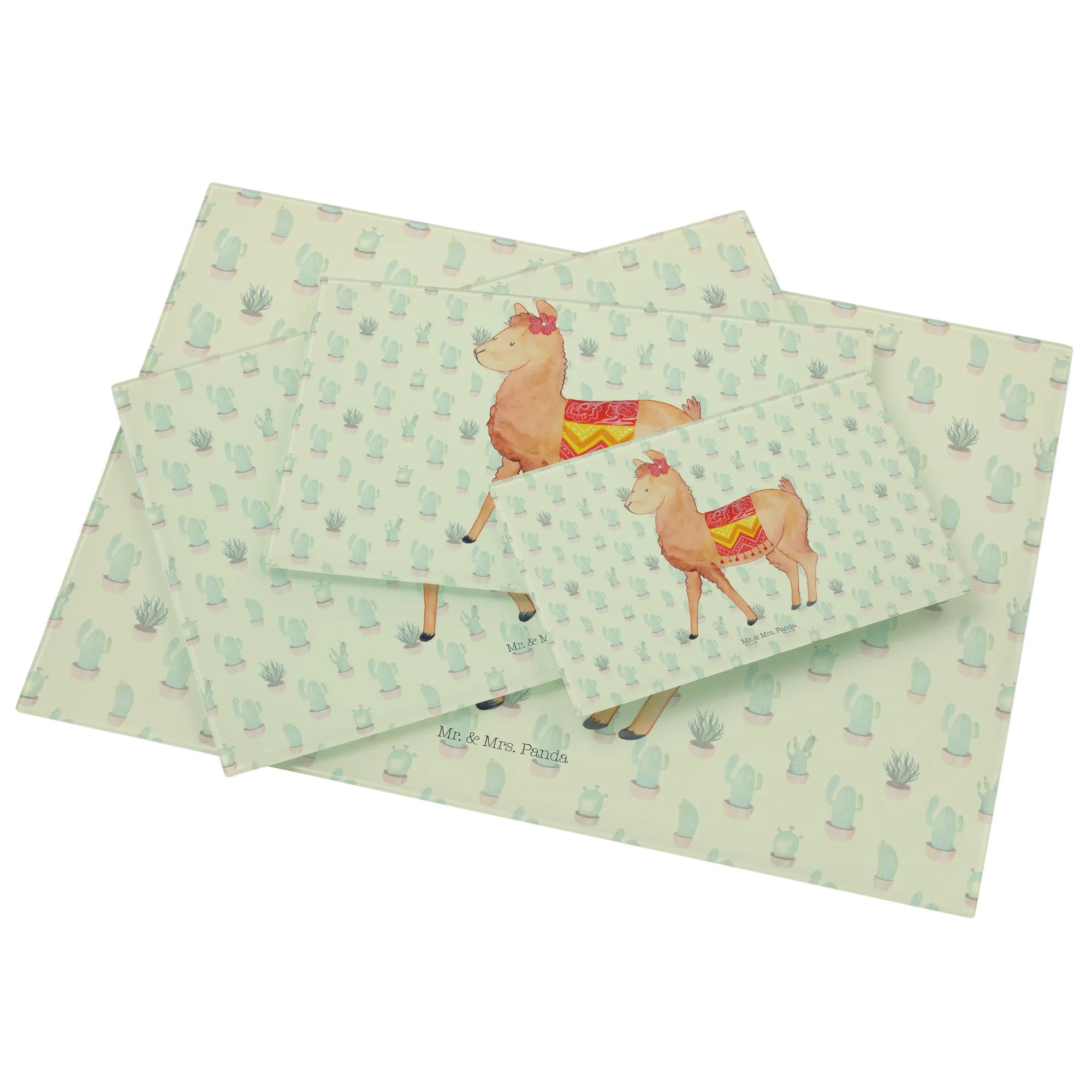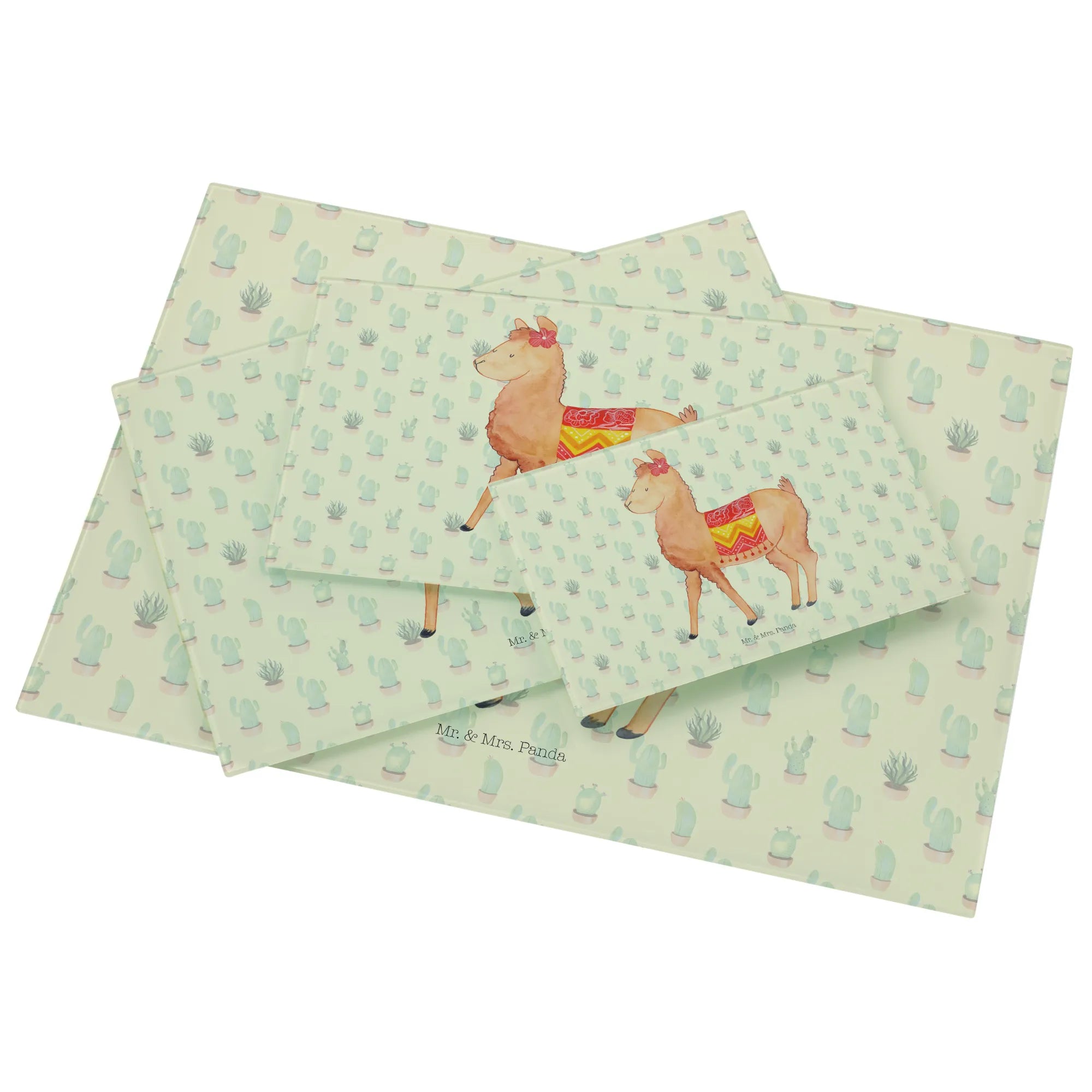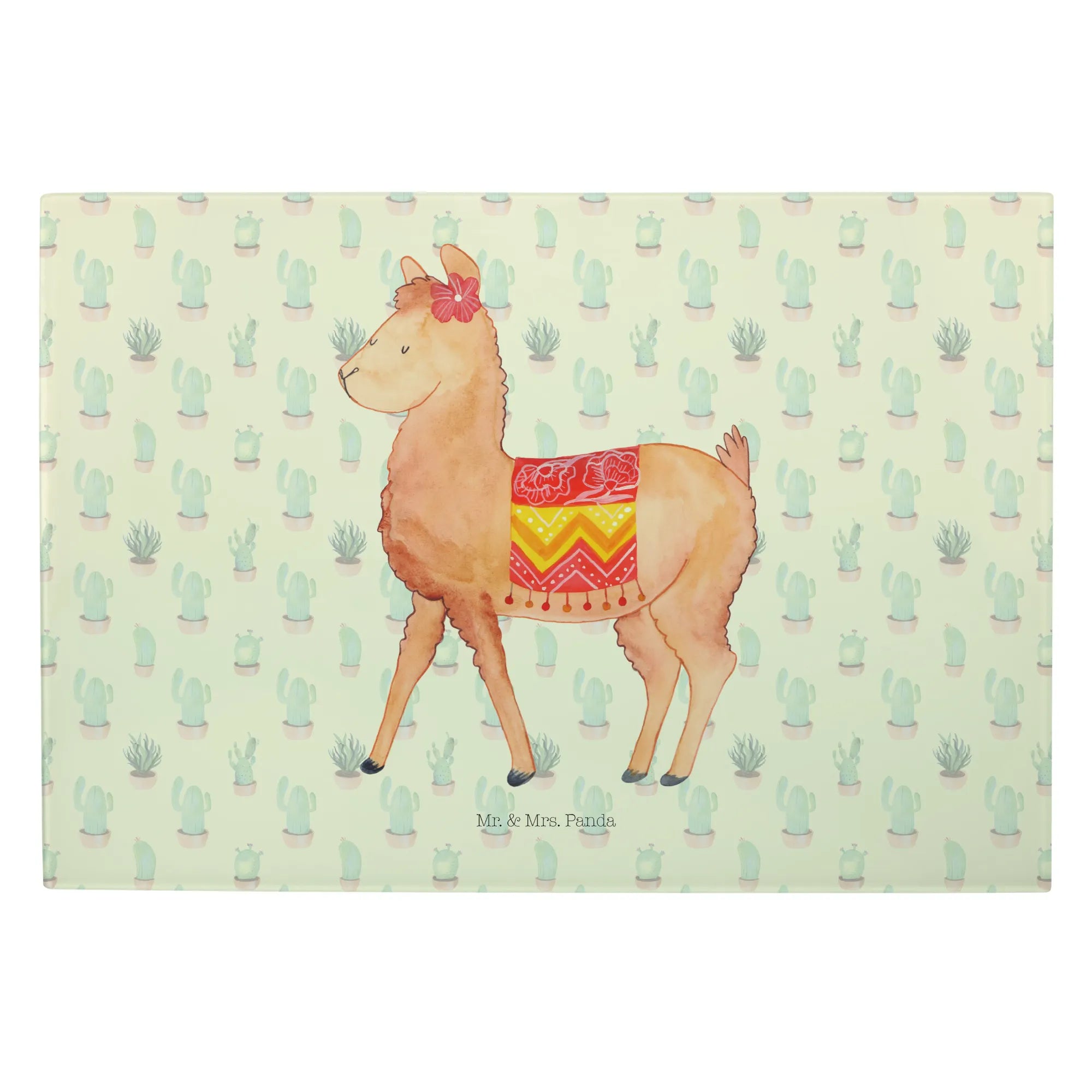 Das XL Glas Schneidbrett "Alpaka stolz" von Mr. & Mrs. Panda ist das perfekte Geschenk für alle Kochliebhaber und Kunstfreunde!