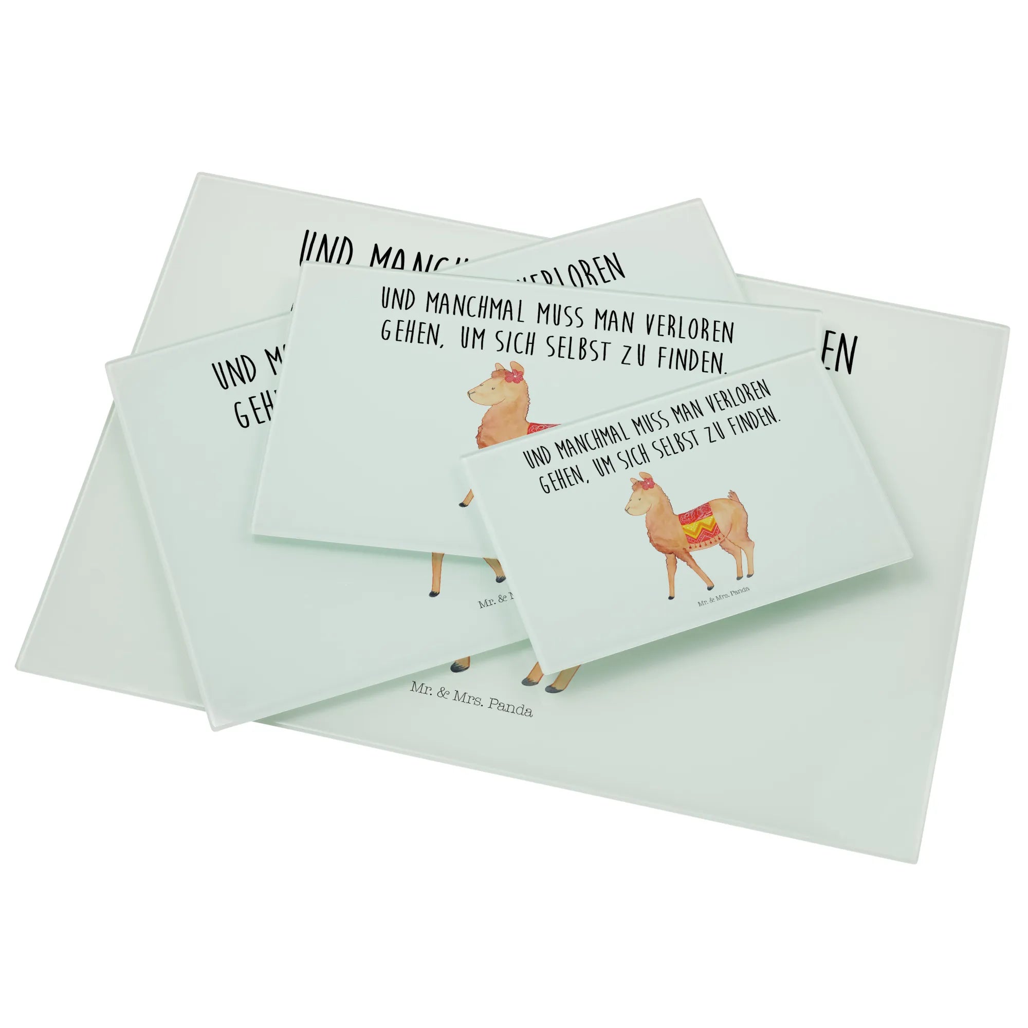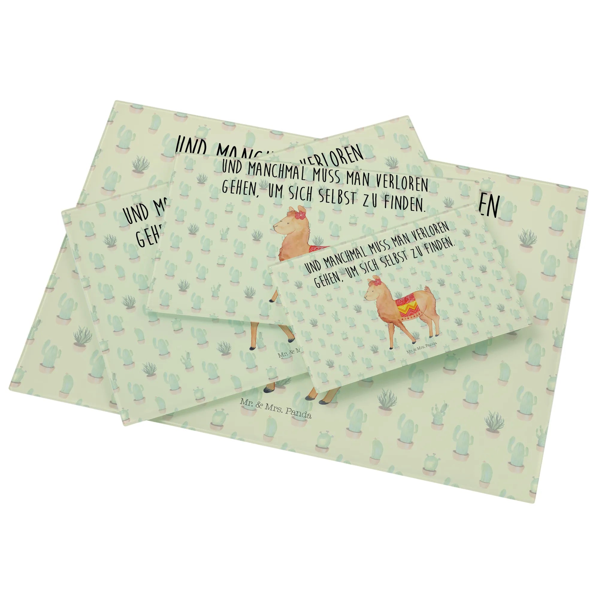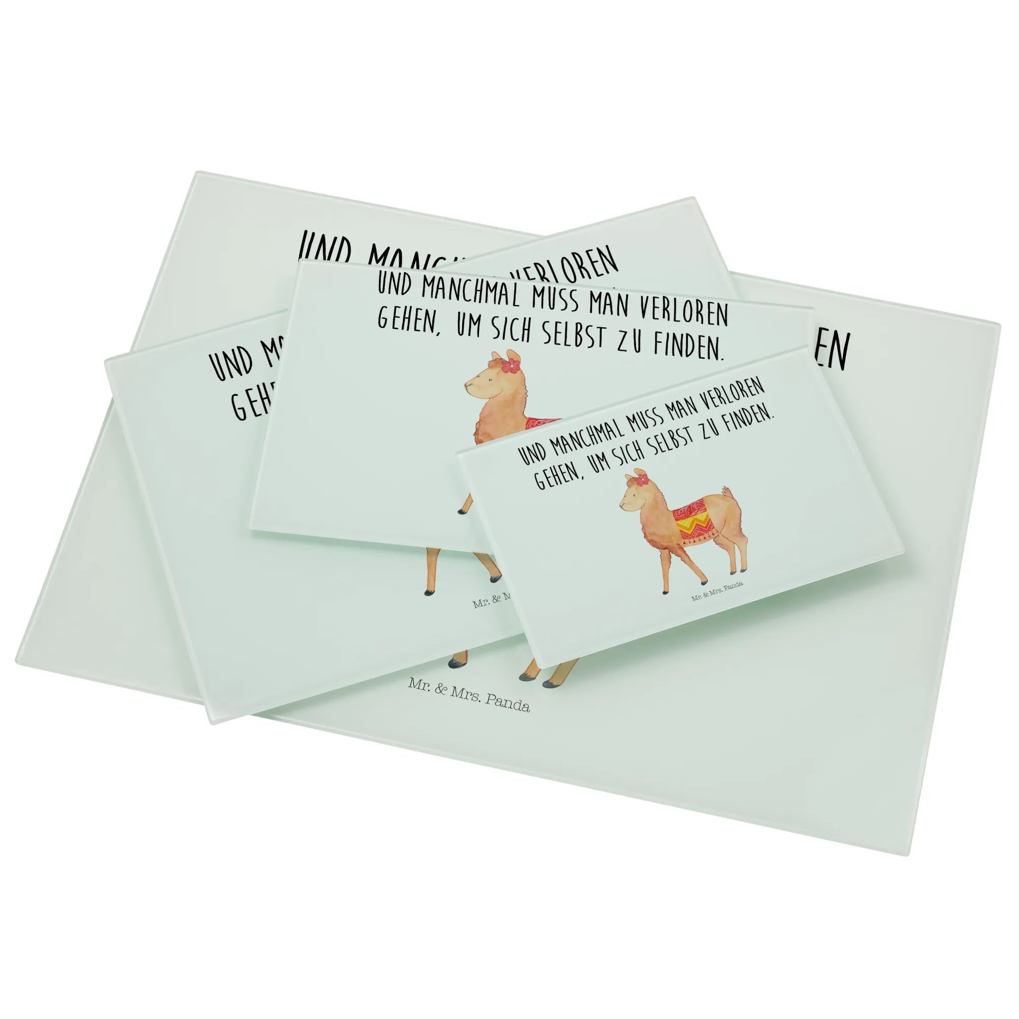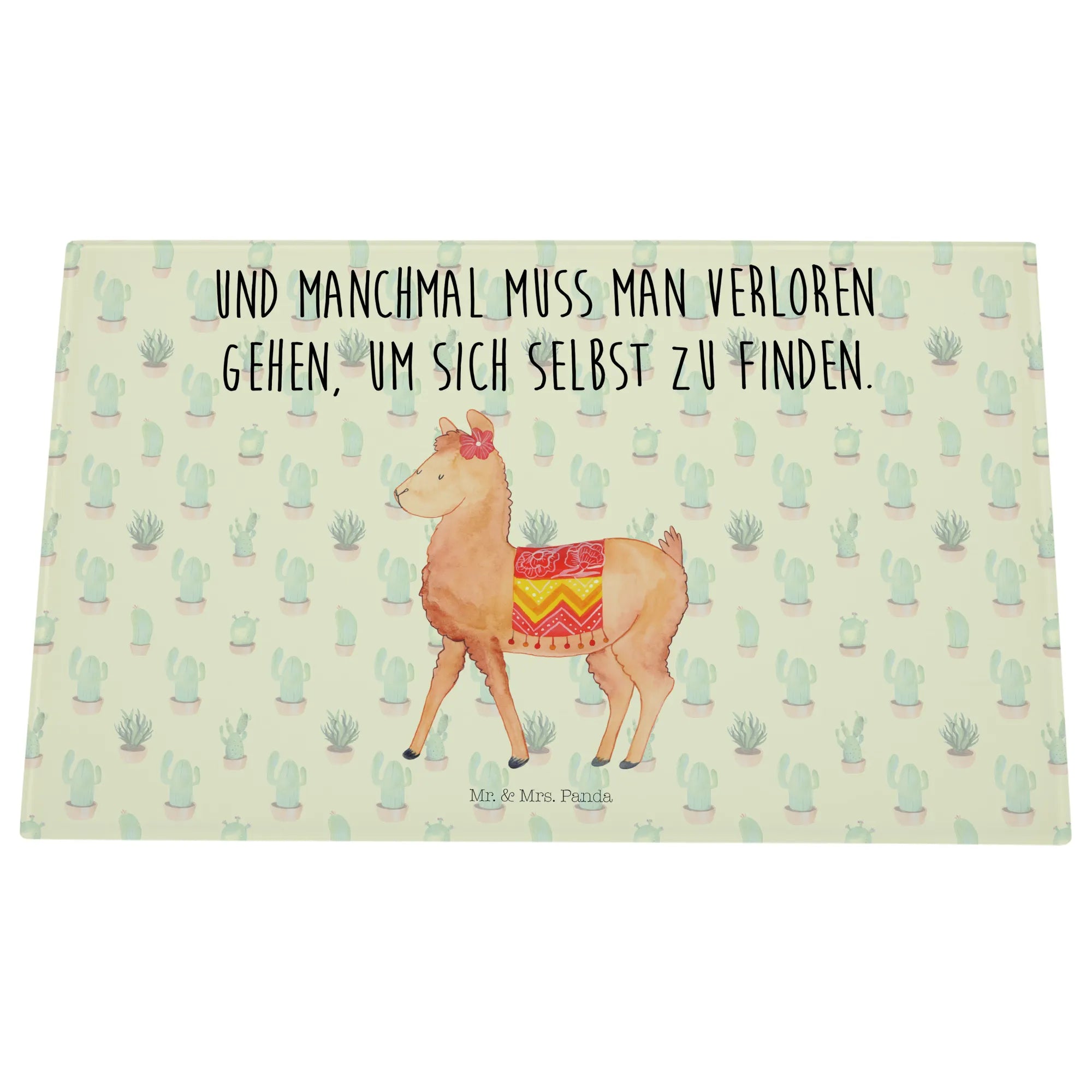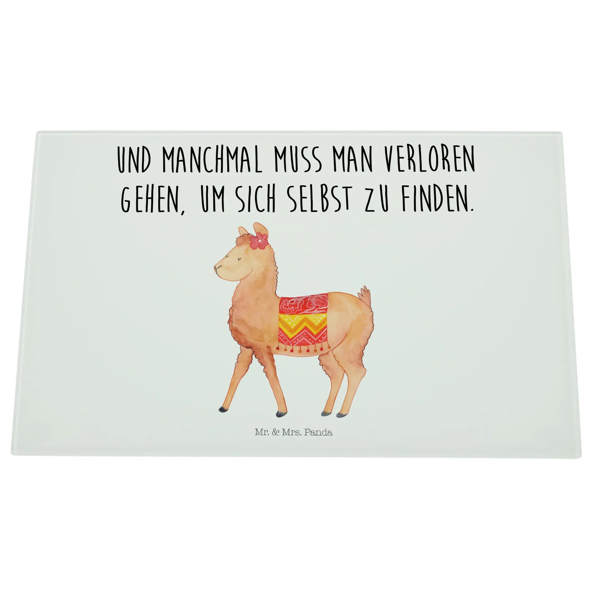 Das XL Glas Schneidbrett "Alpaka stolz" von Mr. & Mrs. Panda ist das perfekte Geschenk für alle Kochliebhaber und Kunstfreunde!