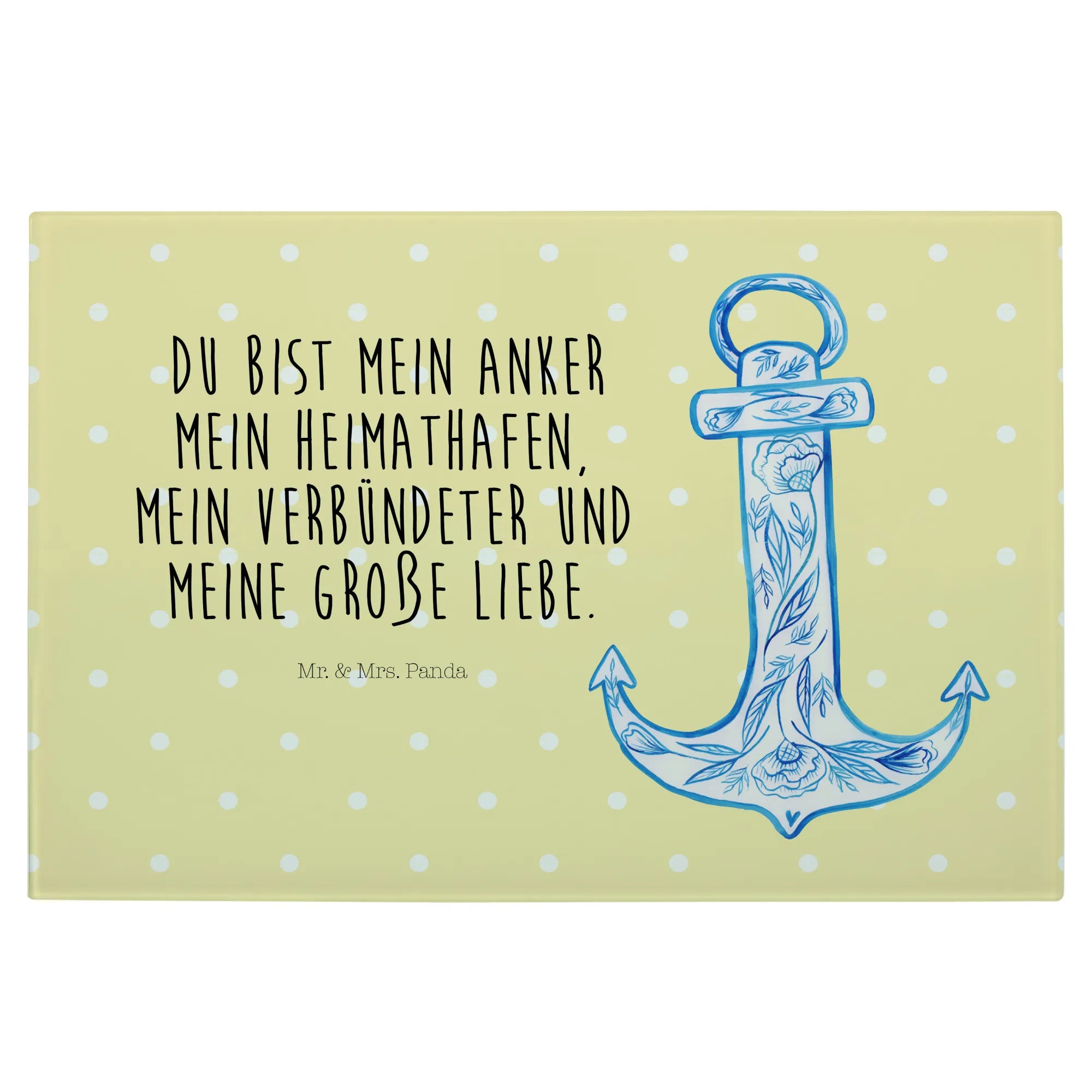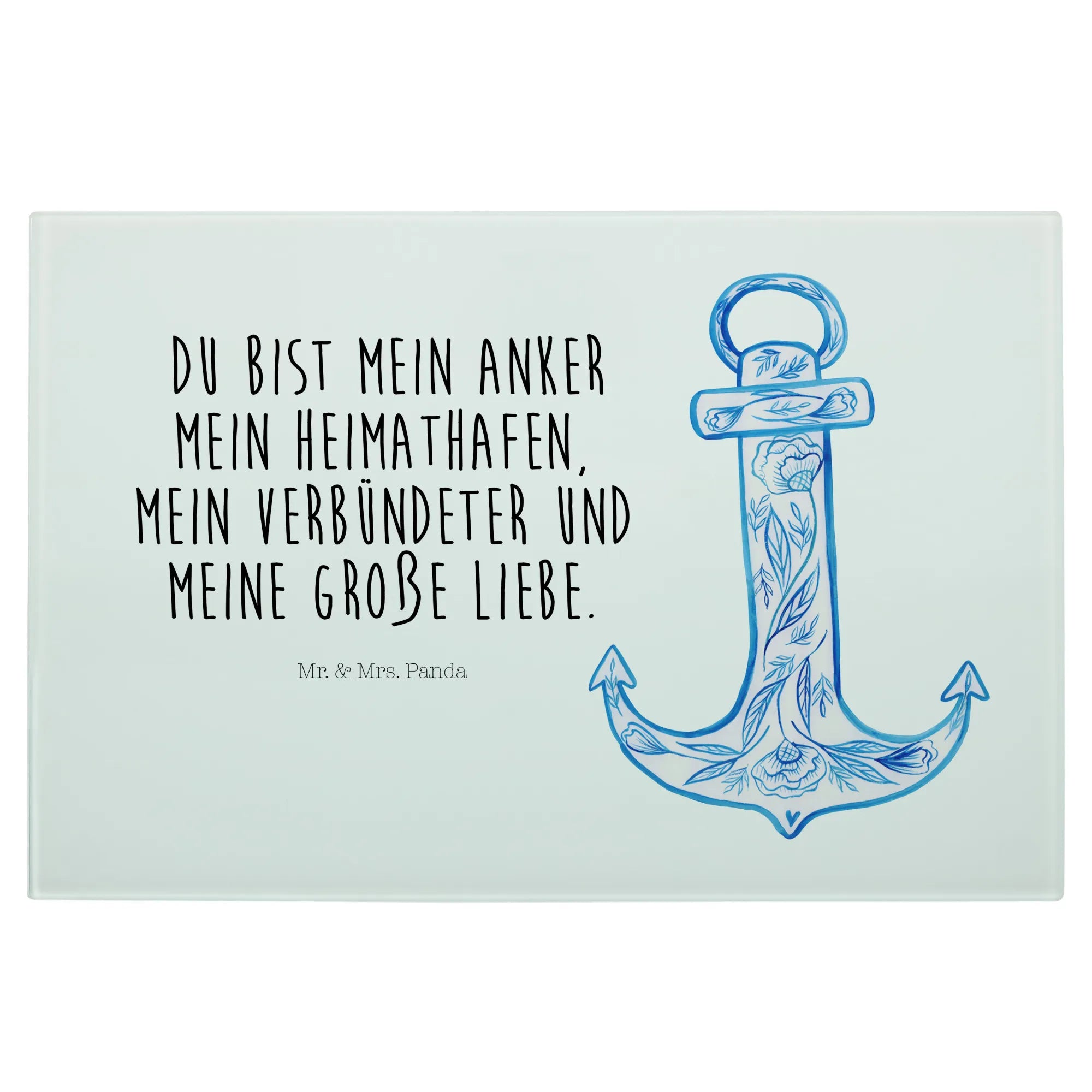 Das Medium Glas Schneidbrett Anker Blau von Mr. & Mrs. Panda ist das perfekte Geschenk für jeden, der das Meer und maritimen Stil liebt! Mit seinen liebevollen Tiermotiven und lustigen Sprüchen bringt es nicht nur gute Laune in die Küche, sondern ist auch äußerst praktisch zum Zubereiten von Speisen.