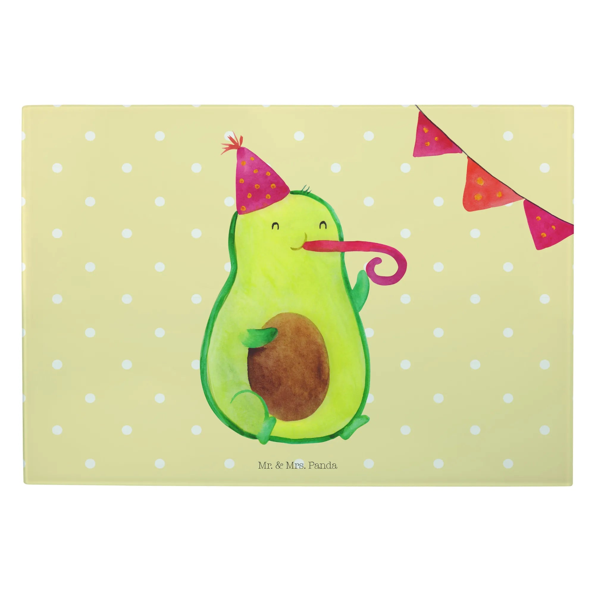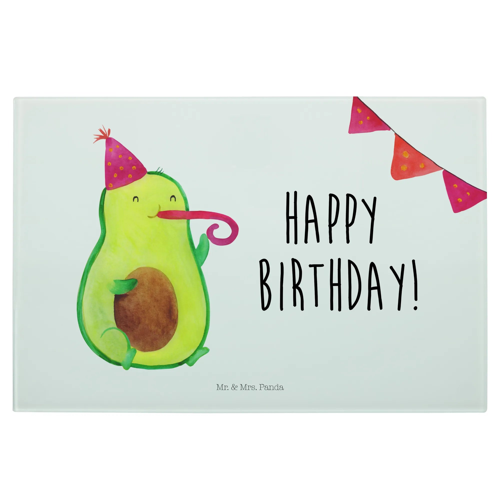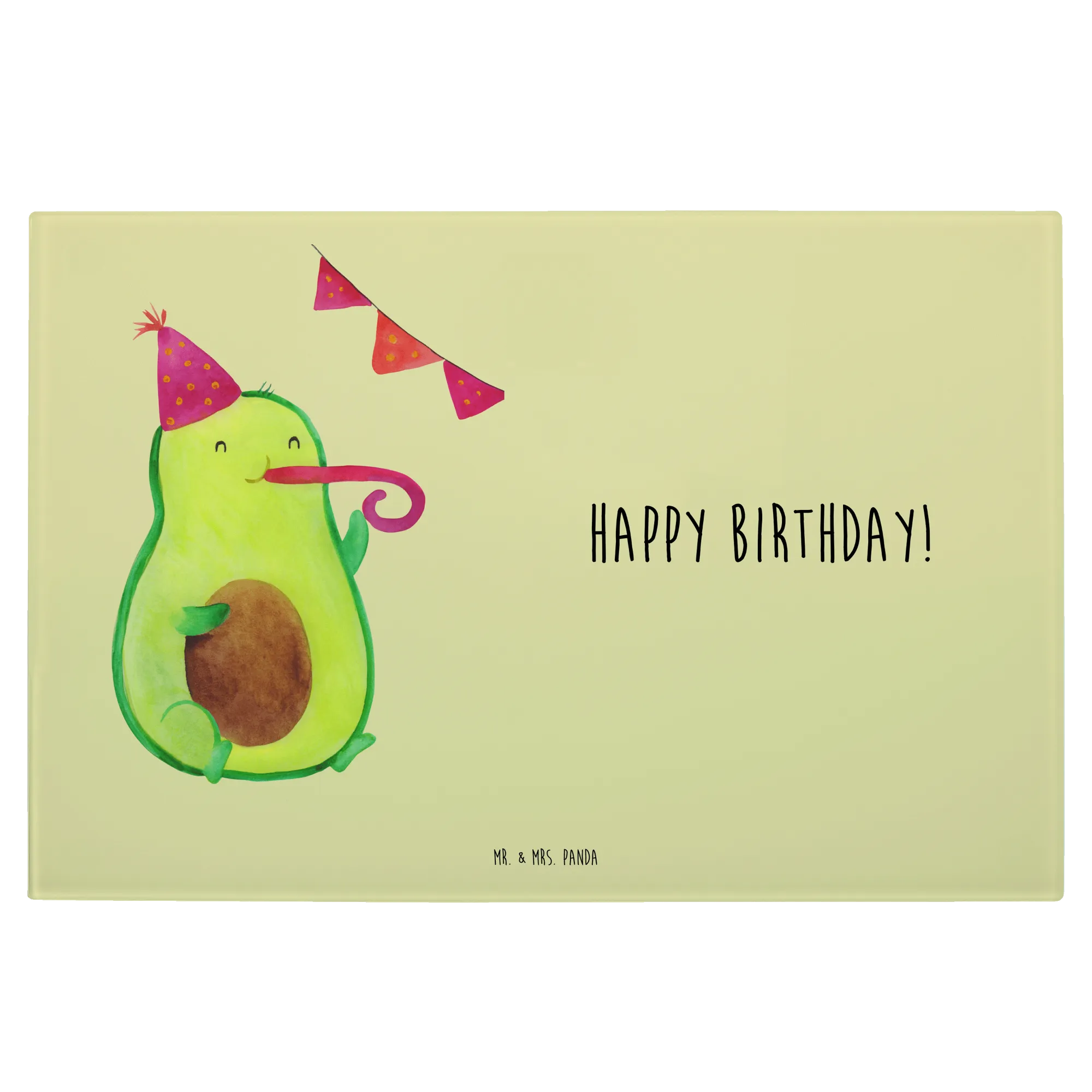 Das Medium Glas Schneidebrett "Avocado Birthday" von Mr. & Mrs. Panda ist das perfekte Geschenk für alle, die den veganen Lebensstil lieben und gerne gesunde Küche zelebrieren!