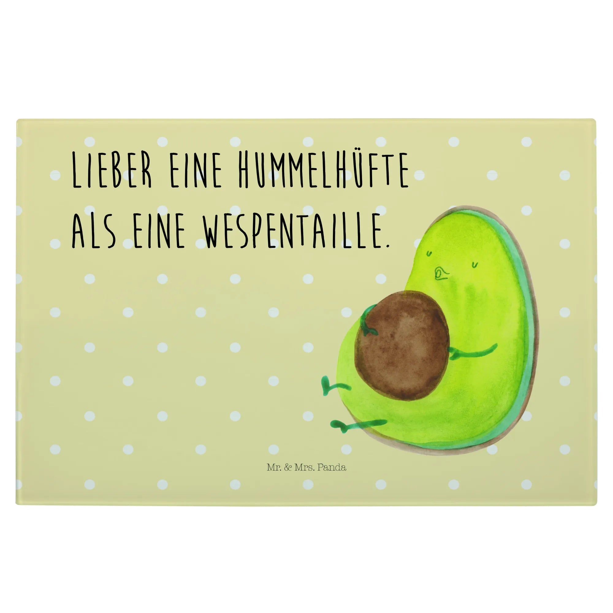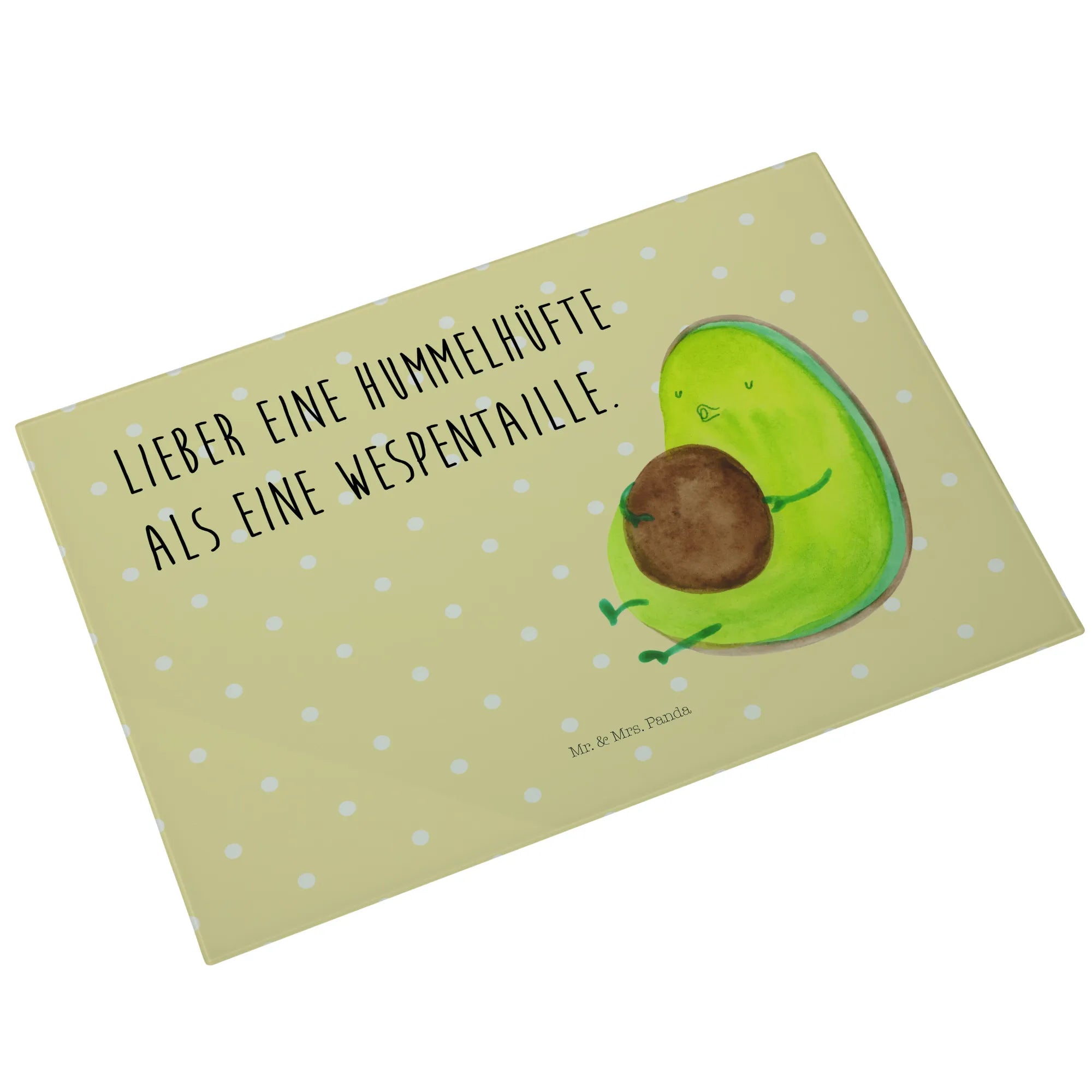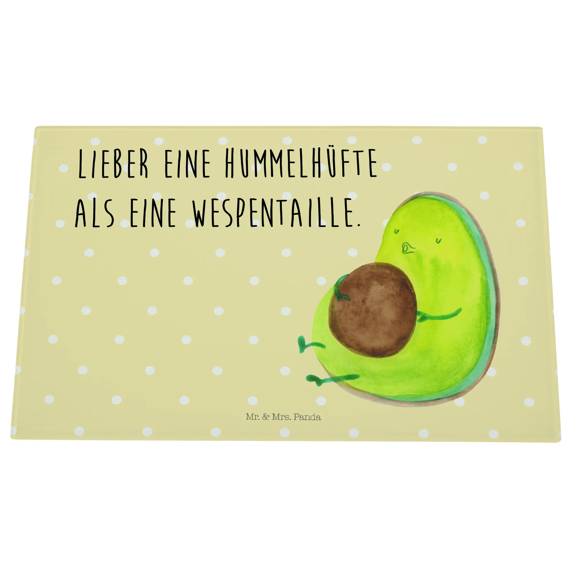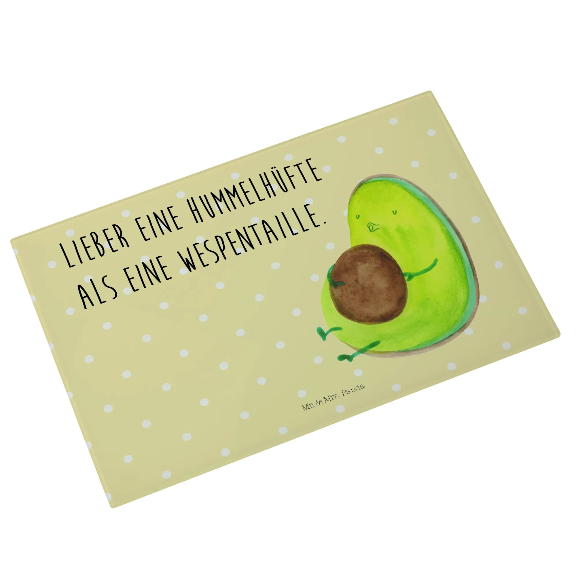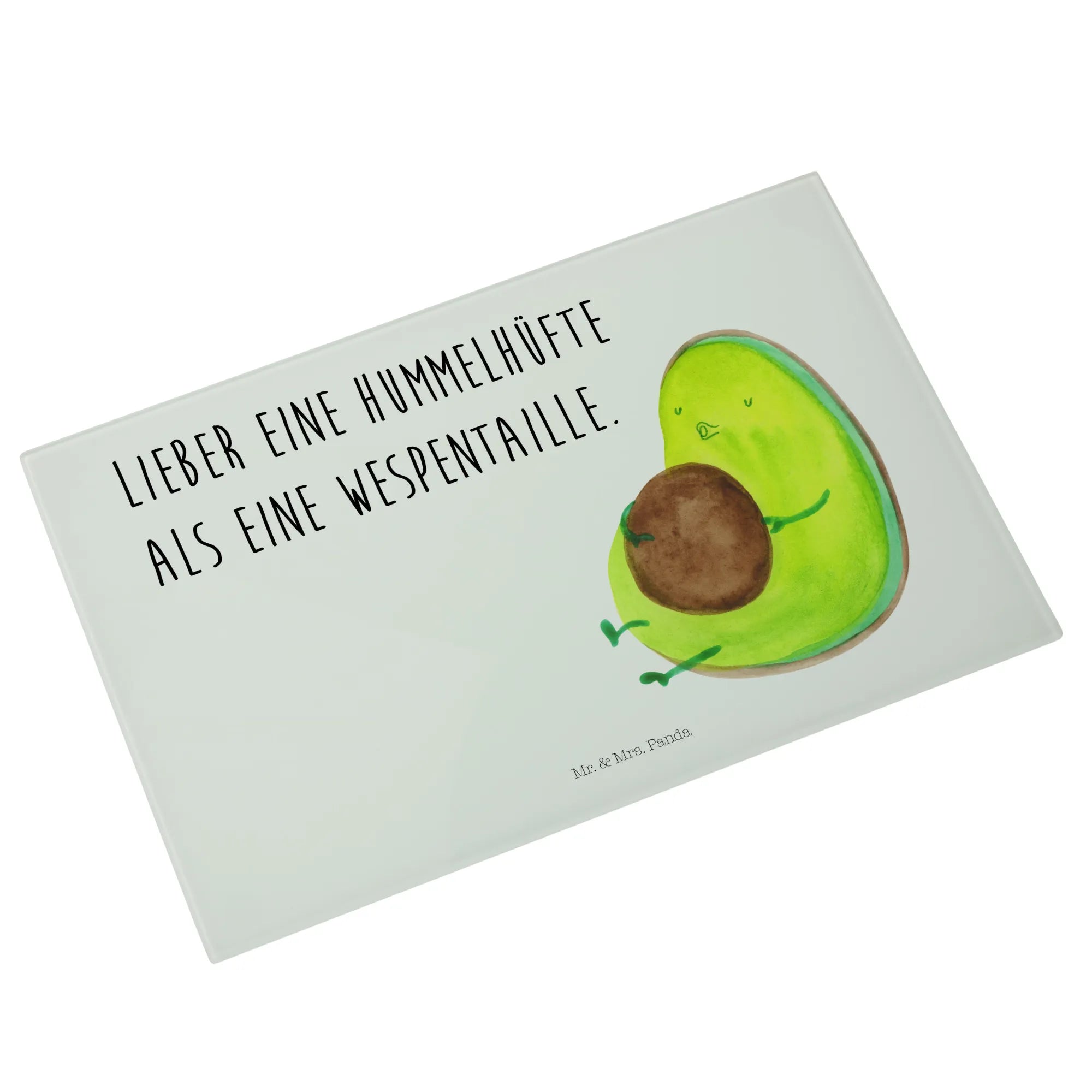 Das XL Glas Schneidbrett "Avocado pfeift" von Mr. & Mrs. Panda ist nicht nur ein praktisches Küchenutensil, sondern auch ein ganz besonderes Geschenk für alle, die das gesunde Lebensgefühl lieben. Die liebevoll gestaltete Avocado mit ihrem dicken Kern bringt einen Hauch von Frische und Lebensfreude in Deine Küche. Mit dem Spruch "Lieber eine Hummelhüfte als eine Wespentaille" motivierst Du Dich und Deine Liebsten zu einem entspannten Umgang mit Ernährung und Diät. Egal, ob Du beim Kochen den perfekten Avocado-Toast zubereitest oder beim Frühstück ein paar gesunde Snacks schneidest – dieses Schneidbrett ist immer ein Blickfang!