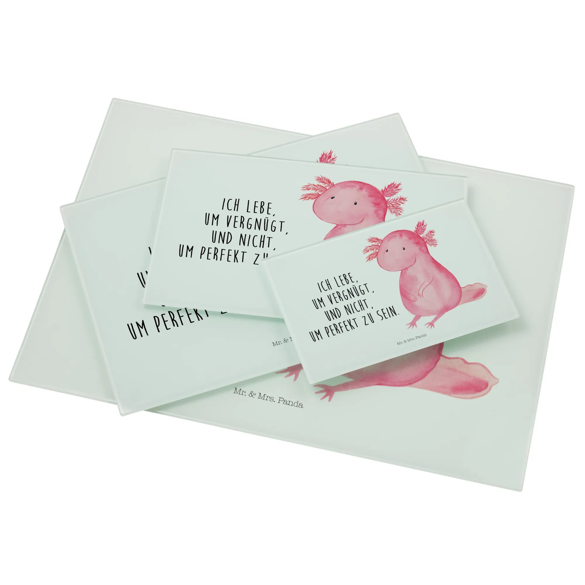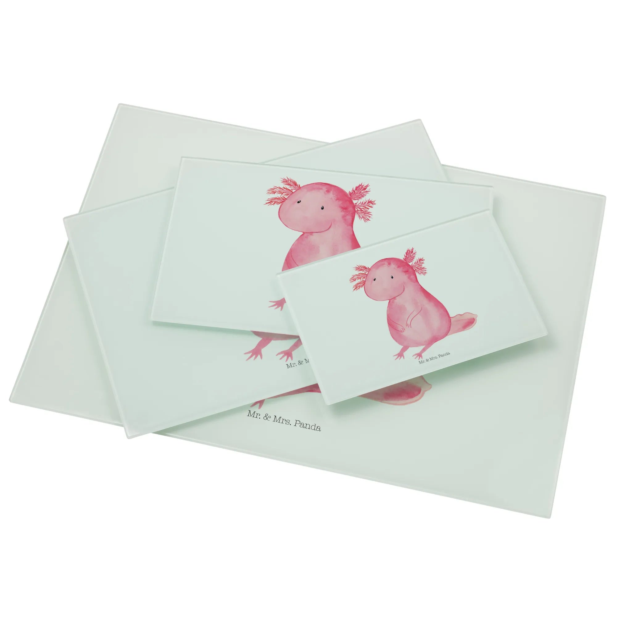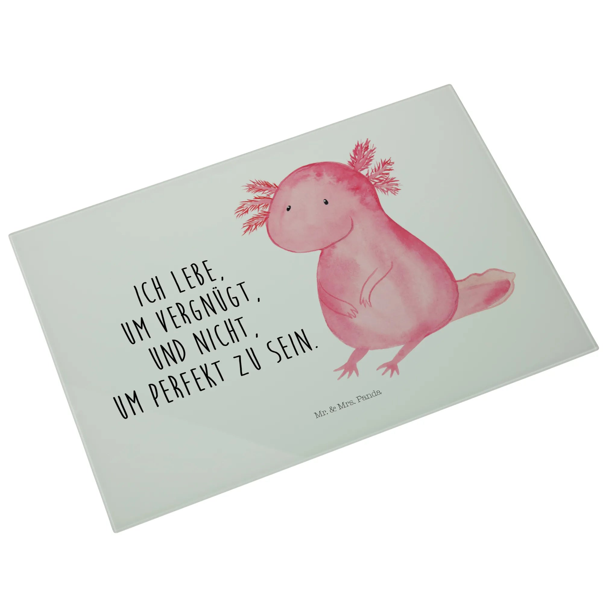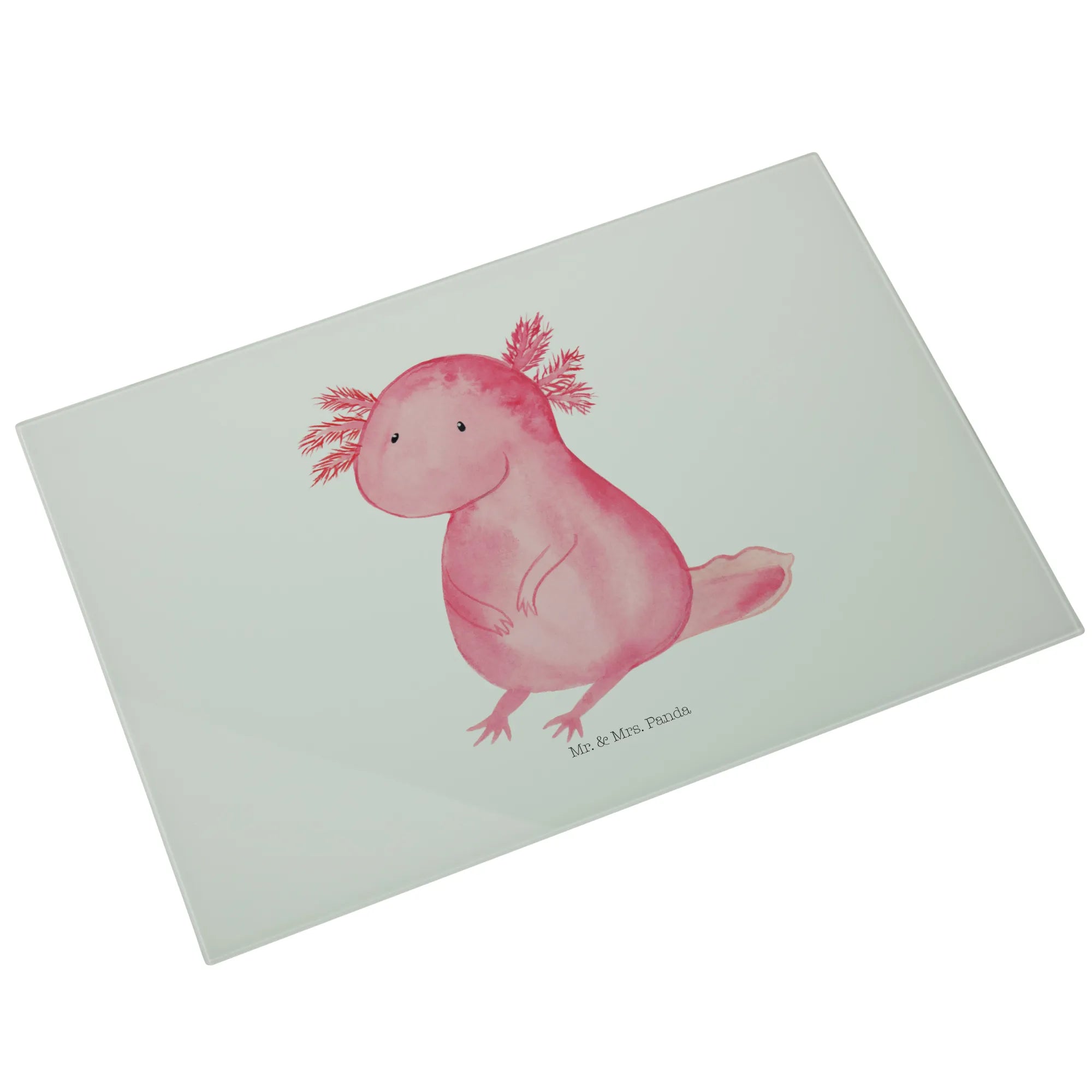 Entdecke das zauberhafte XL Glas Schneidbrett mit dem süßen Axolotl-Motiv von Mr. & Mrs. Panda – das perfekte Geschenk für alle, die Lebensfreude und eine Prise Humor in ihrer Küche schätzen!