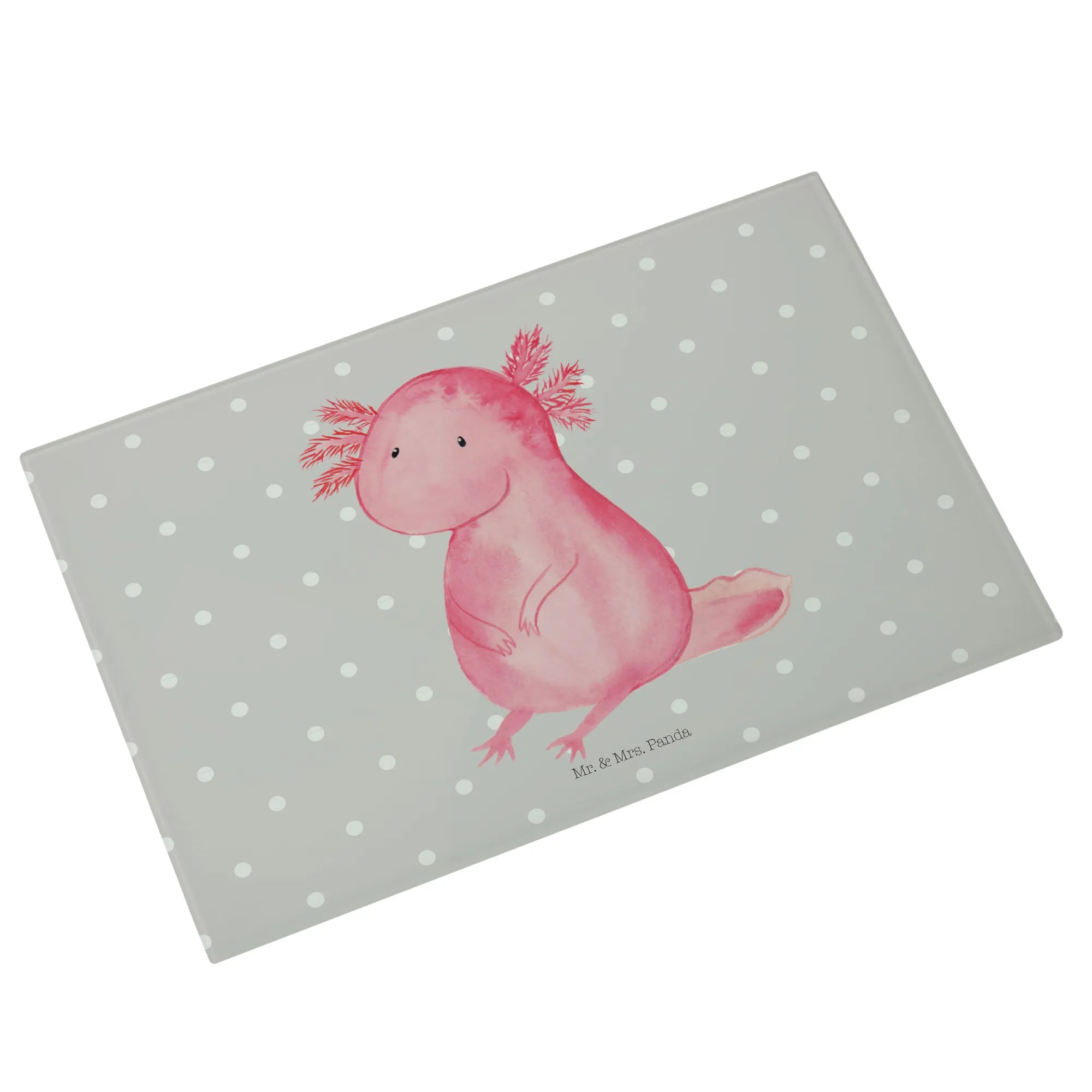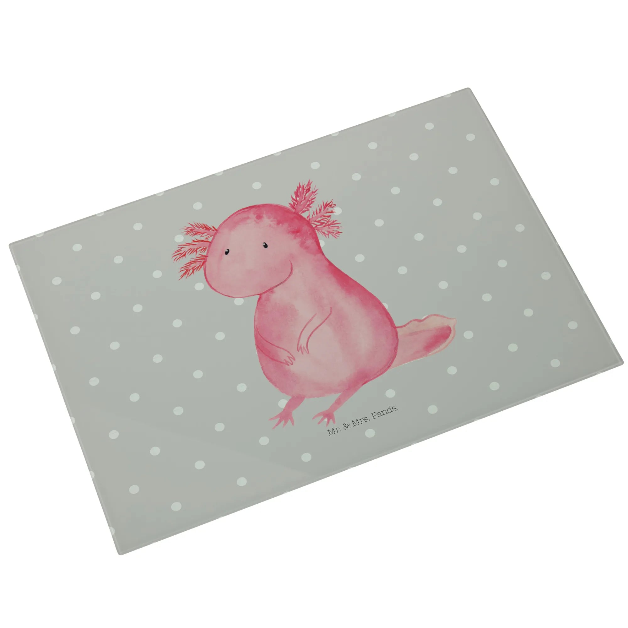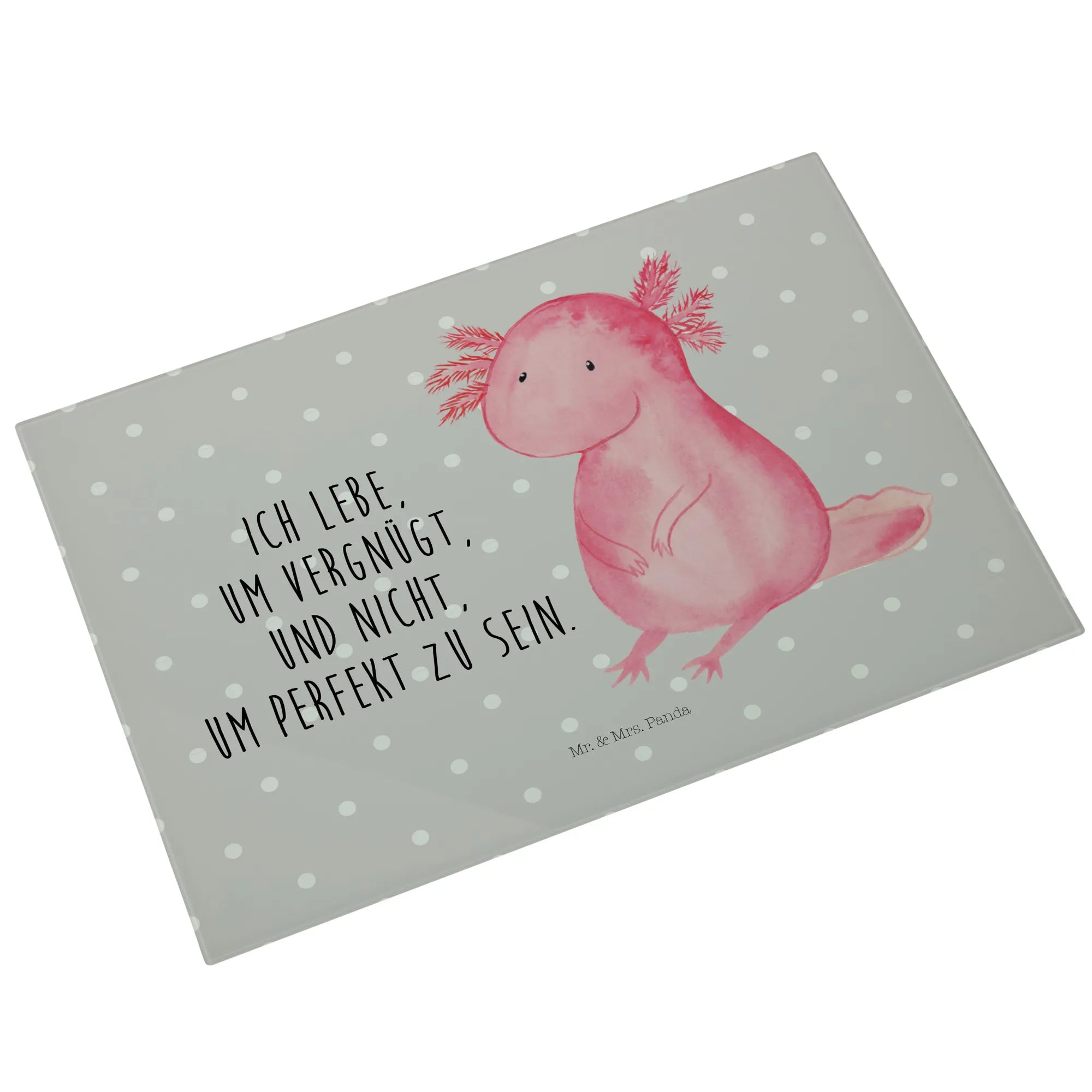 Glasschneidebrett Axolotl null - Medium Glas Schneidbrett - mit Spruch - Grau Pastell