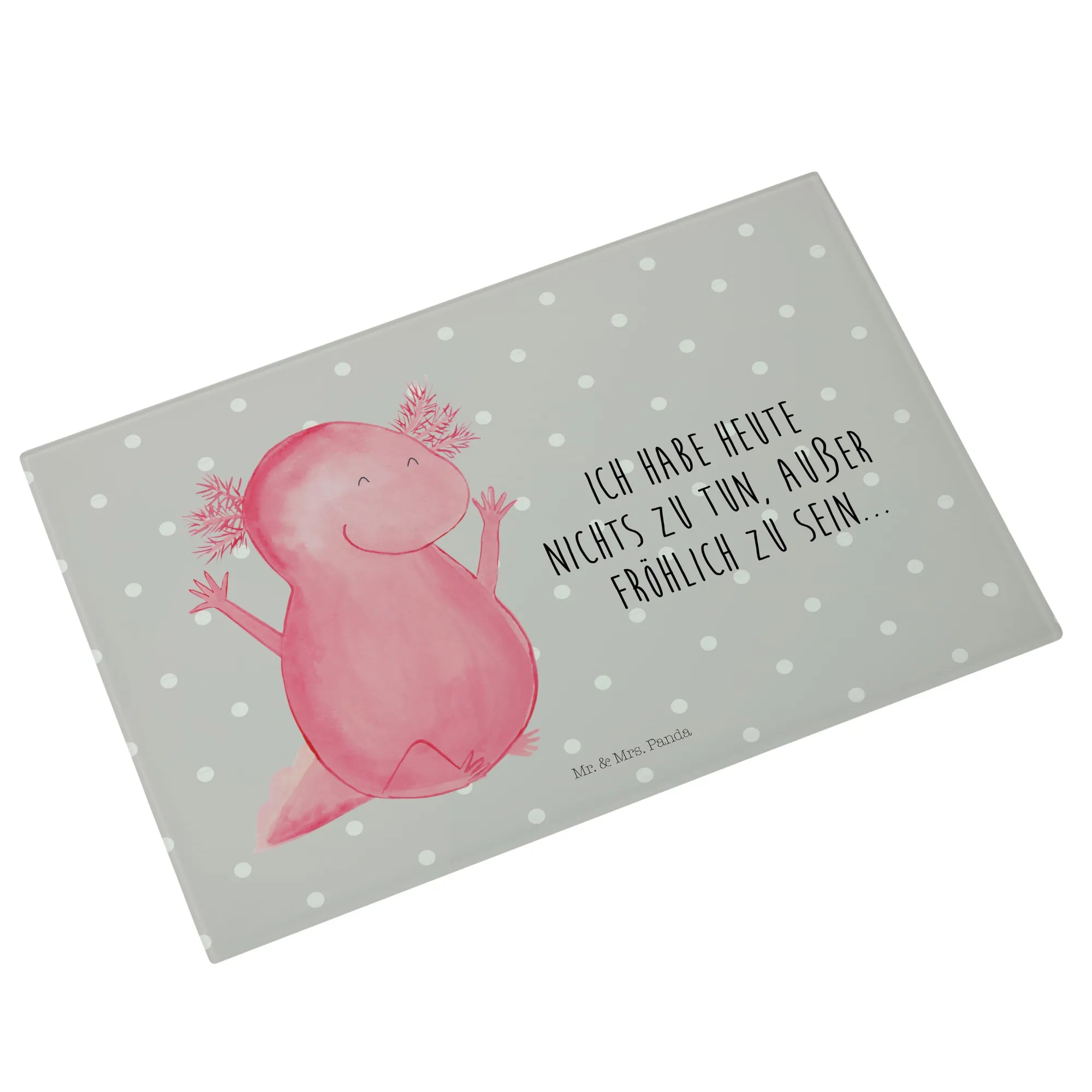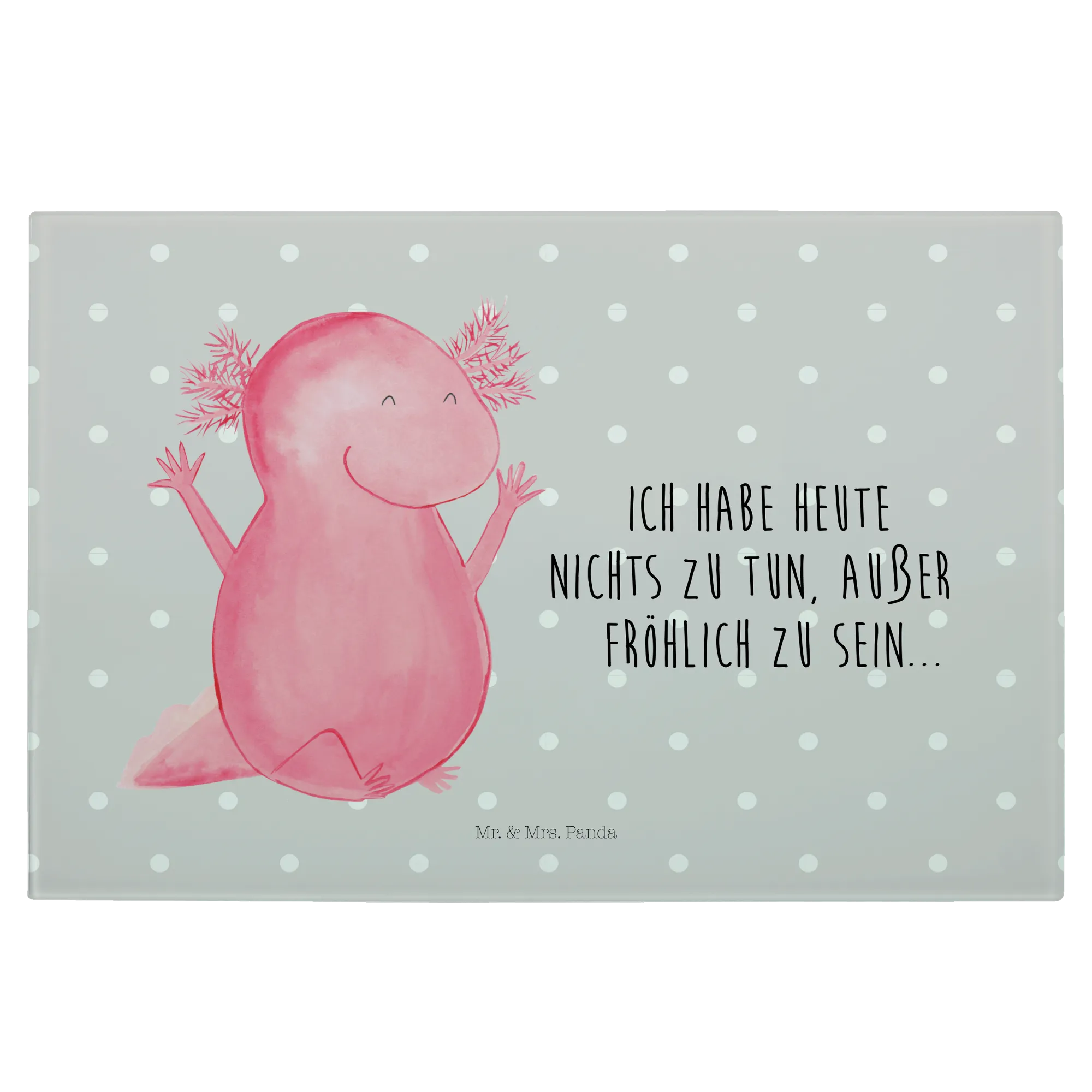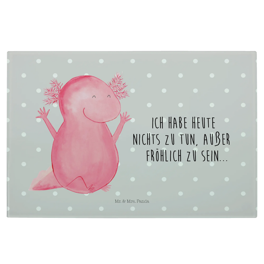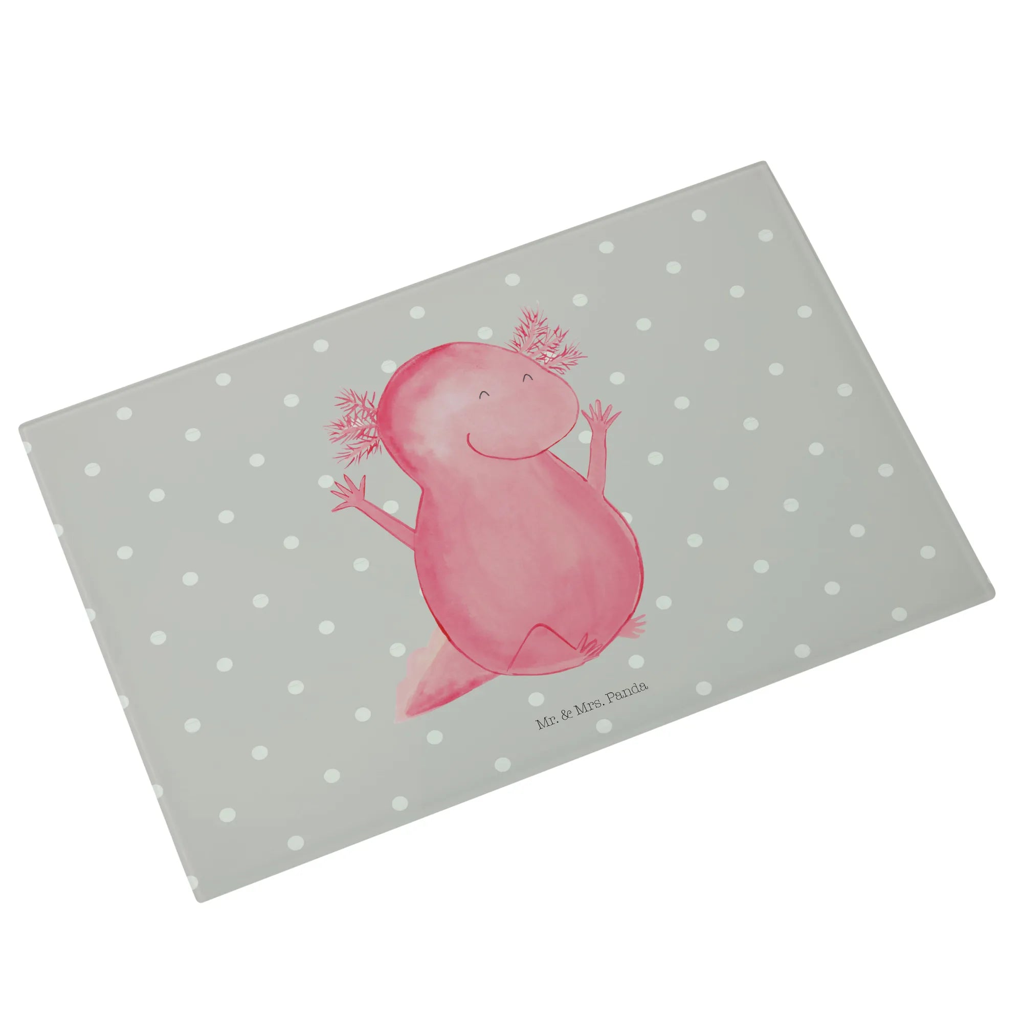 Glasschneidebrett Axolotl Hurra - Medium Glas Schneidbrett - mit Spruch - Grau Pastell
