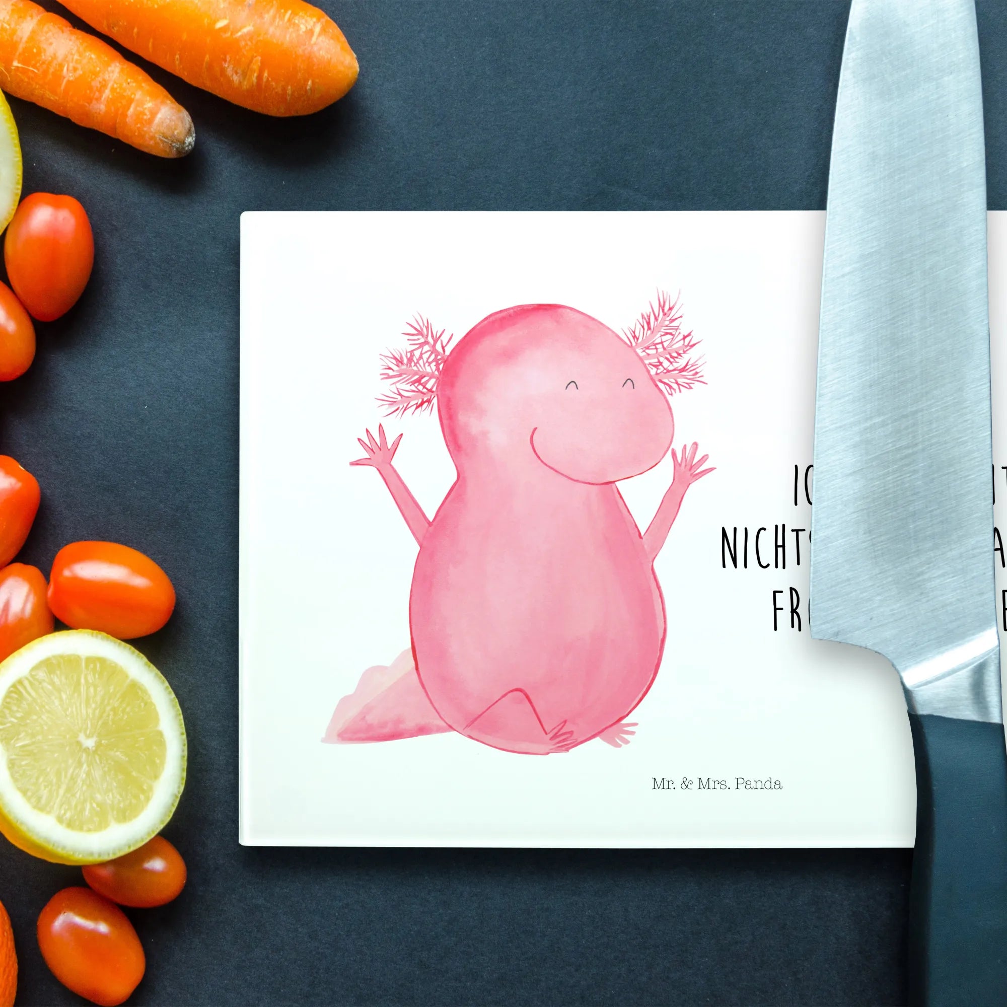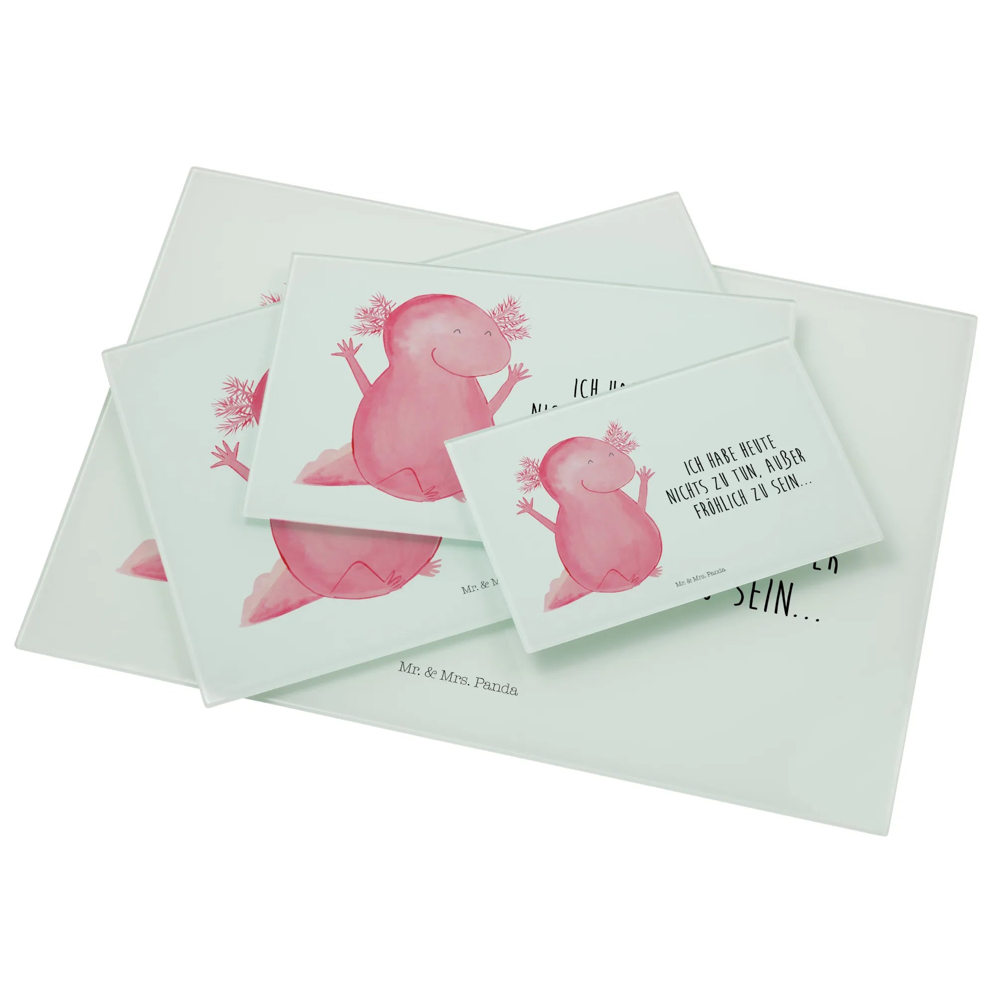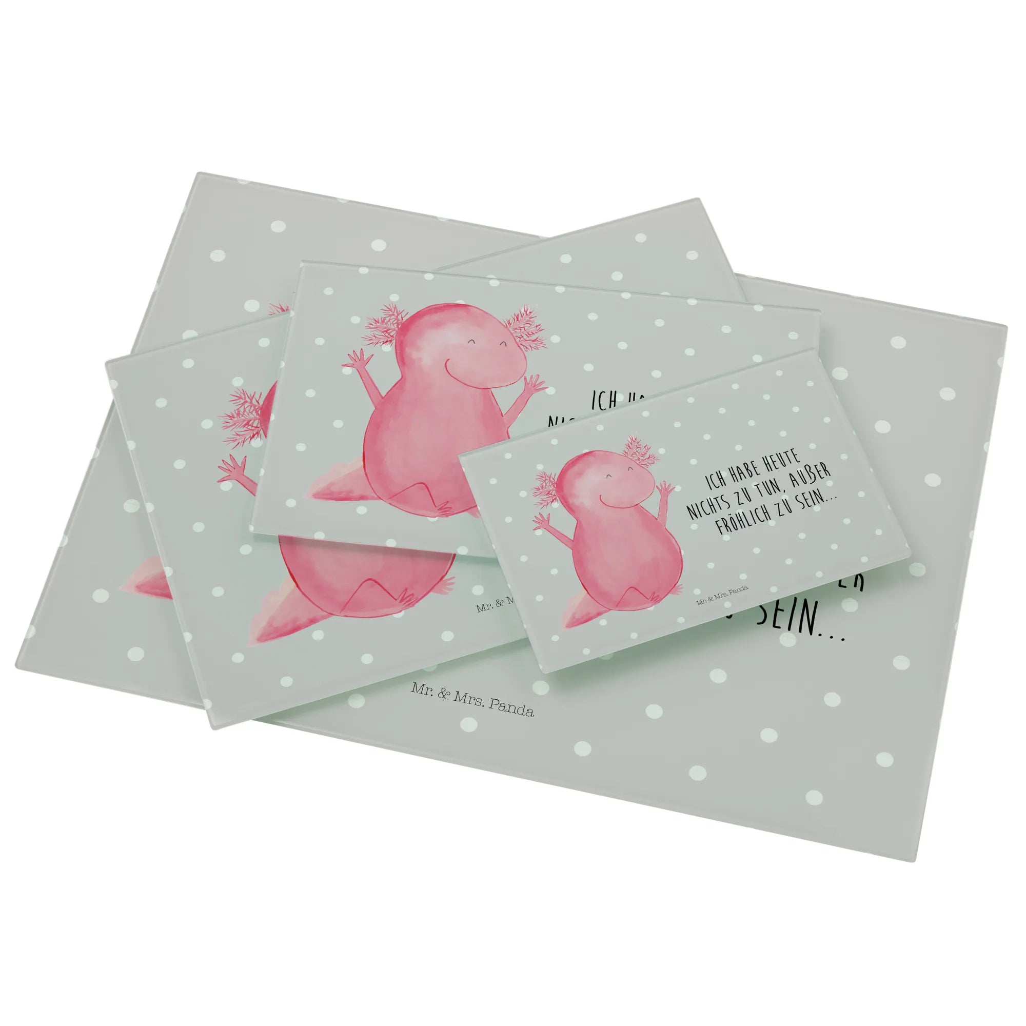 Glasschneidebrett Axolotl Hurra - Medium Glas Schneidbrett - mit Spruch - Grau Pastell