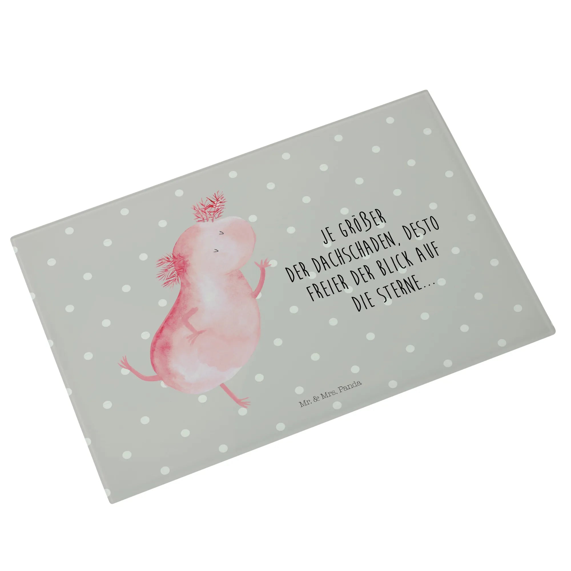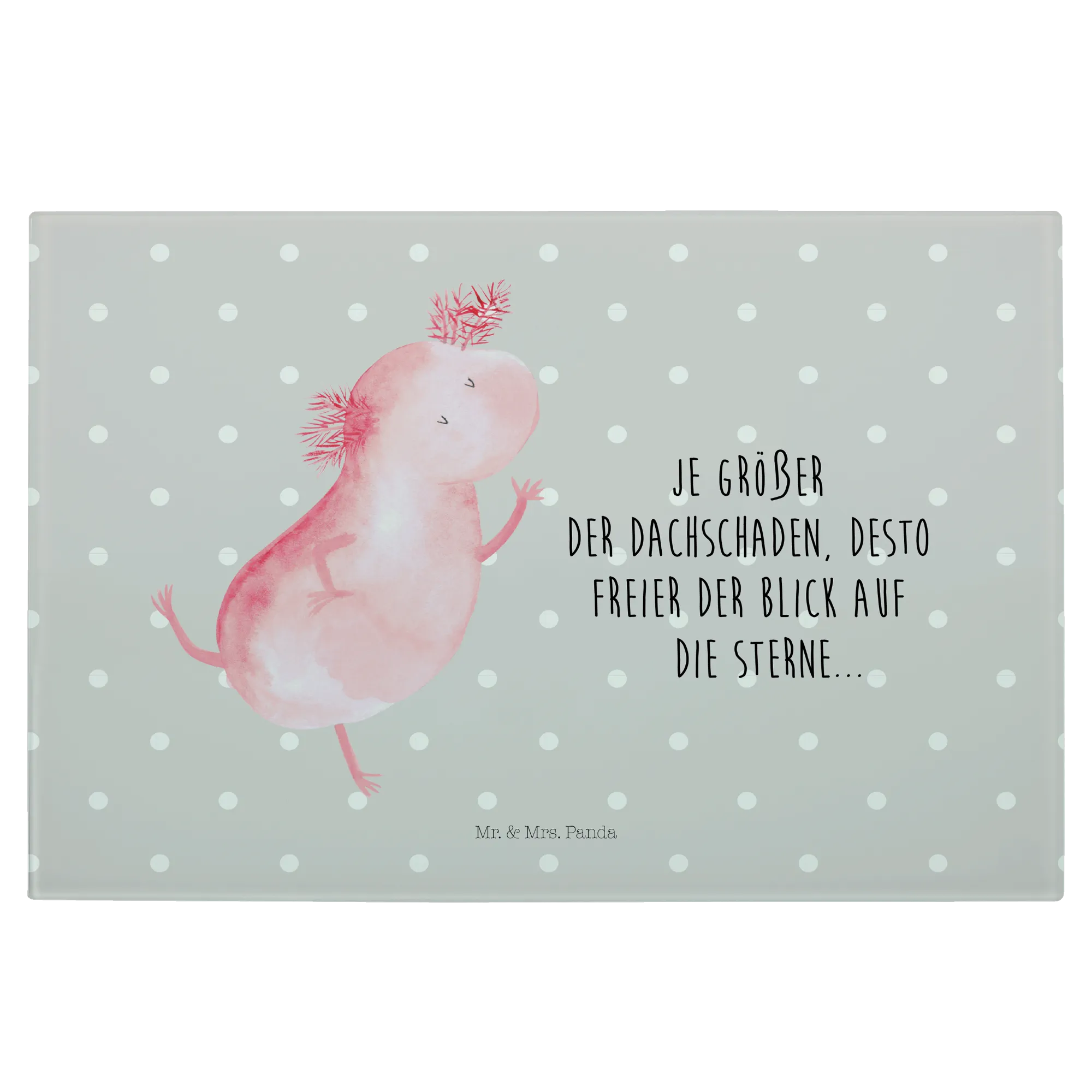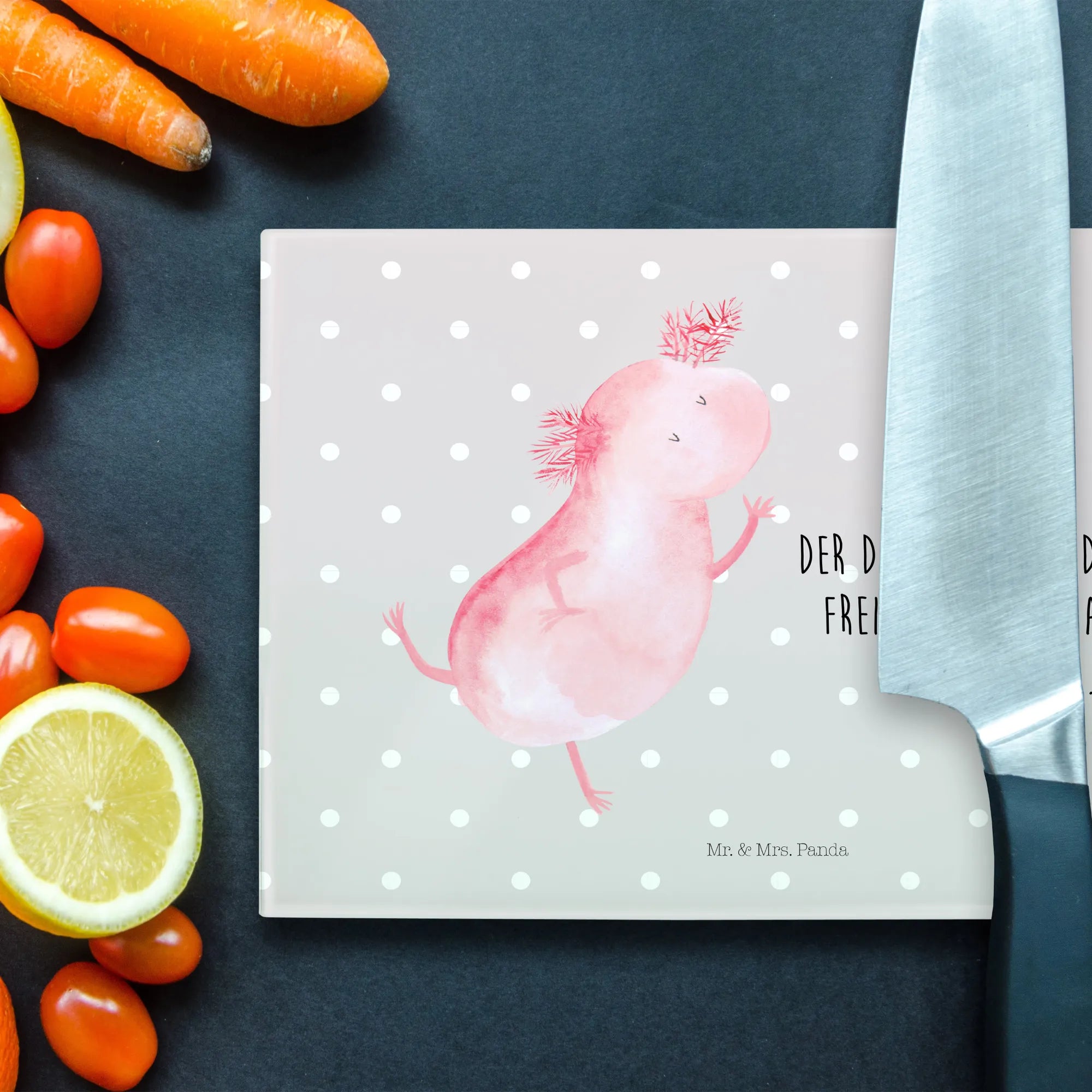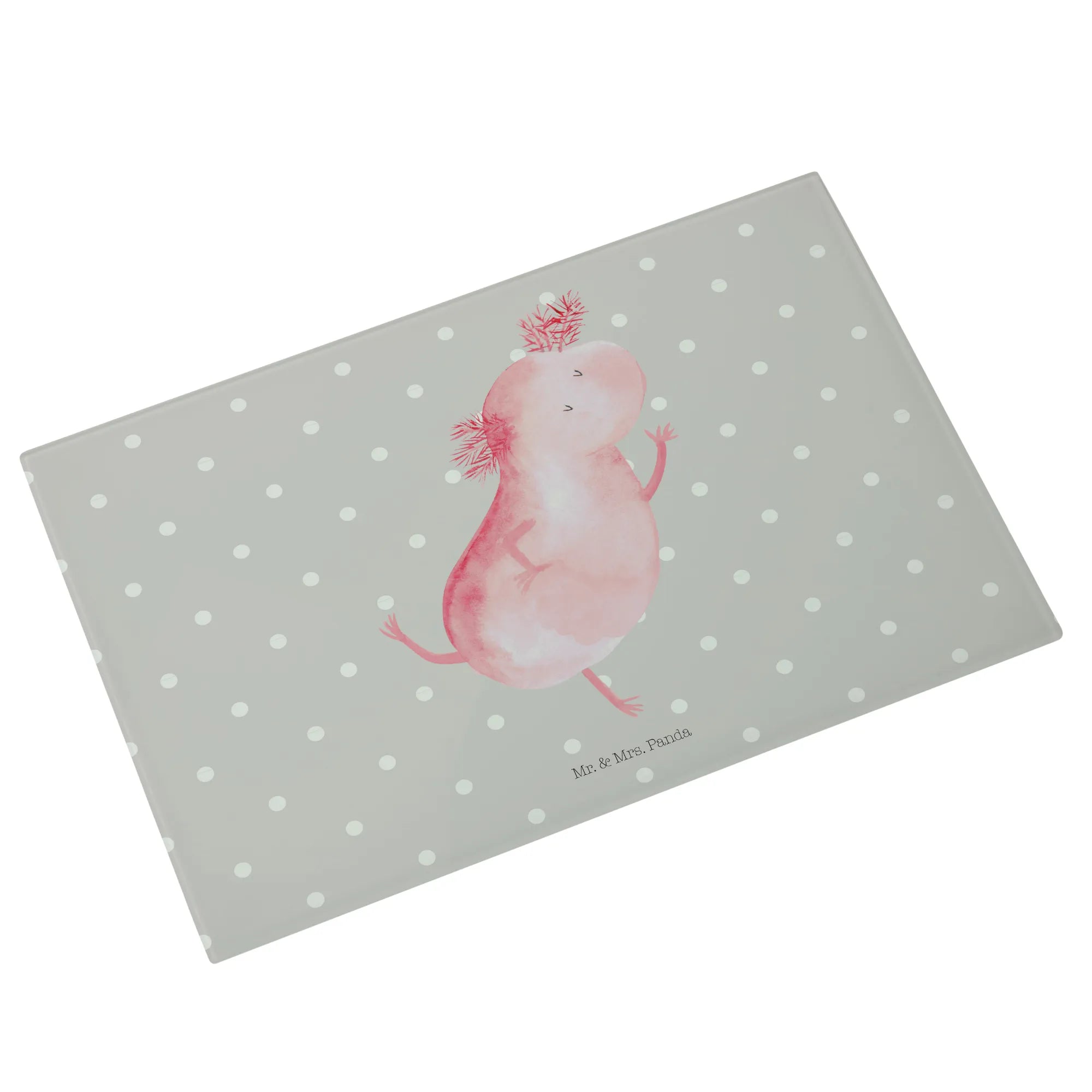 Glasschneidebrett Axolotl Tanzen - Medium Glas Schneidbrett - mit Spruch - Grau Pastell