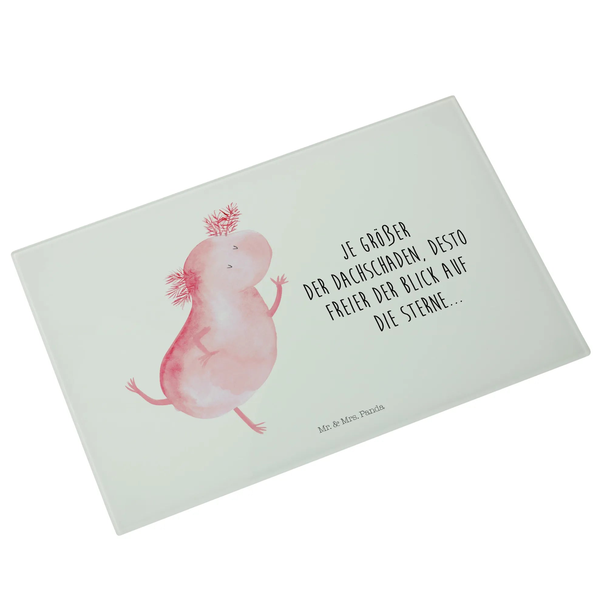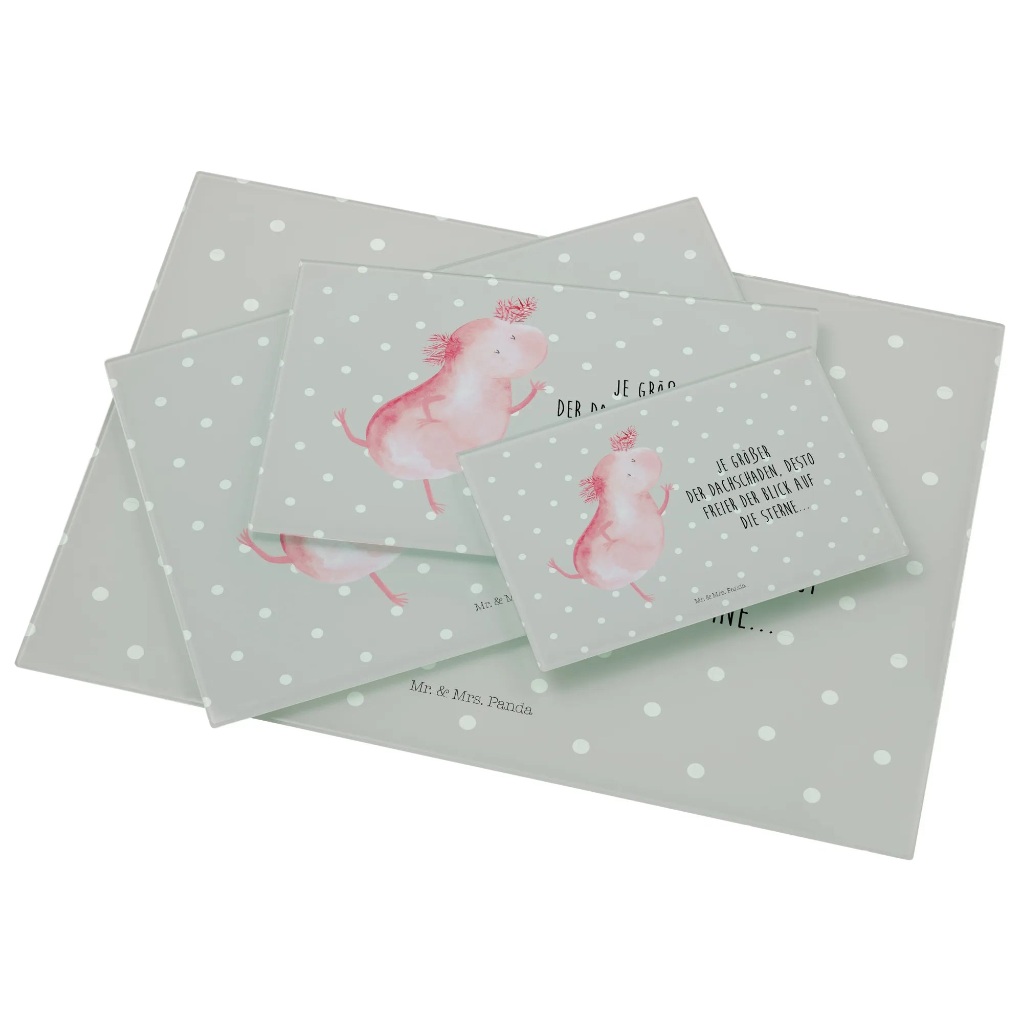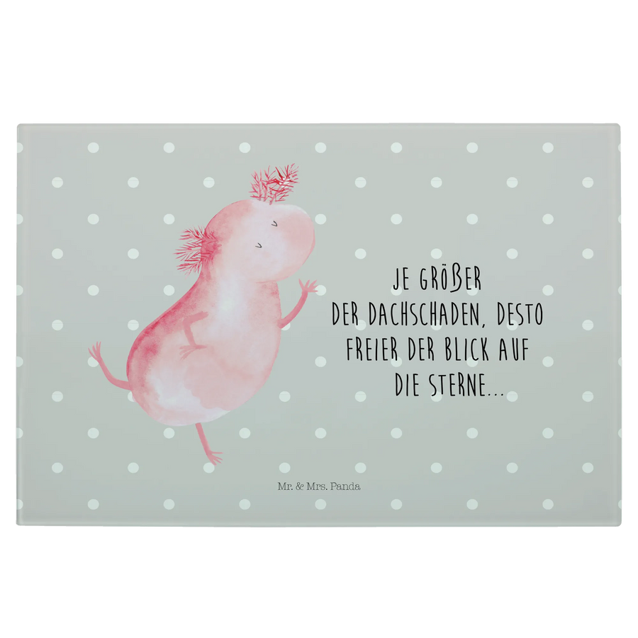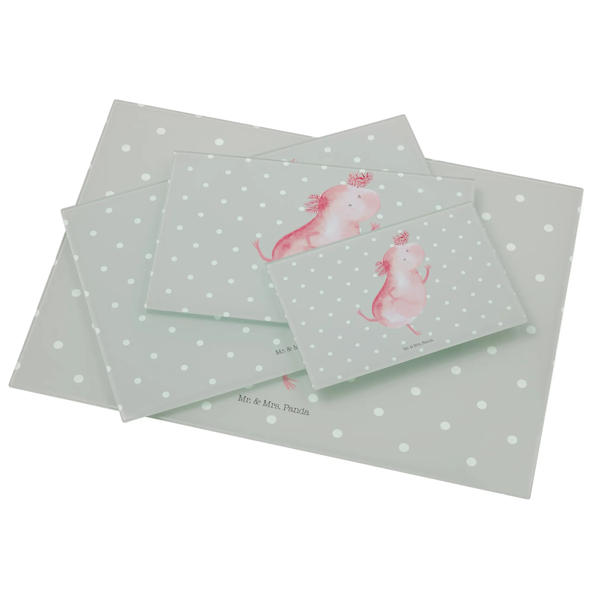 Glasschneidebrett Axolotl Tanzen - Medium Glas Schneidbrett - mit Spruch - Grau Pastell