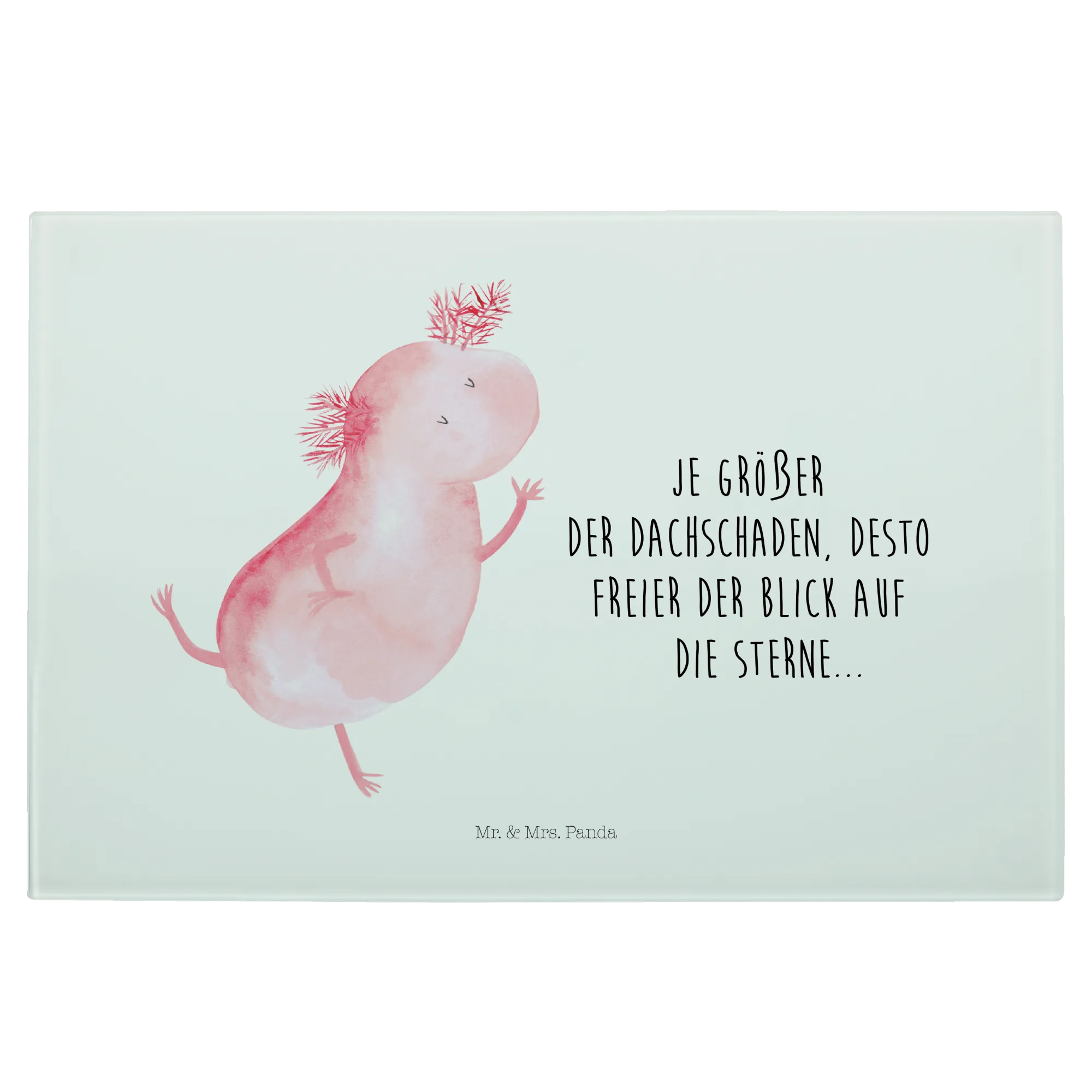 Entdecke unser einzigartiges XL Glas Schneidbrett mit dem fröhlichen Motiv "Axolotl tanzt" von Mr. & Mrs. Panda! Dieses bezaubernde Schneidbrett aus kratzfestem Glas bringt nicht nur Freude in deine Küche, sondern ist auch das ideale Geschenk für alle, die das Besondere lieben.