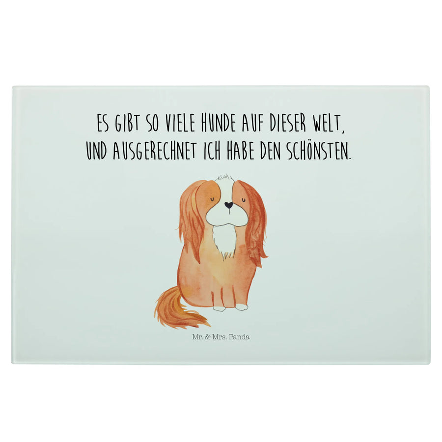 Glasschneidebrett Hund Cavalier King Charles Spaniel - Medium Glas Schneidbrett - mit Spruch - Weiß
