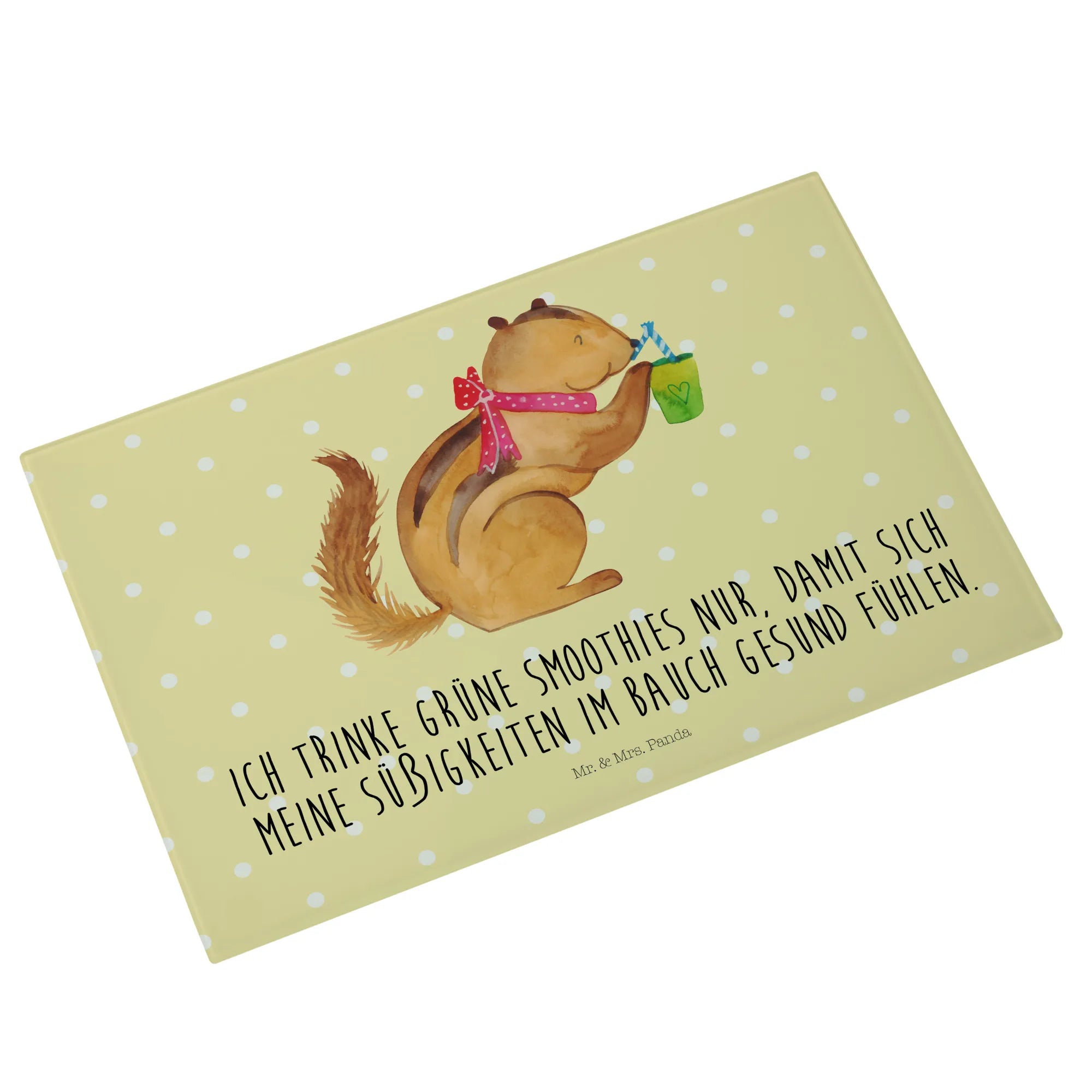 Das Medium Glas Schneidbrett mit dem süßen Eichhörnchen-Motiv aus der Small World Kollektion von Mr. & Mrs. Panda ist das perfekte Geschenk für alle, die eine Vorliebe für kreative Küchendekoration und gesunde Ernährung haben! Mit dem witzigen Spruch "Ich trinke grüne Smoothies nur, damit sich meine Süßigkeiten im Bauch gesund fühlen." bringt dieses Schneidbrett nicht nur eine fröhliche Stimmung in deine Küche, sondern inspiriert auch zum gesunden Kochen.