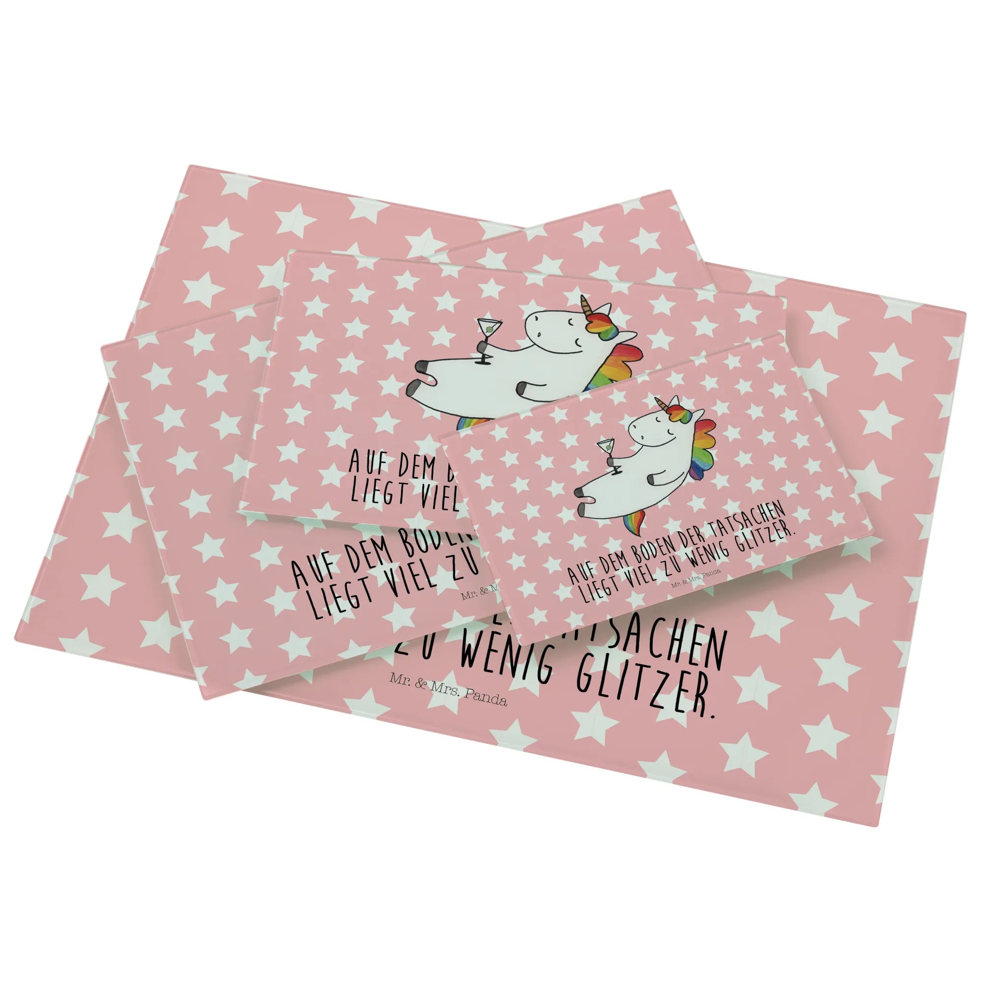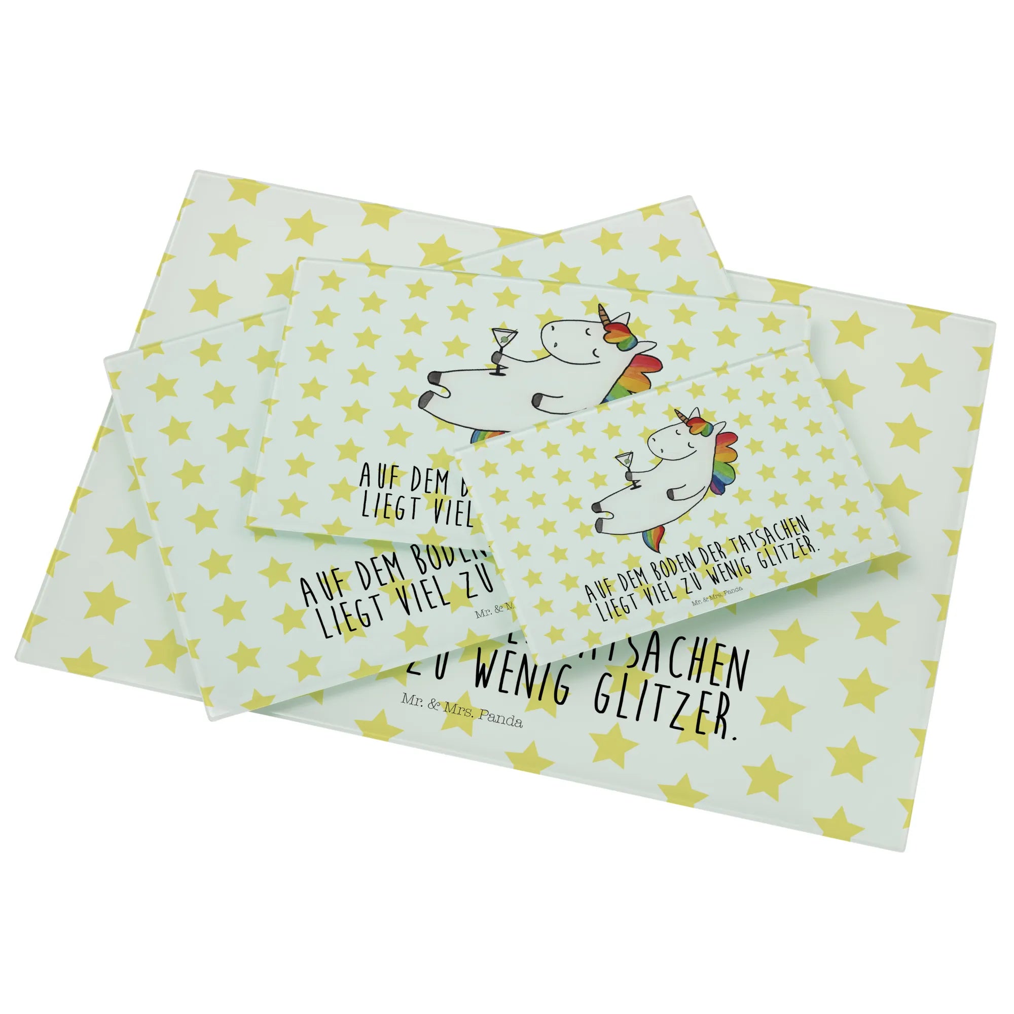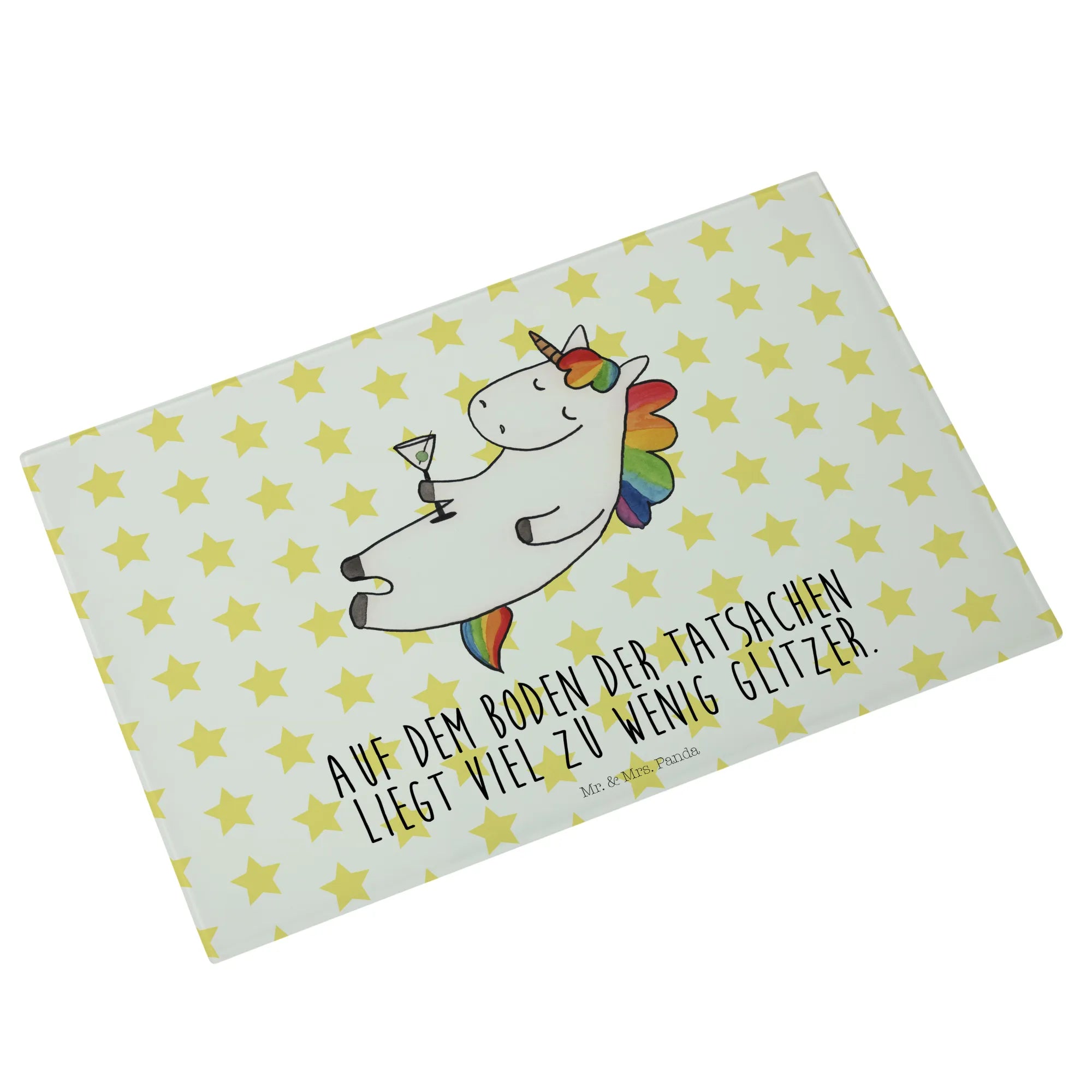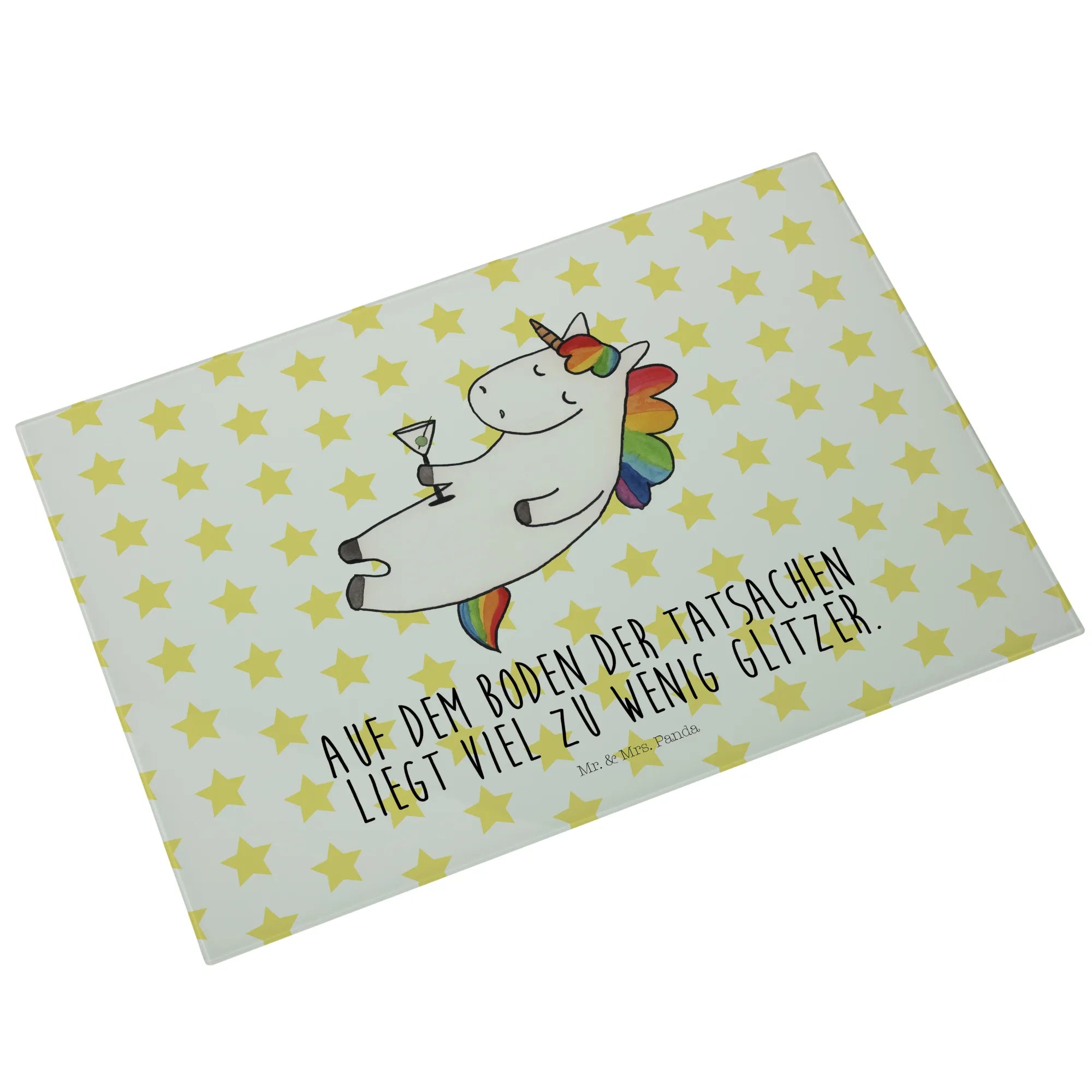 Das perfekte Medium Glas Schneidebrett im Design Einhorn Cocktail von Mr. & Mrs. Panda ist nicht nur ein praktischer Küchenhelfer, sondern auch ein echter Hingucker! Mit diesem süßen Einhorn, das glücklich einen Cocktail in der Hand hält, bringst du Glitzer in jede Küche. Ob als Geschenk für die beste Freundin, zum Geburtstag oder einfach als lustige Einladung zu einer Cocktailparty – dieses Schneidebrett sorgt für gute Laune!