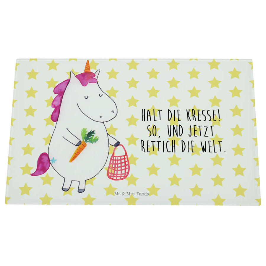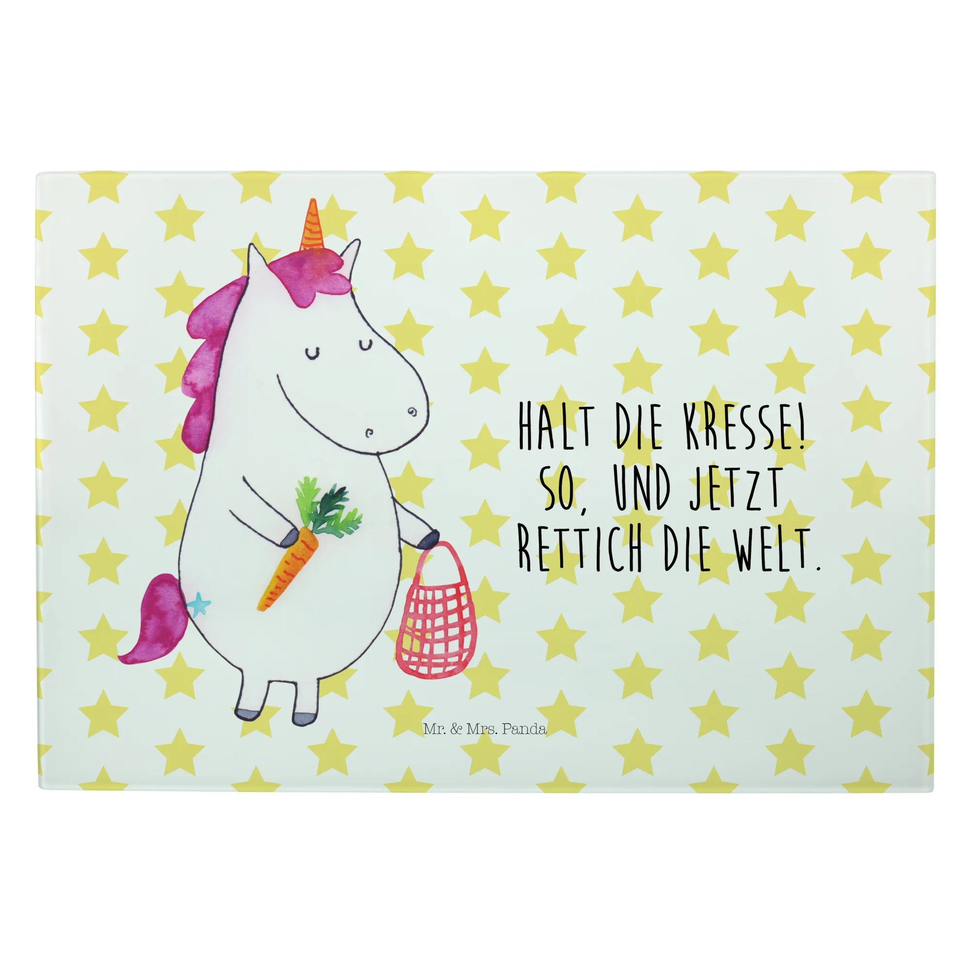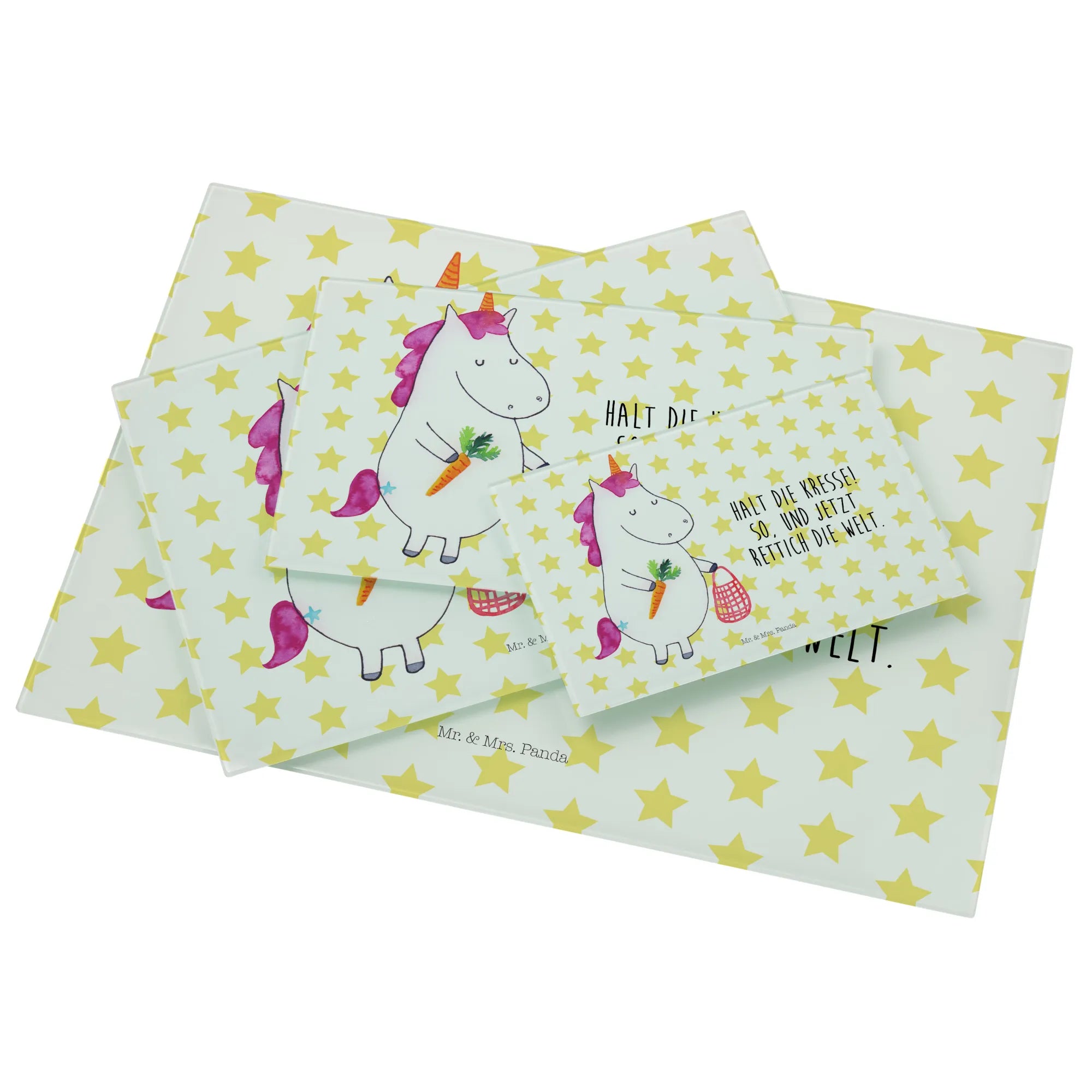 Das Medium Glas Schneidbrett mit dem zauberhaften Einhorn-Gemüse-Motiv von Mr. & Mrs. Panda ist der perfekte Begleiter in deiner Küche! 🍴 Dieses Schneidebrett aus kratzfestem Glas vereint Funktionalität und kreative Gestaltung.