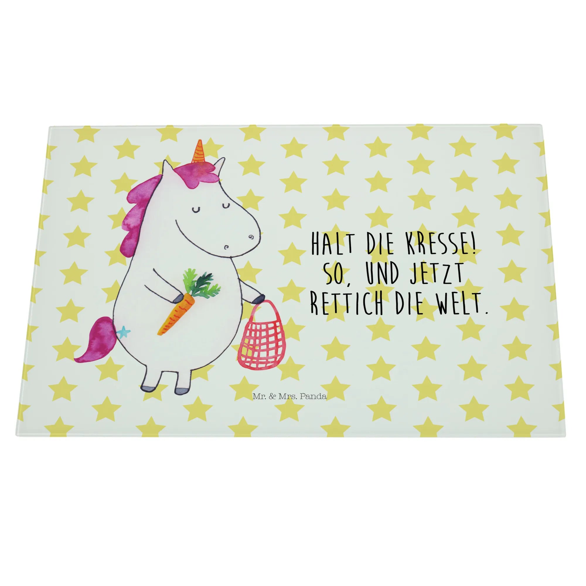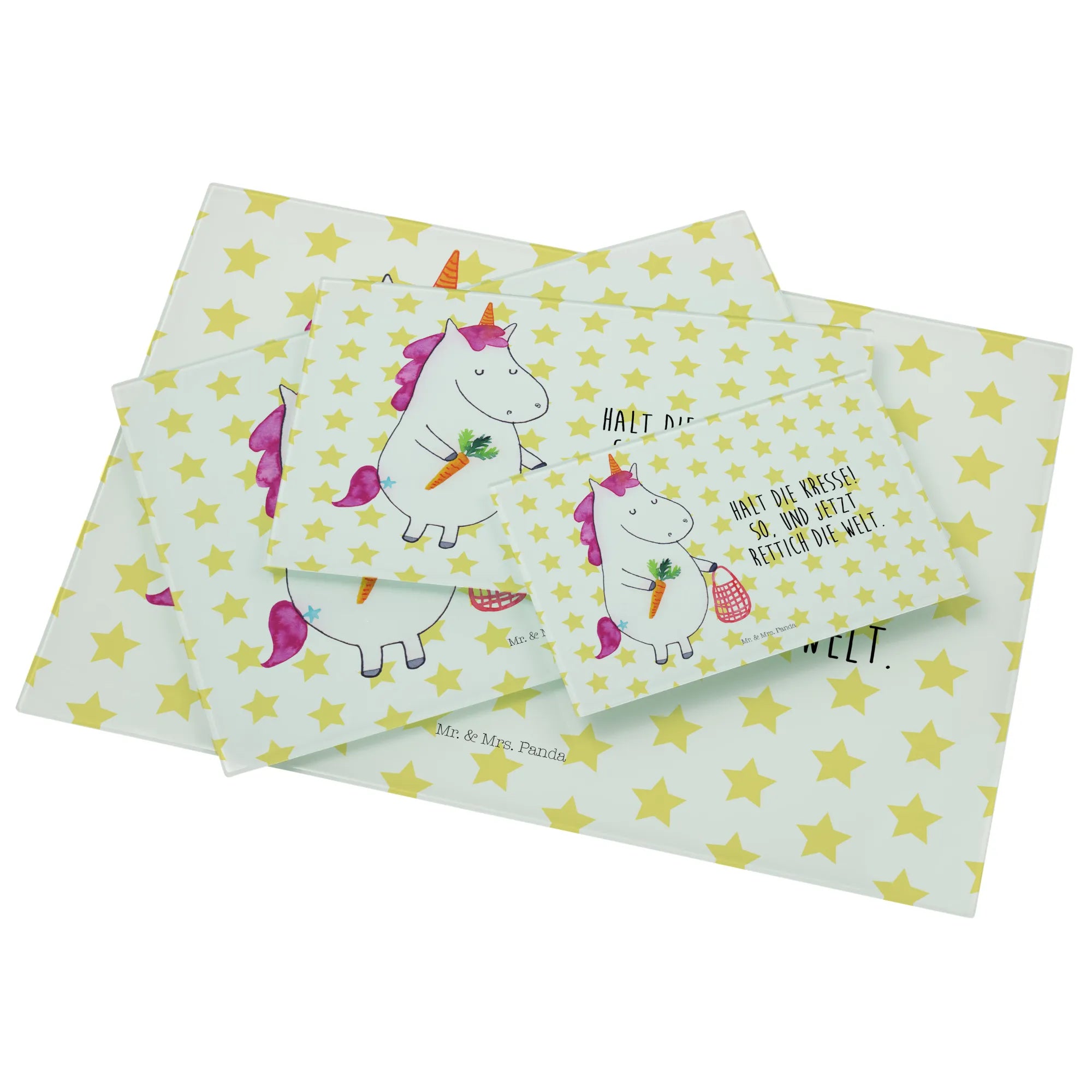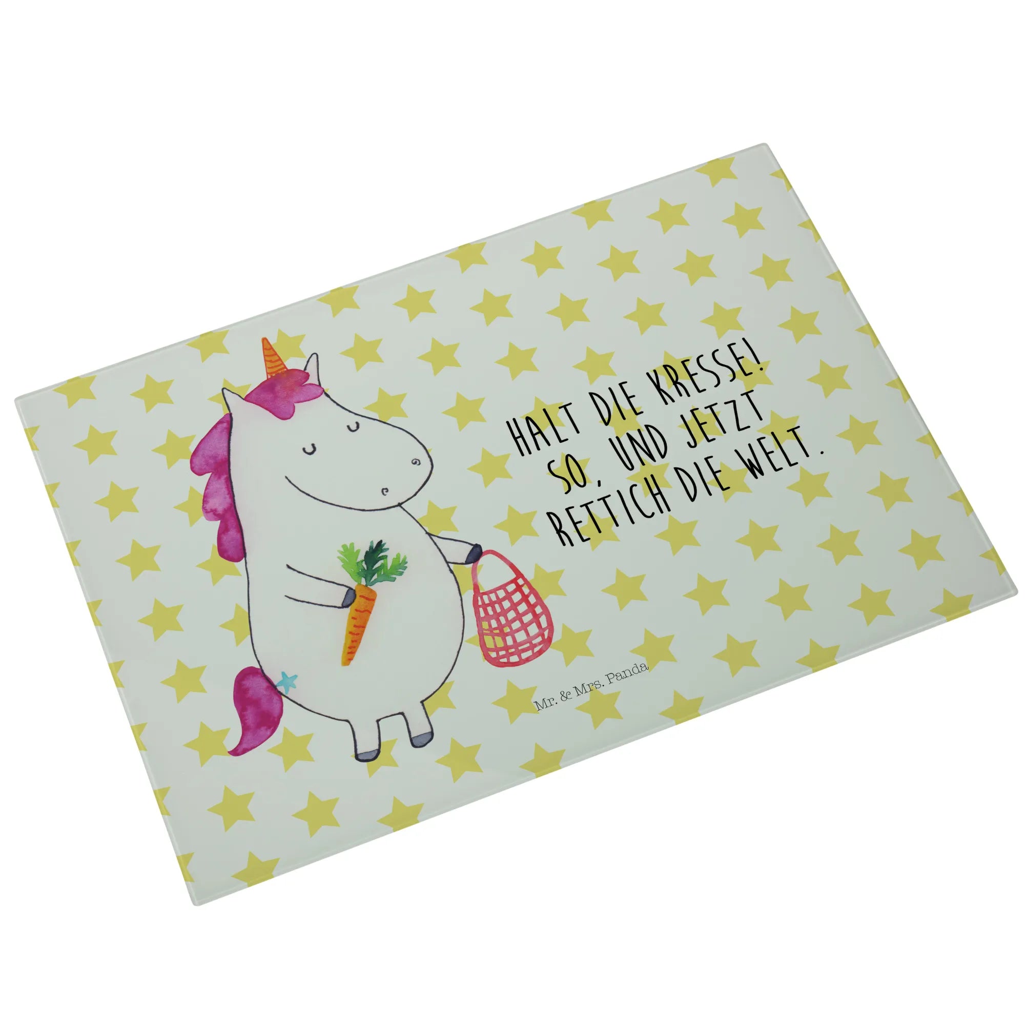 Das Medium Glas Schneidbrett mit dem zauberhaften Einhorn-Gemüse-Motiv von Mr. & Mrs. Panda ist der perfekte Begleiter in deiner Küche! 🍴 Dieses Schneidebrett aus kratzfestem Glas vereint Funktionalität und kreative Gestaltung.