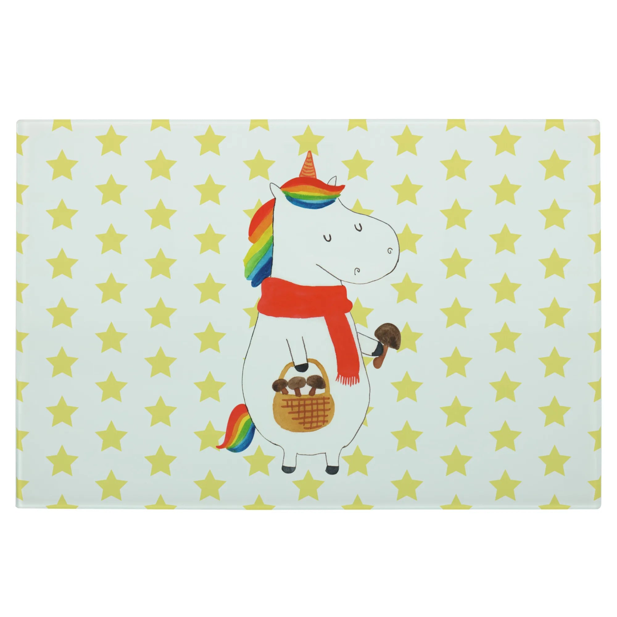 Glasschneidebrett Einhorn Pilz - Medium Glas Schneidbrett - mit Spruch - Weiß