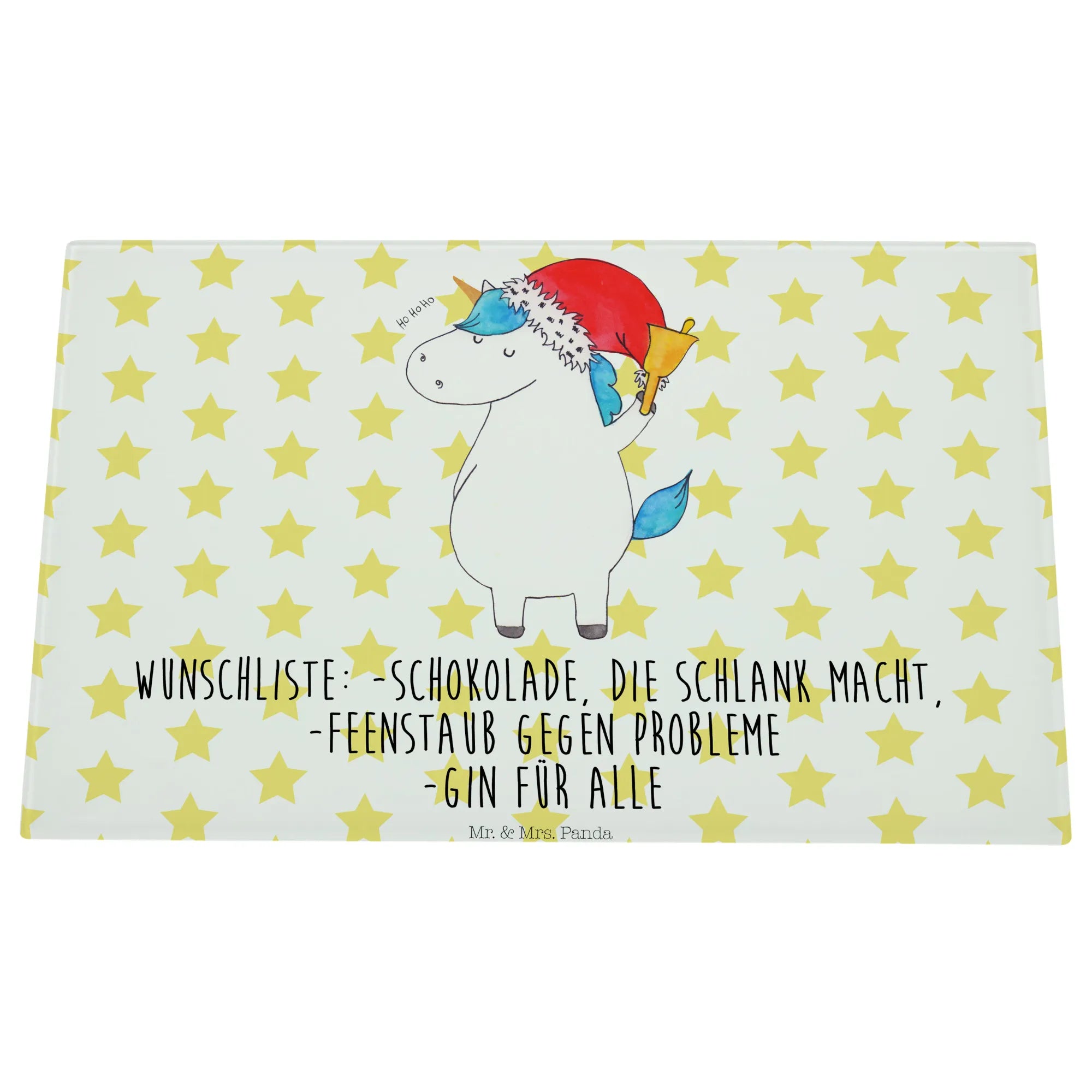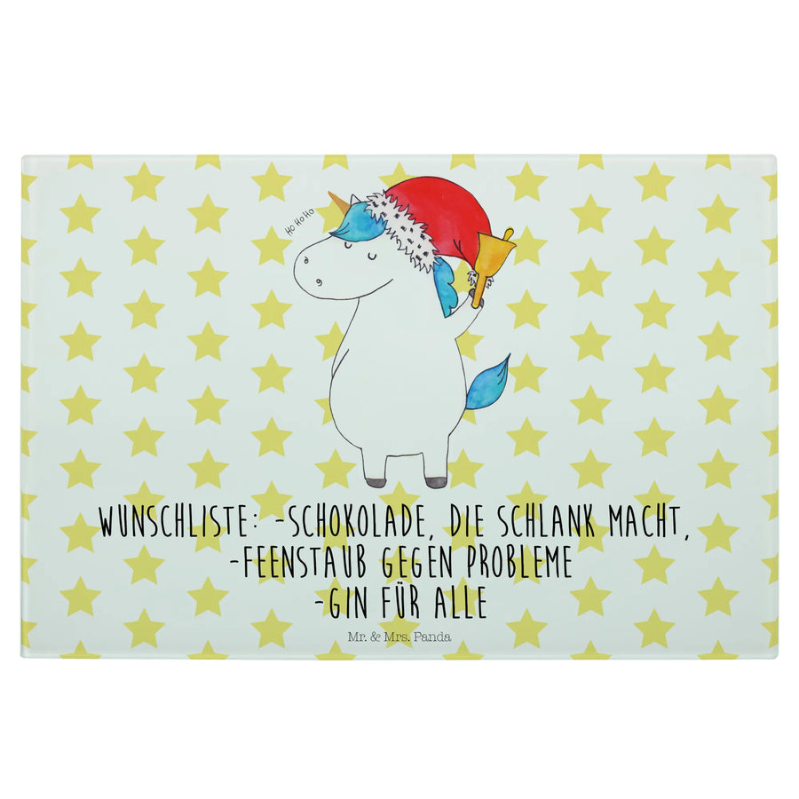 Glasschneidebrett Einhorn Weihnachtsmann - Medium Glas Schneidbrett - mit Spruch - Weiß