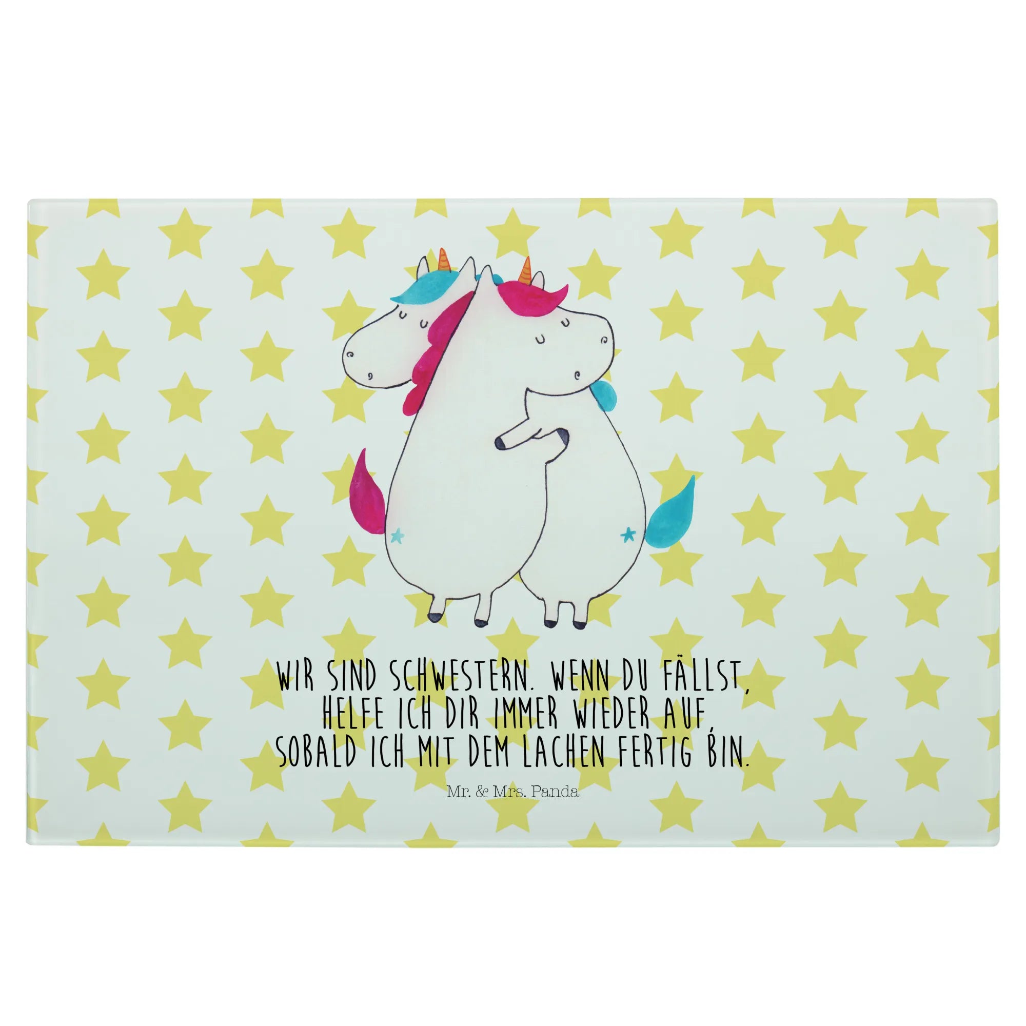 Glasschneidebrett Einhörner Umarmen - Medium Glas Schneidbrett - mit Spruch - Weiß