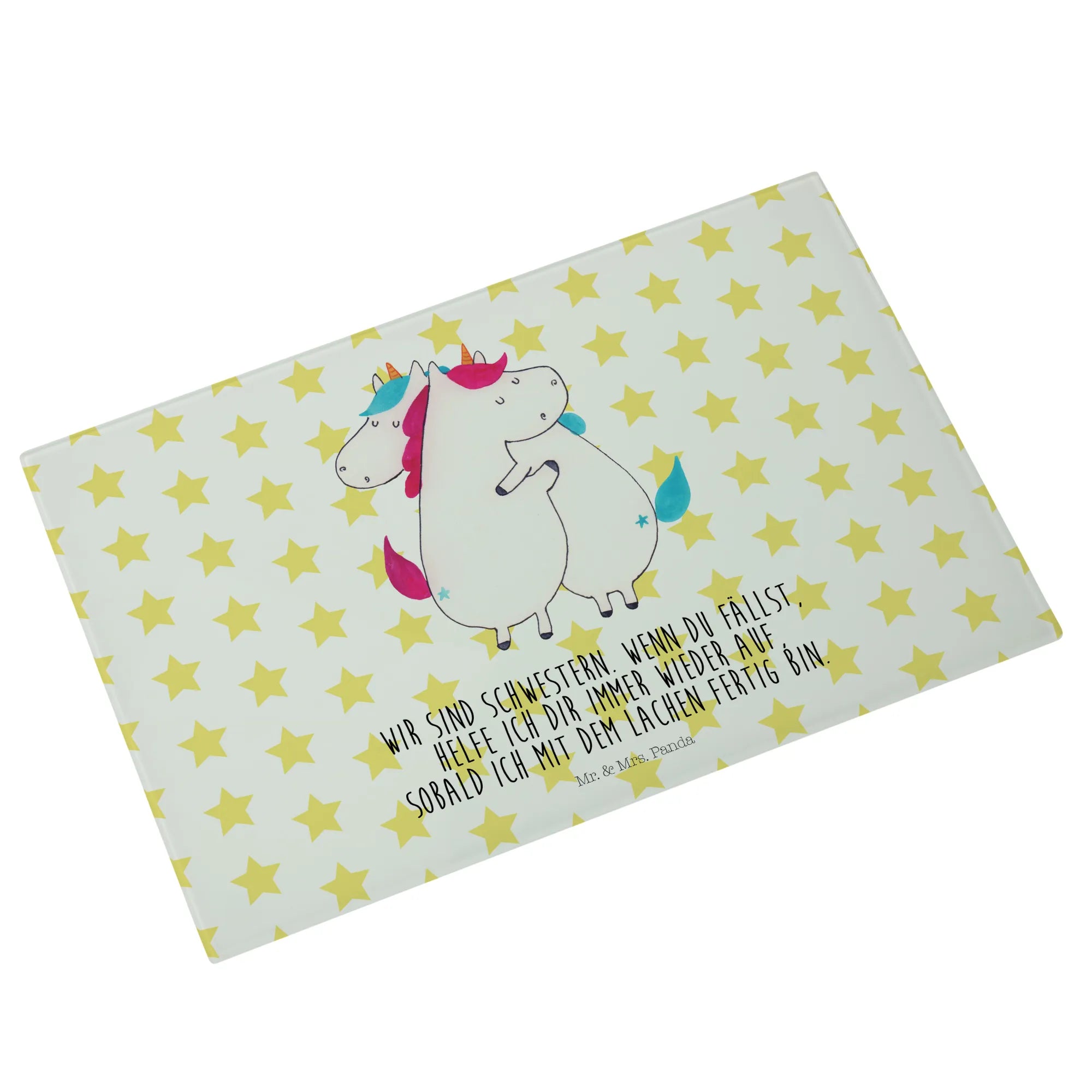 Das XL Glas Schneidbrett mit dem bezaubernden Motiv "Einhörner Umarmen" von Mr. & Mrs. Panda ist das perfekte Geschenk für jede Schwester, Freundin oder Familie, die die magische Welt der Einhörner liebt. Jedes Mal, wenn du in der Küche stehst und das Brett verwendest, wirst du an die besondere Verbindung erinnert, die du mit deiner Schwester oder besten Freundin teilst.
