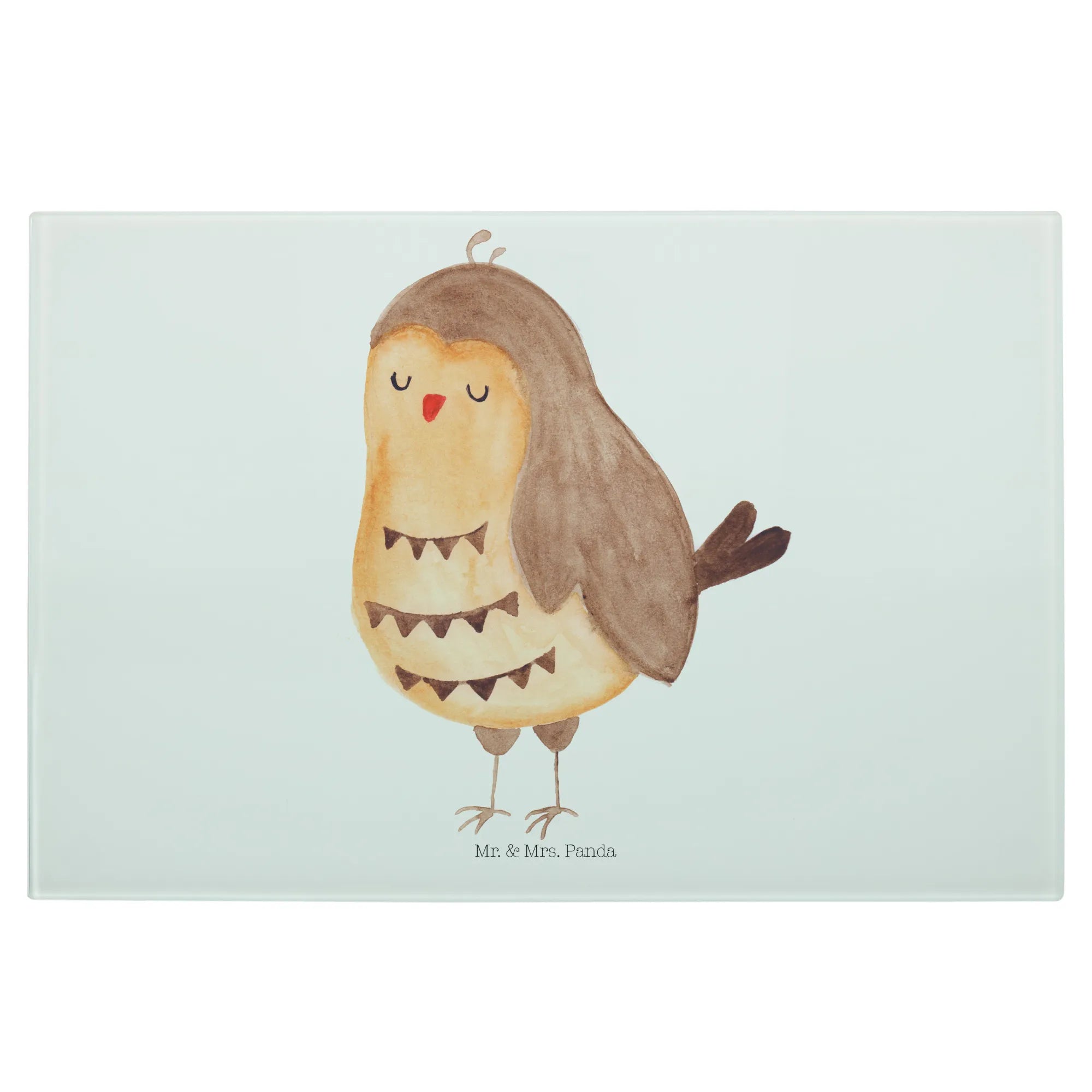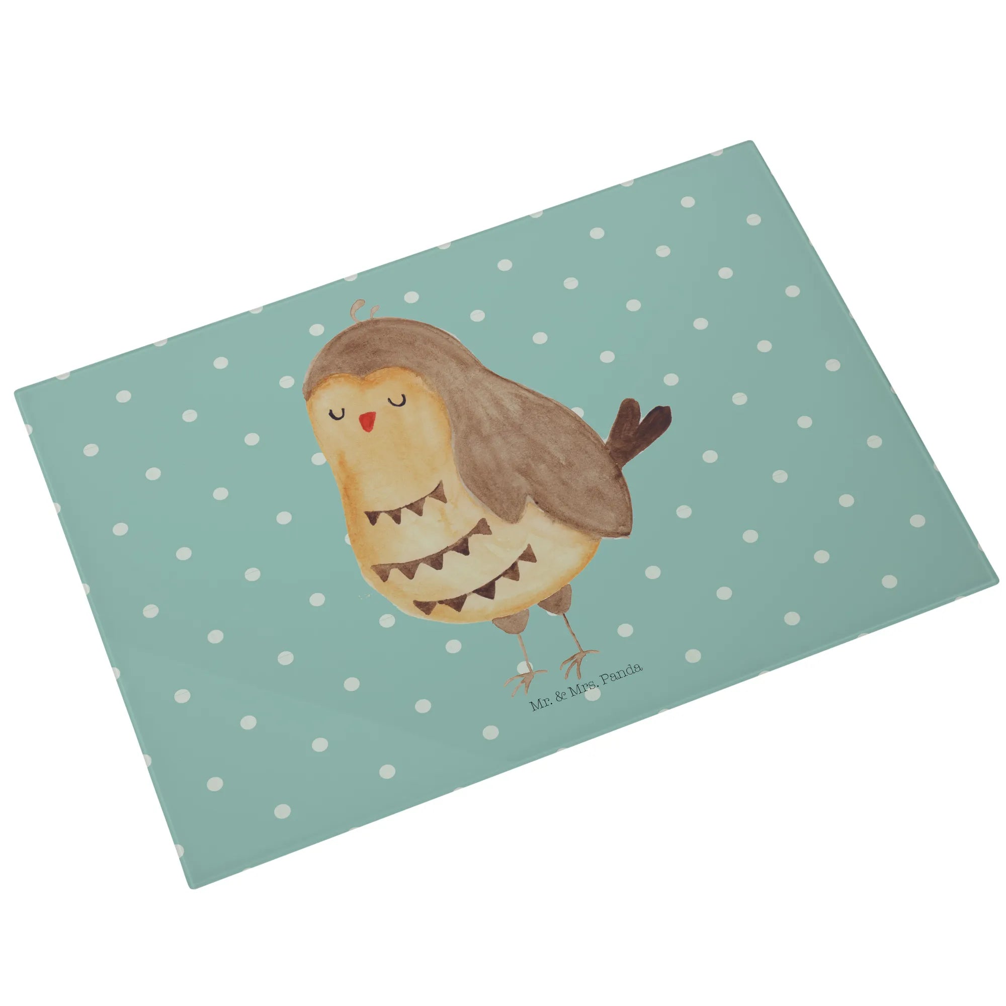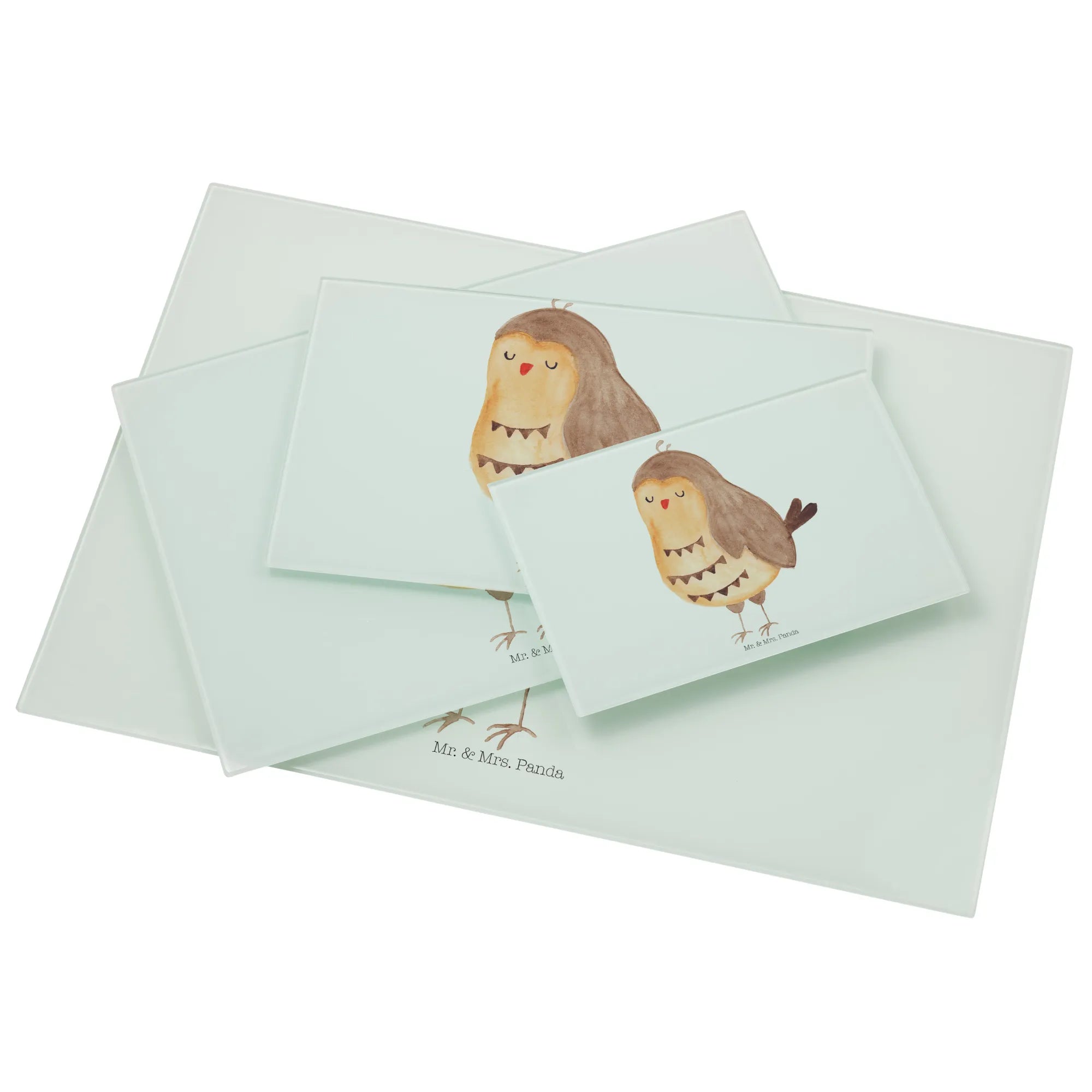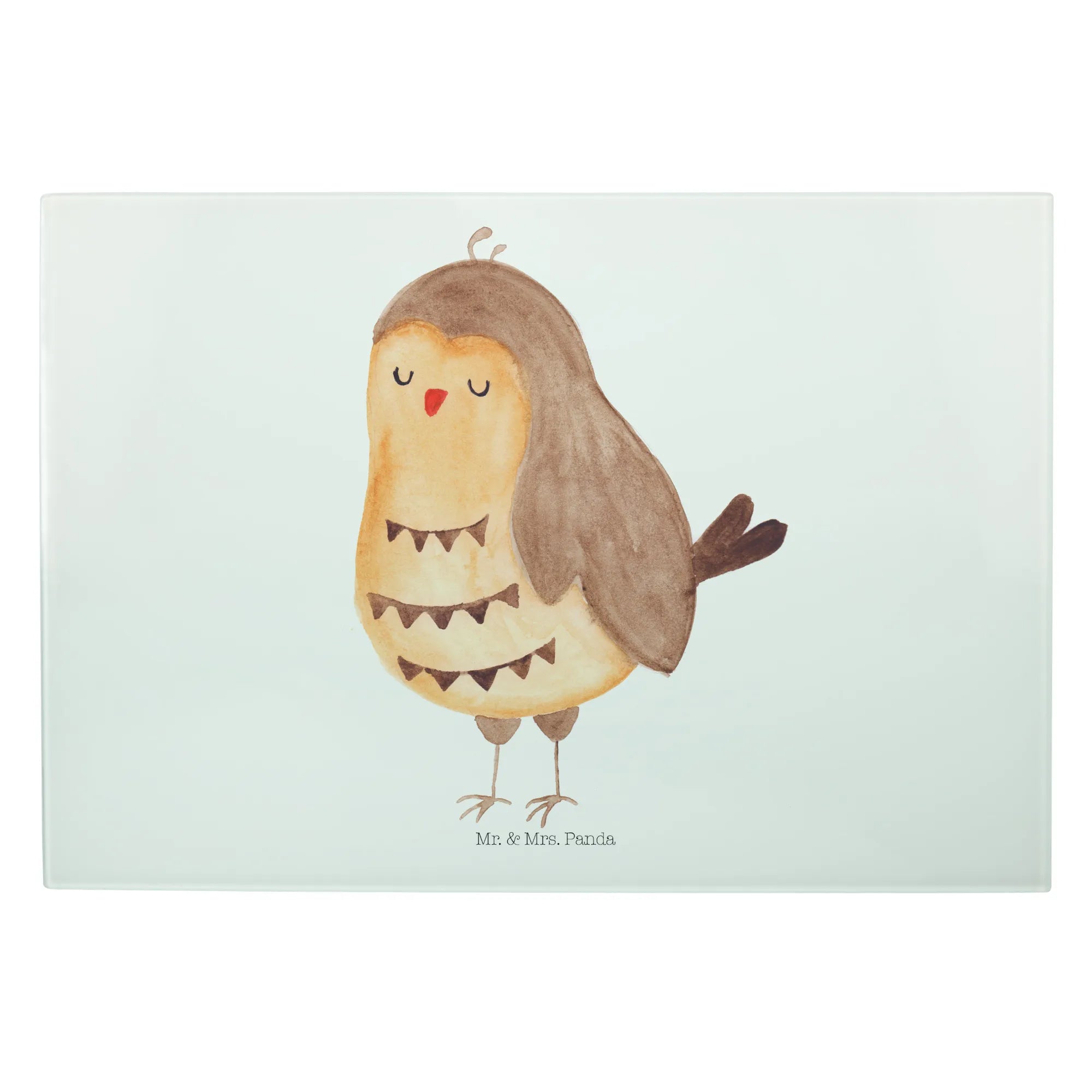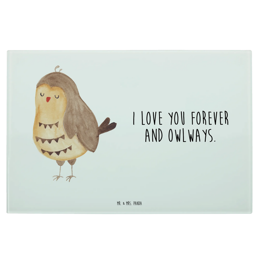 XL Glas Schneidebrett „Eule Zufrieden“ von Mr. & Mrs. Panda
