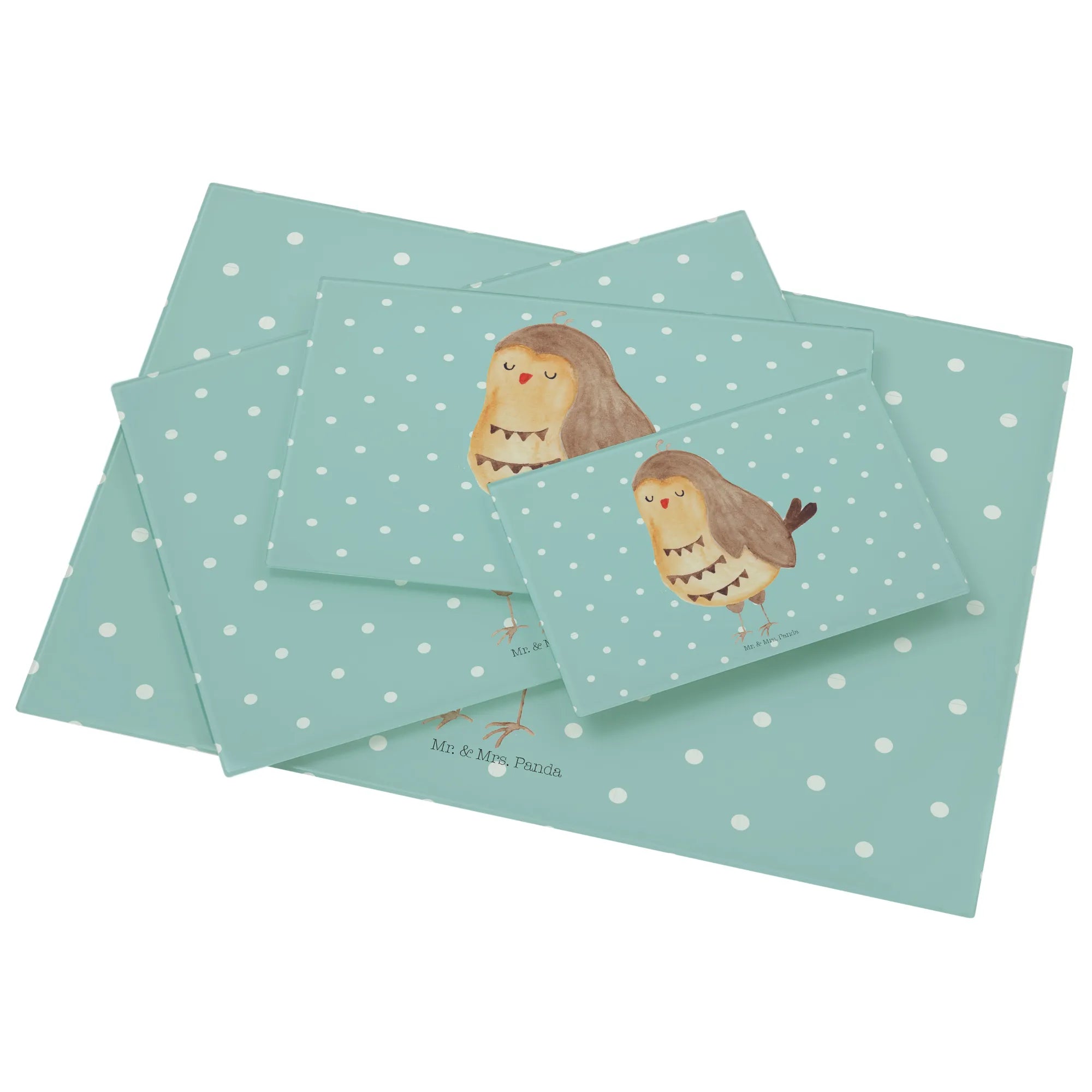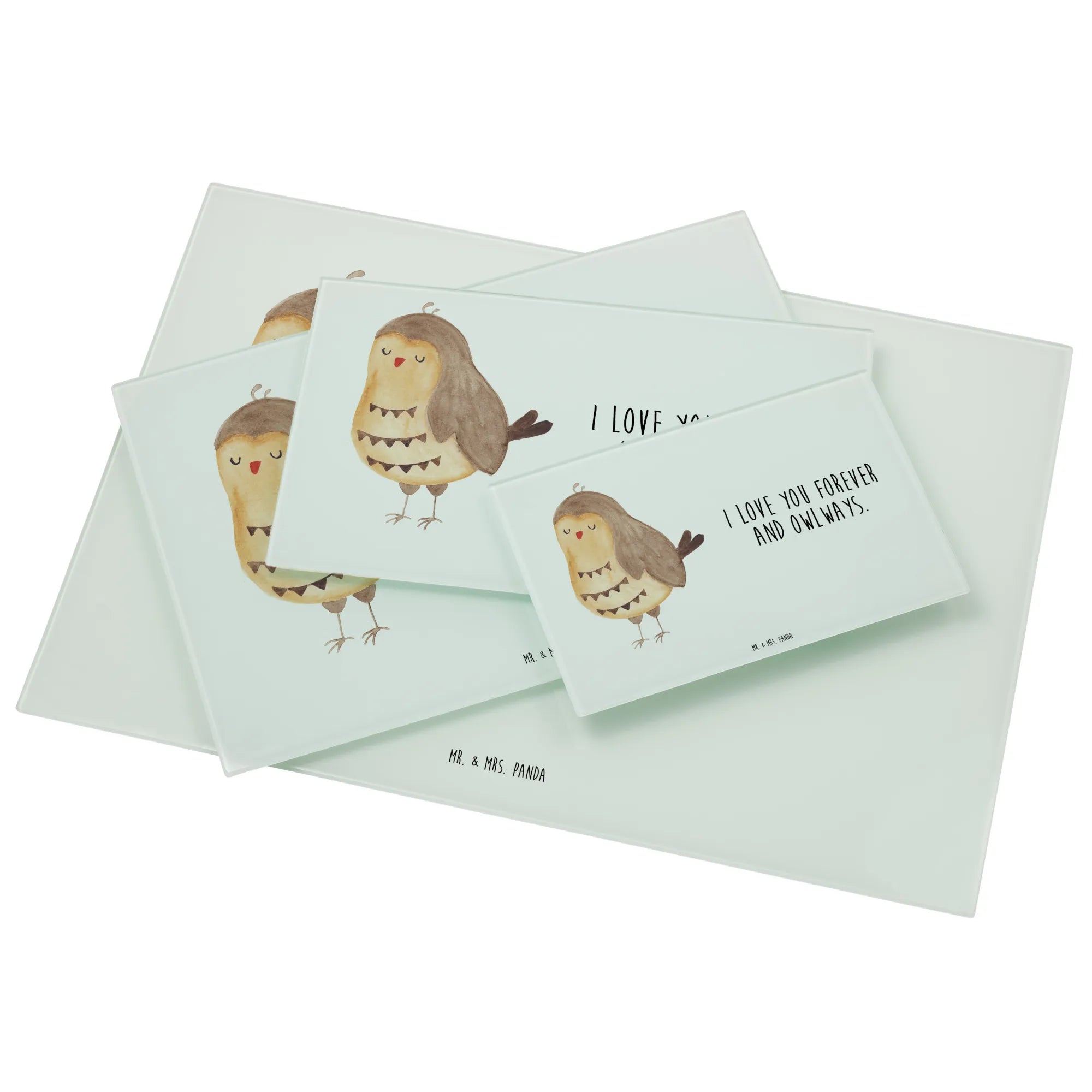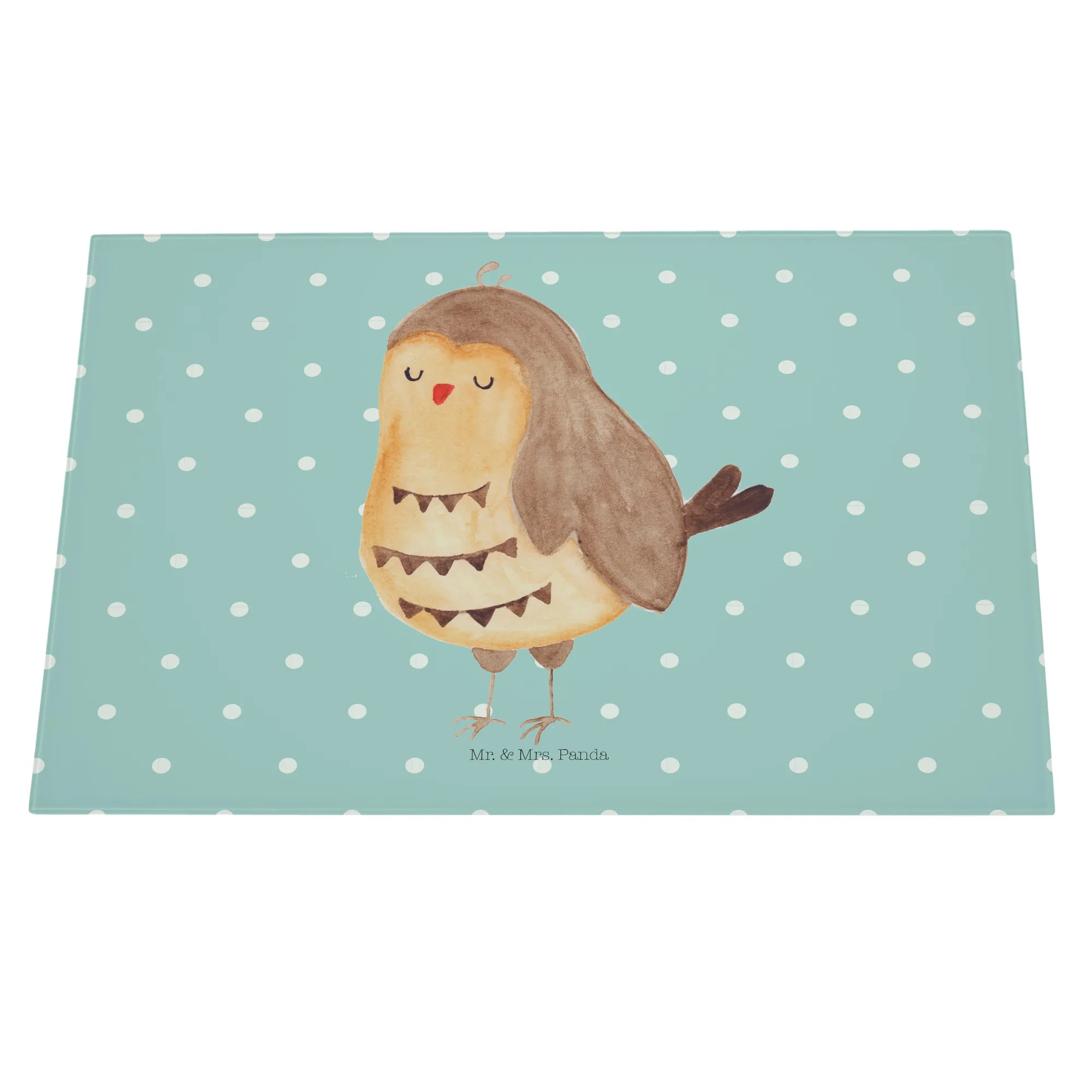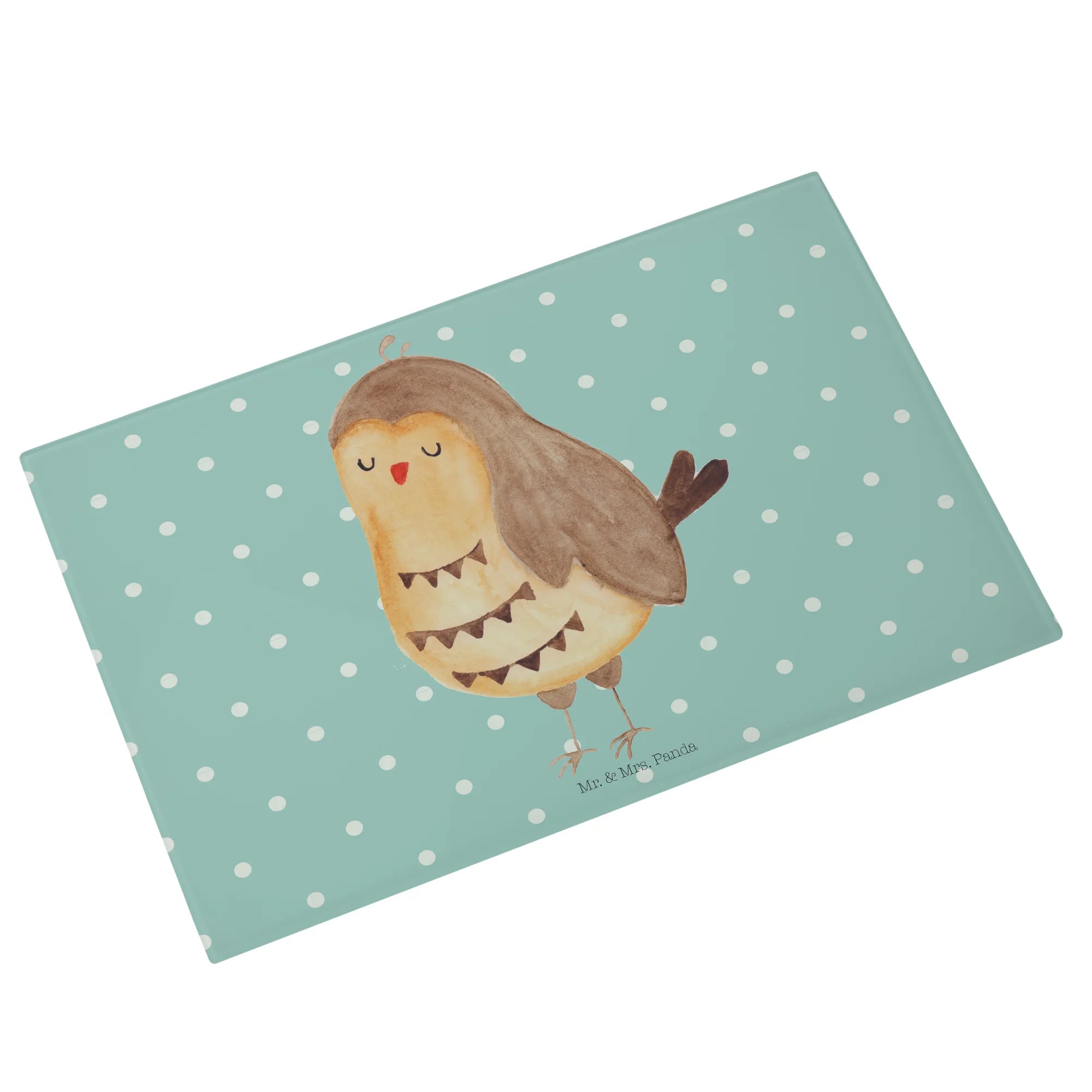 XL Glas Schneidebrett „Eule Zufrieden“ von Mr. & Mrs. Panda
