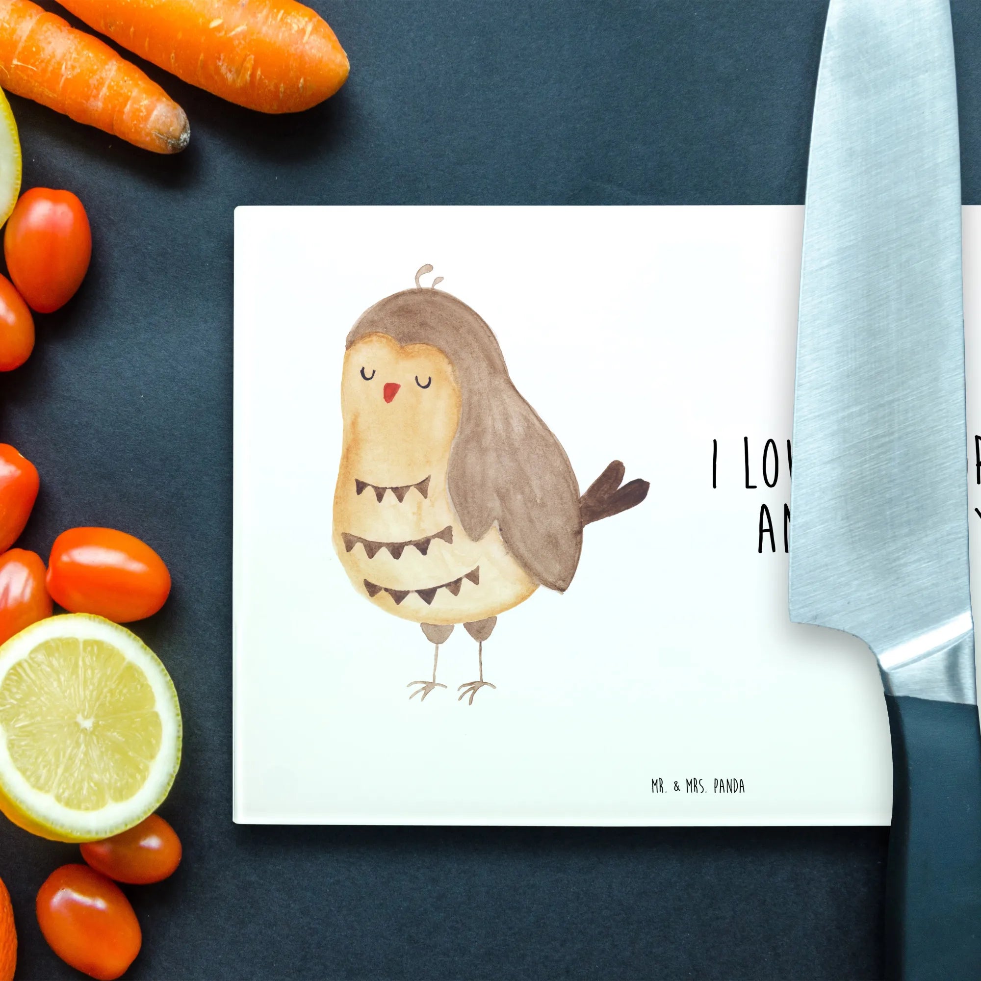 Die Eulen-Kollektion von Mr. & Mrs. Panda vereint die Liebe zu diesen tollen Tieren mit der Leidenschaft für hochwertige Produkte. Jedes Stück wird mit viel Herzblut und Kreativität gestaltet und trägt den unverwechselbaren Stil von Mrs. Panda. Mache deinem Lieblingsmenschen eine Freude oder verwöhne dich selbst mit diesem einzigartigen Schneidbrett.