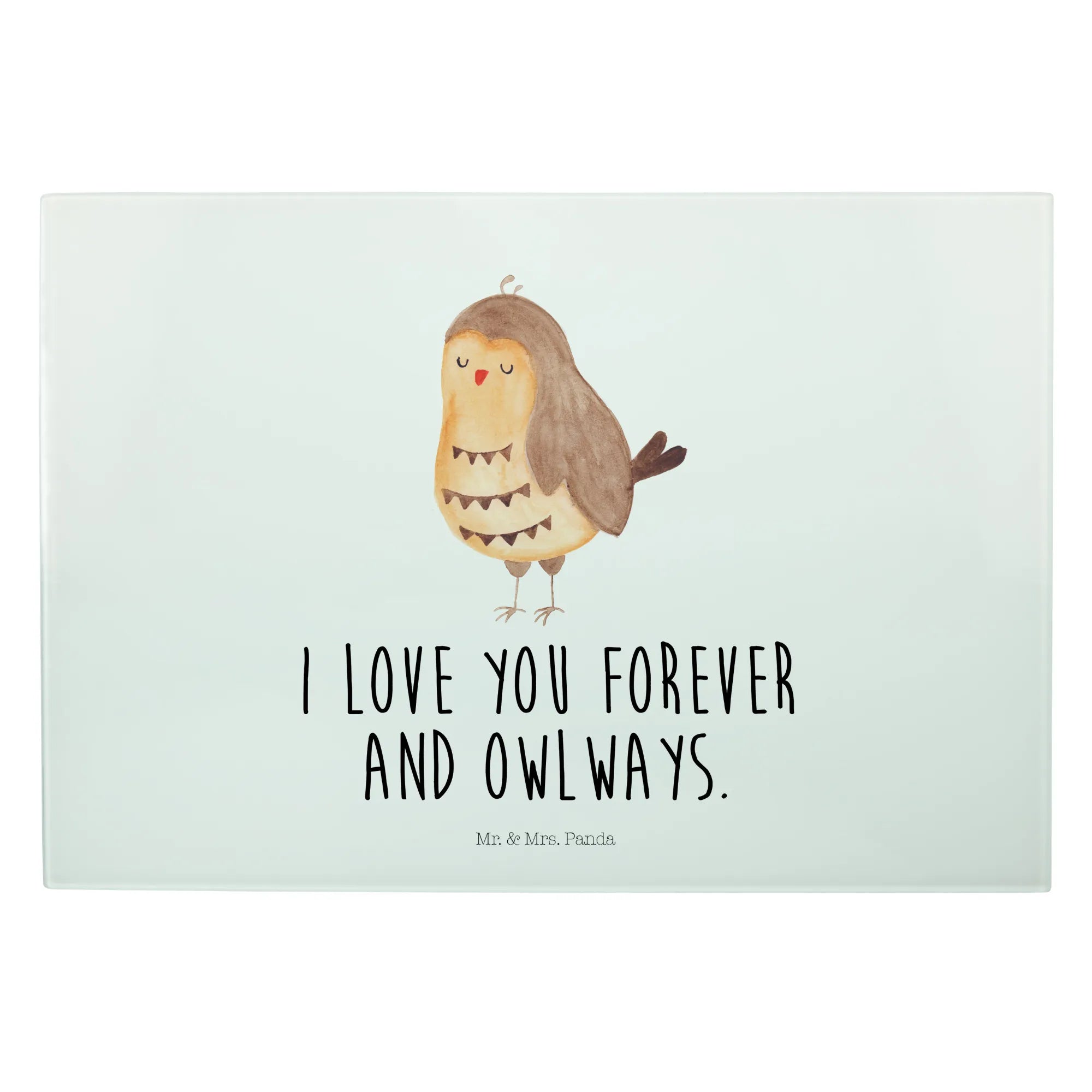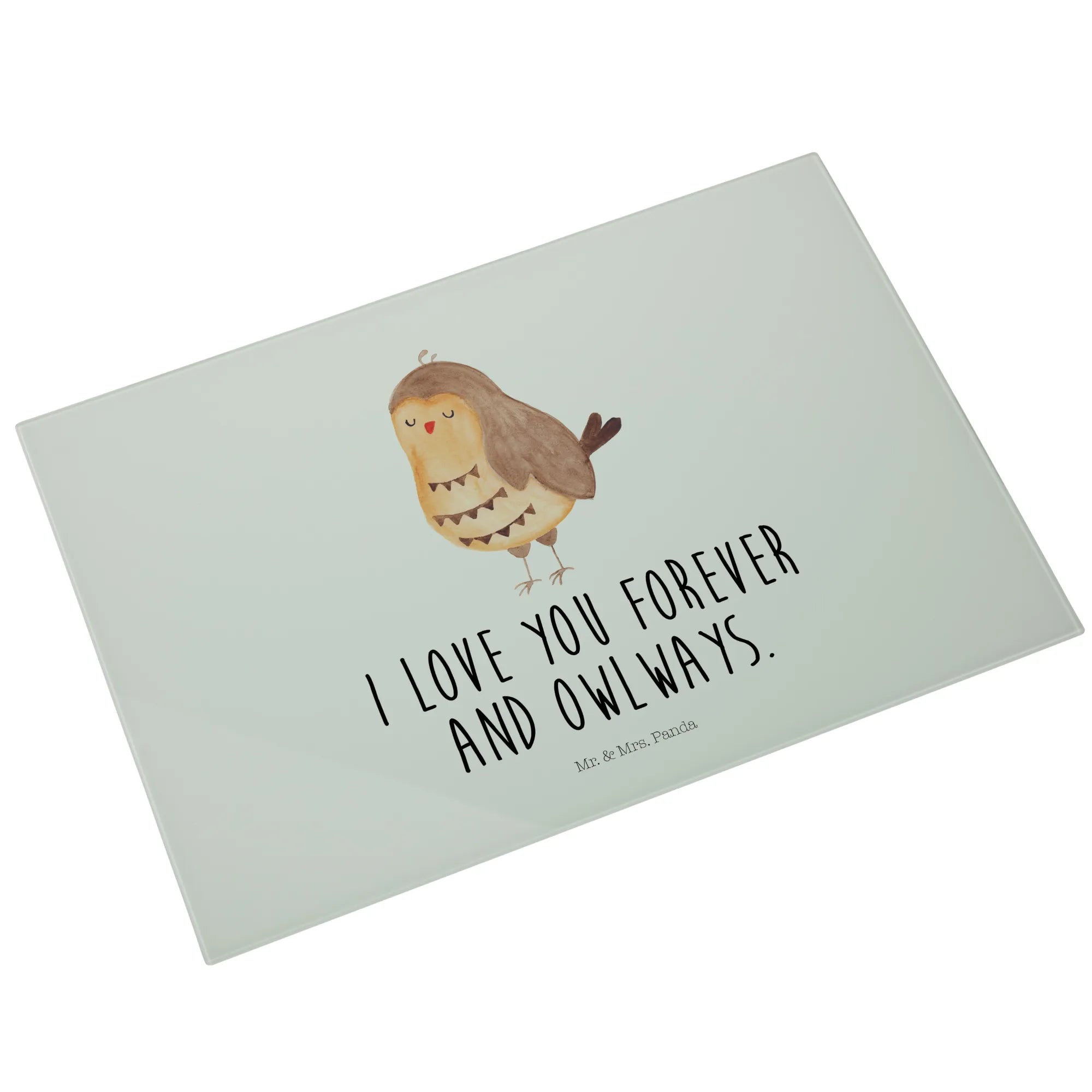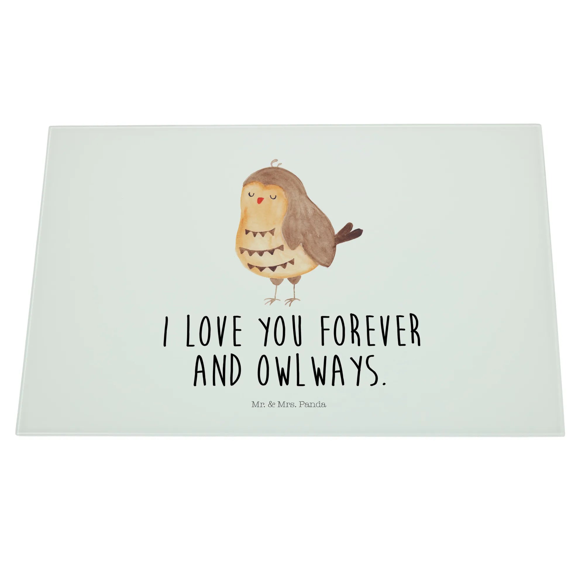 Das XL Glas Schneidbrett "Eule Zufrieden" von Mr. & Mrs. Panda ist das perfekte Geschenk für alle Eulenliebhaber! 🦉 Mit seinem charmanten Motiv und dem liebevollen Spruch "I love you forever and owlways" bringt es nicht nur Freude in die Küche, sondern auch in jedes Herz.