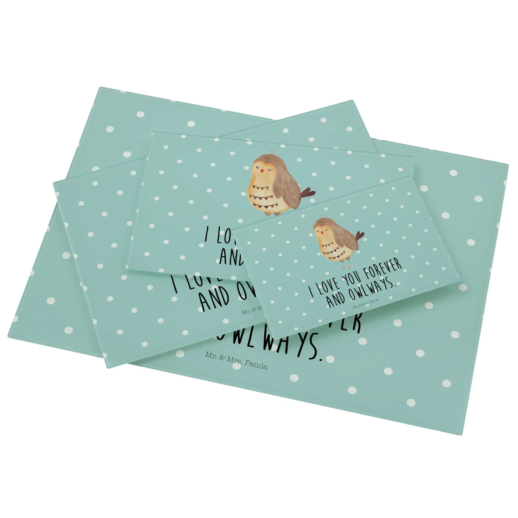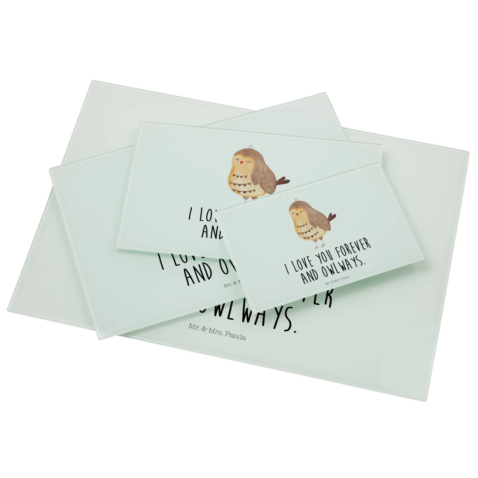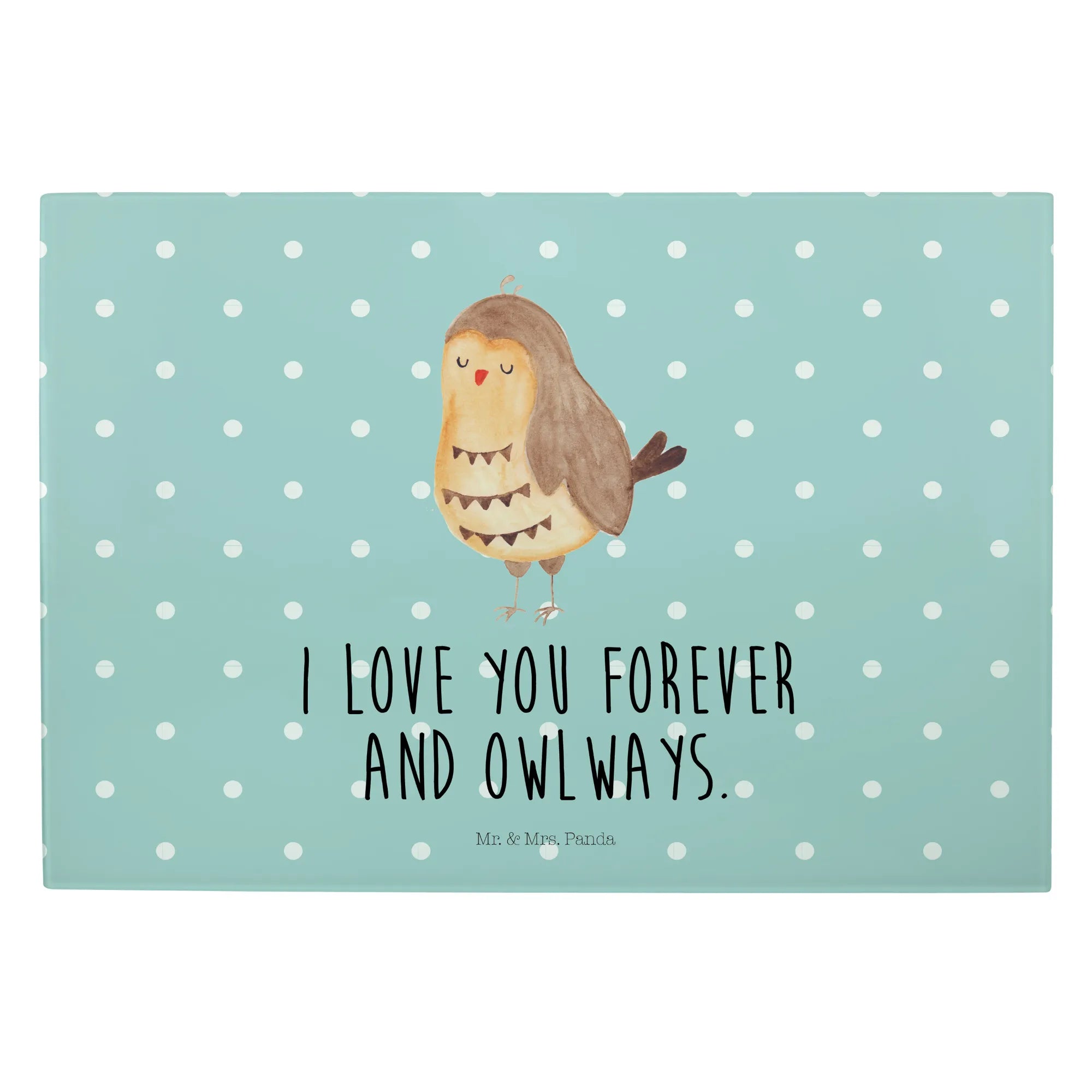 Das XL Glas Schneidbrett "Eule Zufrieden" von Mr. & Mrs. Panda ist das perfekte Geschenk für alle Eulenliebhaber! 🦉 Mit seinem charmanten Motiv und dem liebevollen Spruch "I love you forever and owlways" bringt es nicht nur Freude in die Küche, sondern auch in jedes Herz.