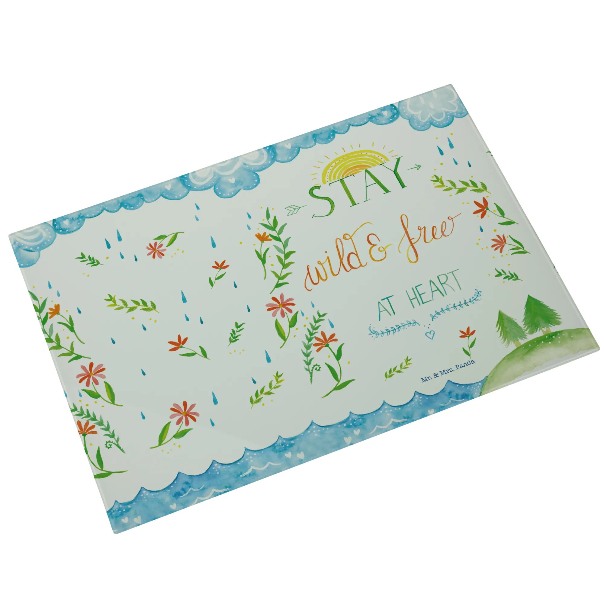 Das Medium Glas Schneidbrett "Flasche Abenteuer" aus der Kollektion Wild & Free von Mr. & Mrs. Panda ist mehr als nur ein praktisches Küchenutensil – es ist ein Stück Natur für dein Zuhause!
