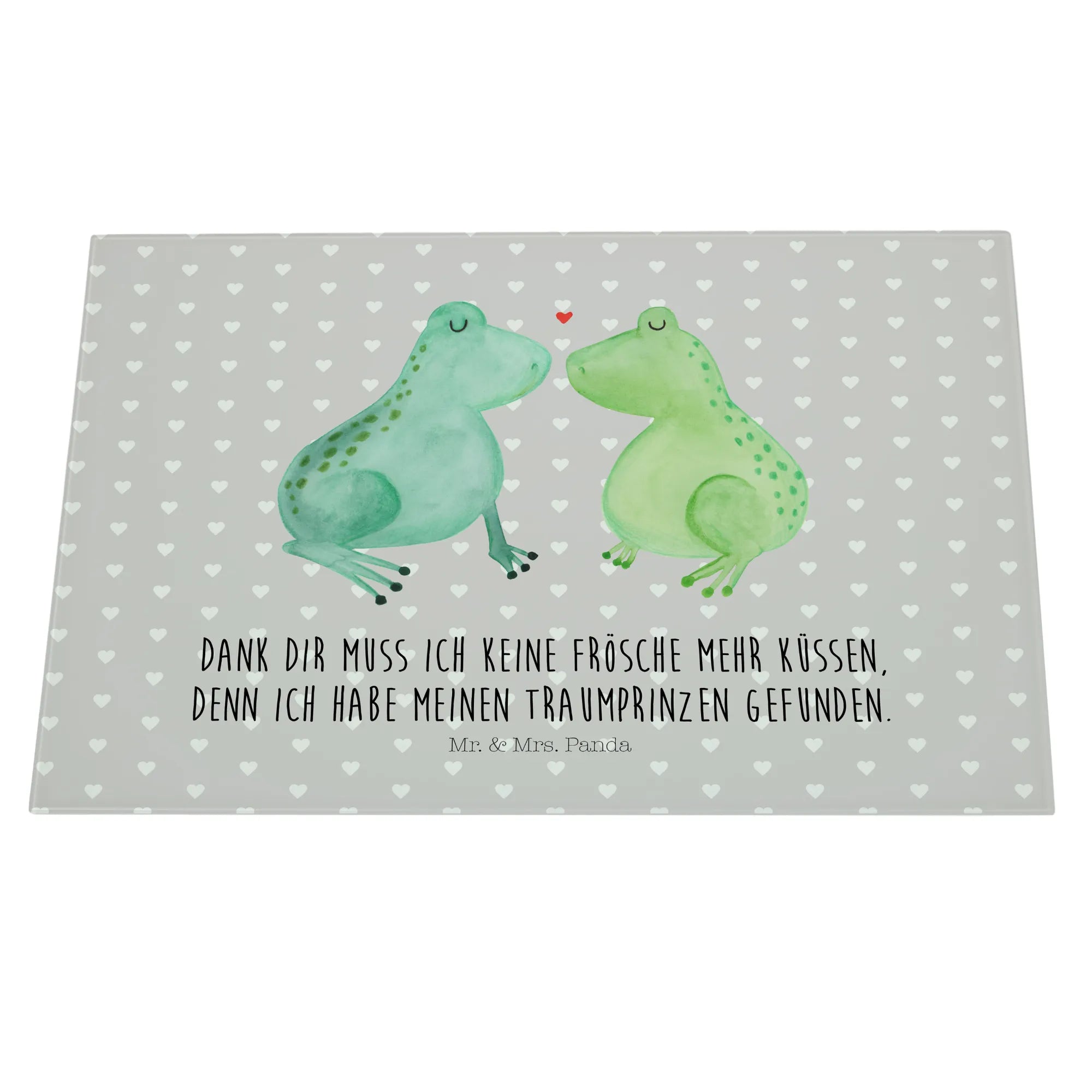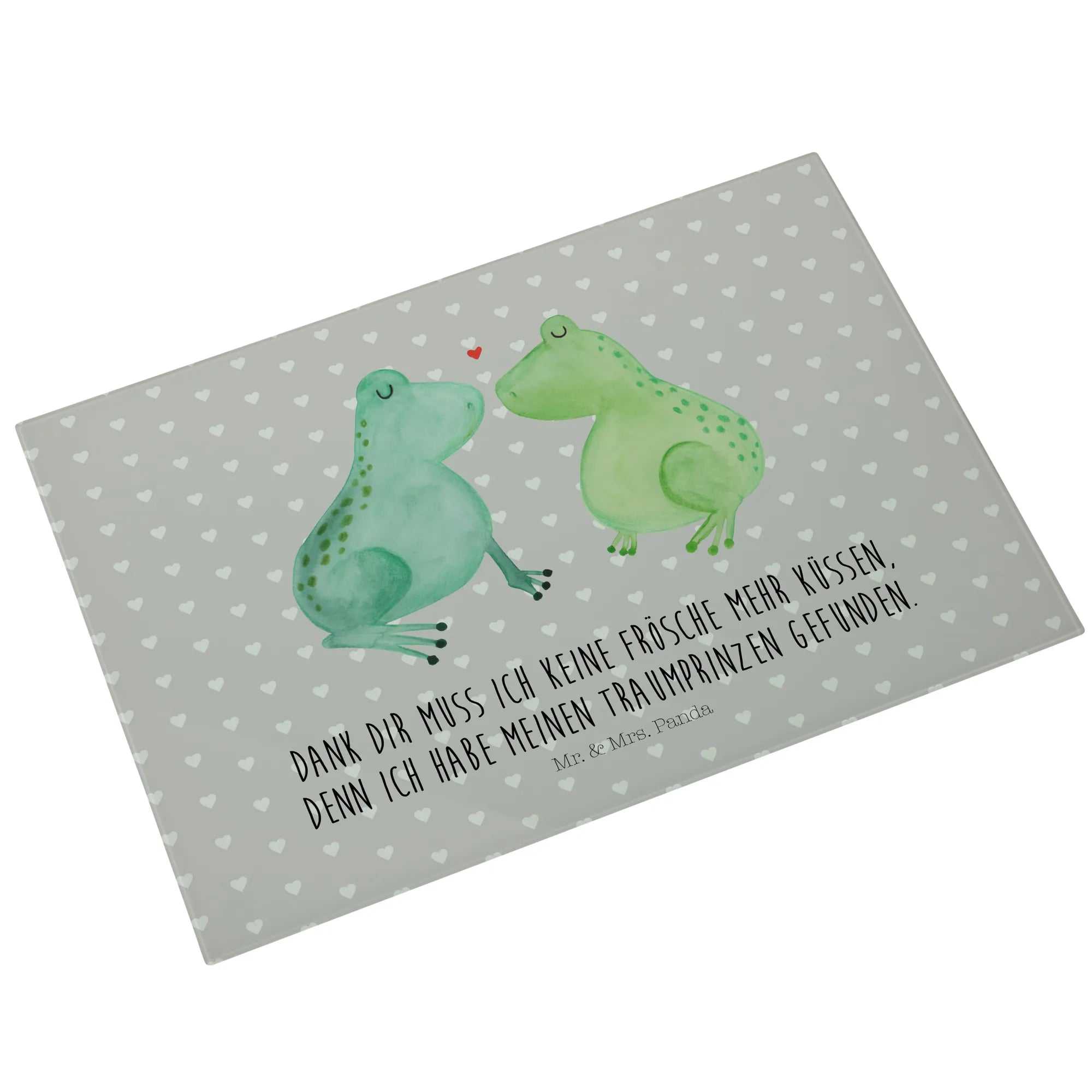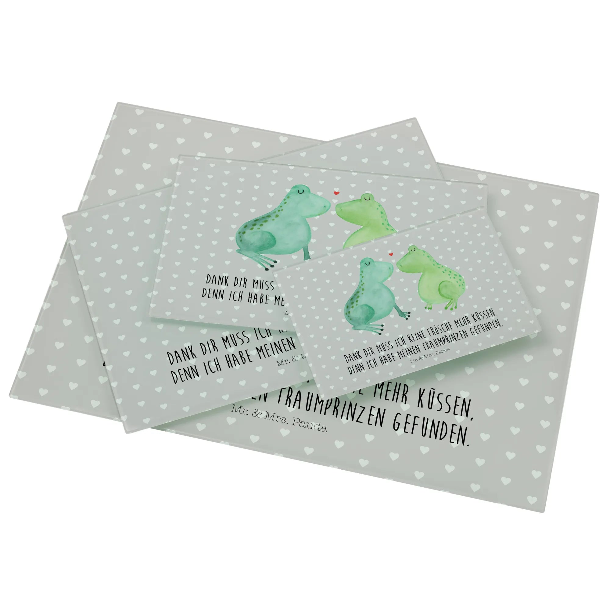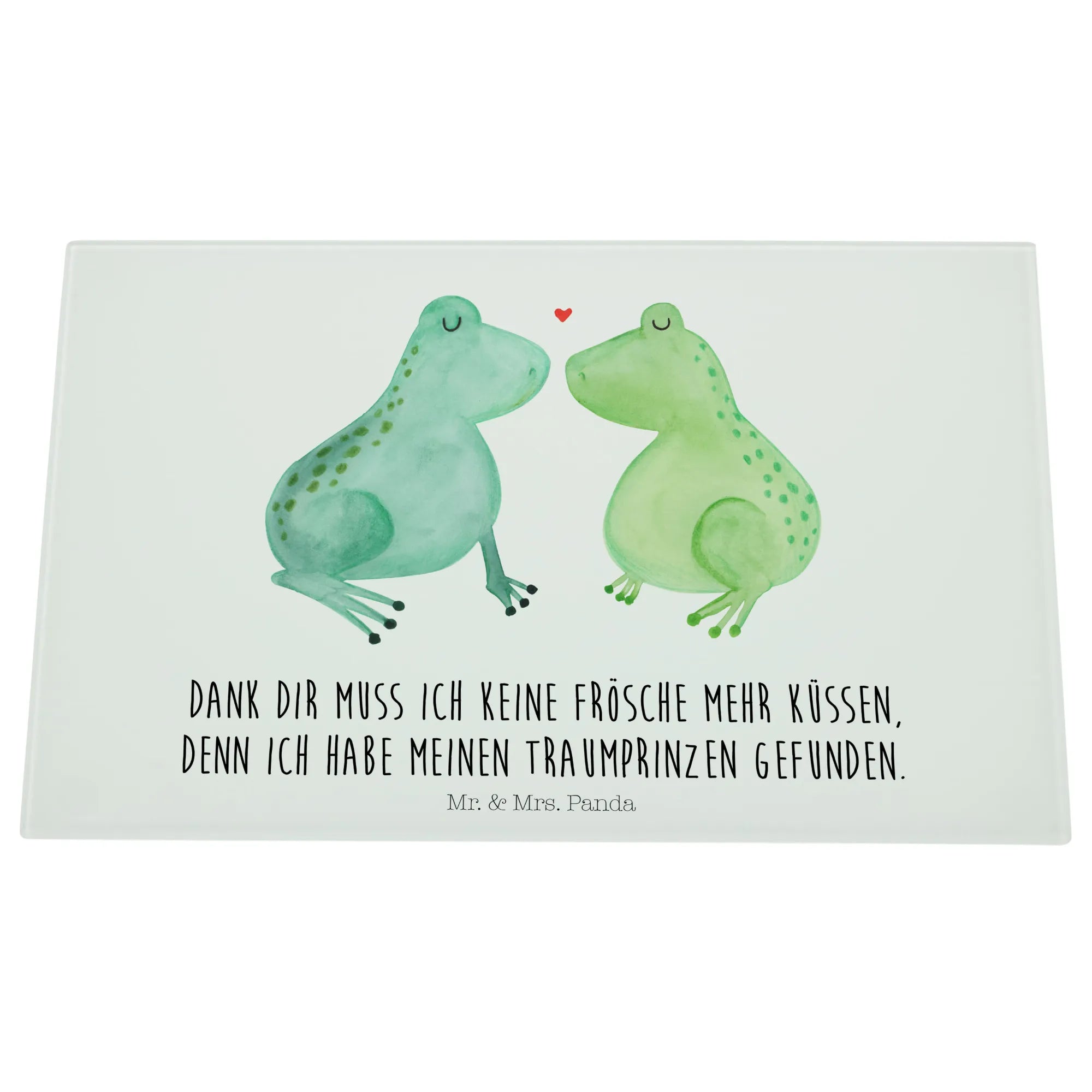 Das XL Glas Schneidbrett mit dem süßen Motiv 'Frosch Liebe' von Mr. & Mrs. Panda ist das perfekte Geschenk für Verliebte! Mit seinem herzlichen Slogan 'Dank dir muss ich keine Frösche mehr Küssen, denn ich habe meinen Traumprinzen gefunden' ist es nicht nur ein praktisches Küchenutensil, sondern auch ein liebevolles Liebesgeschenk.