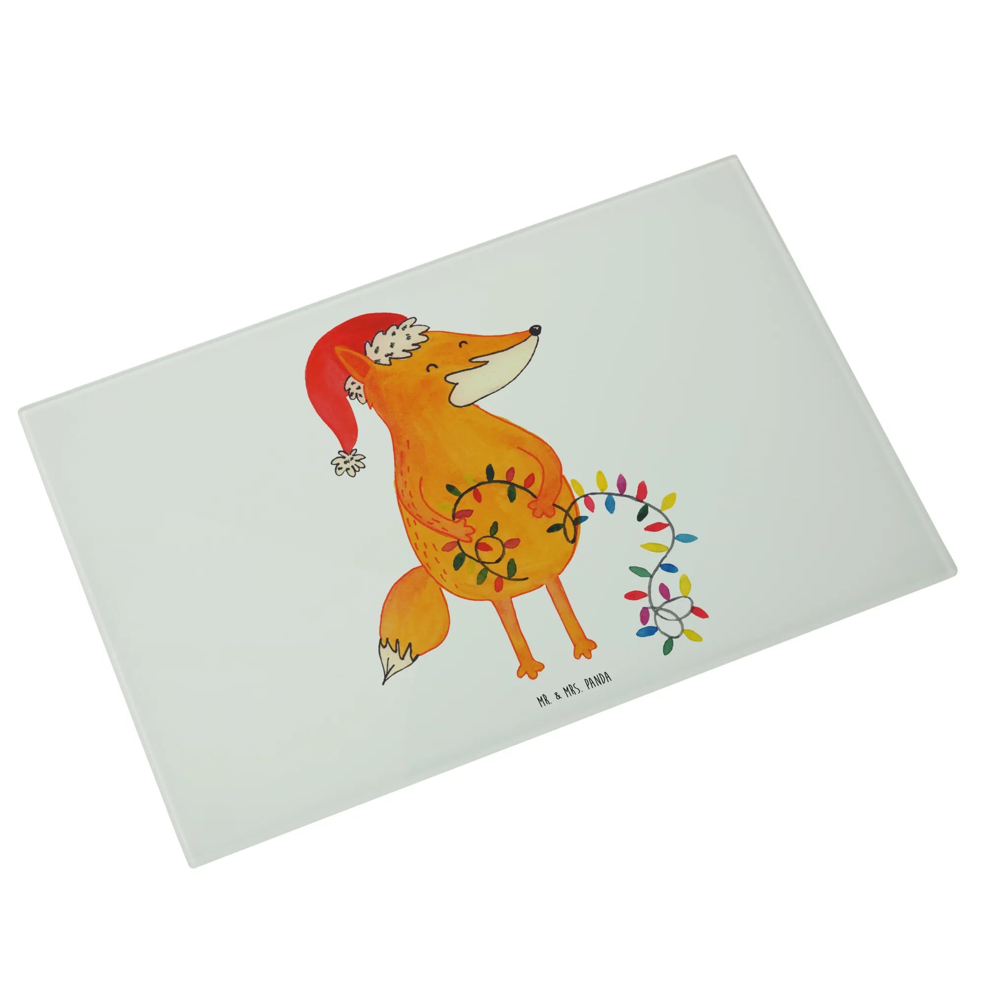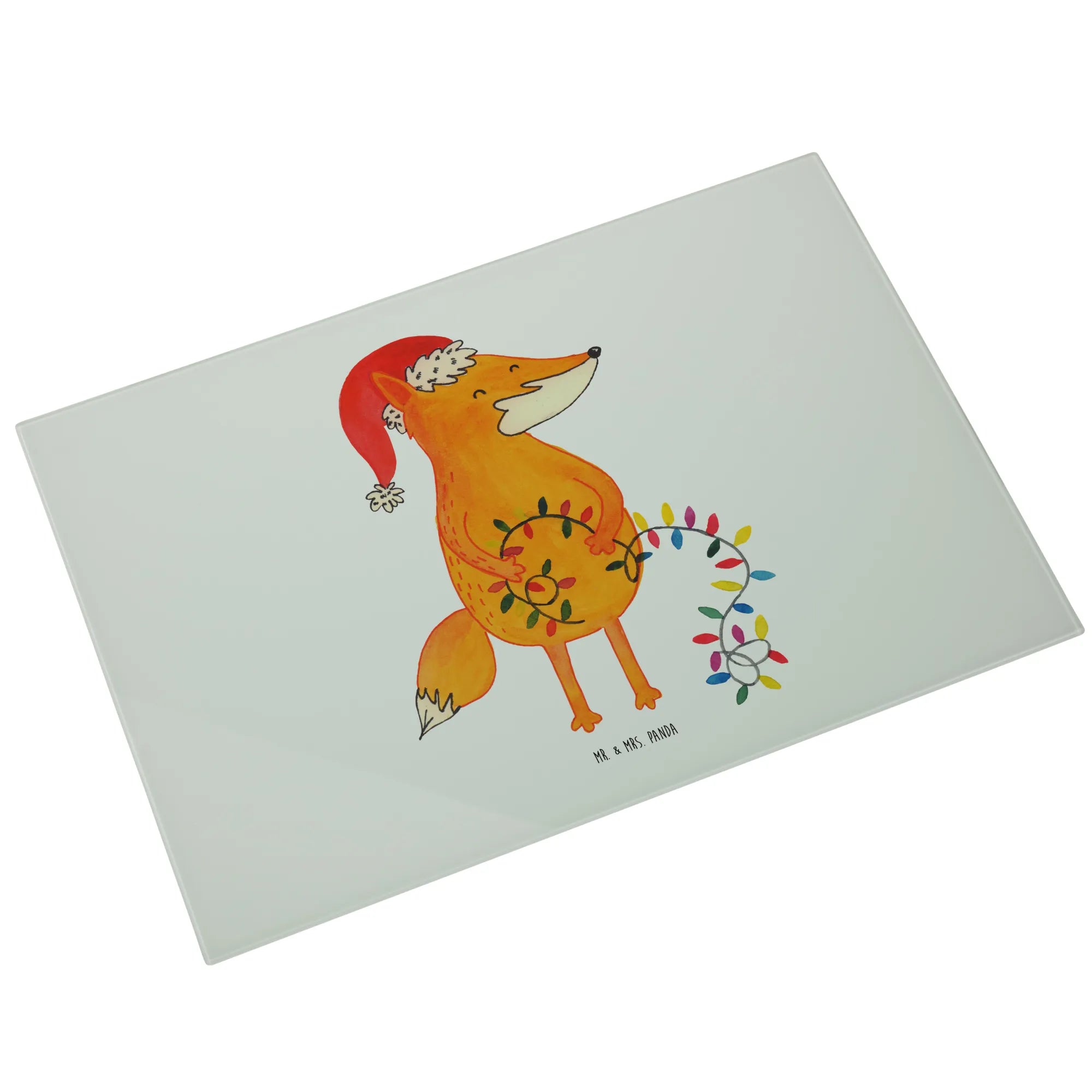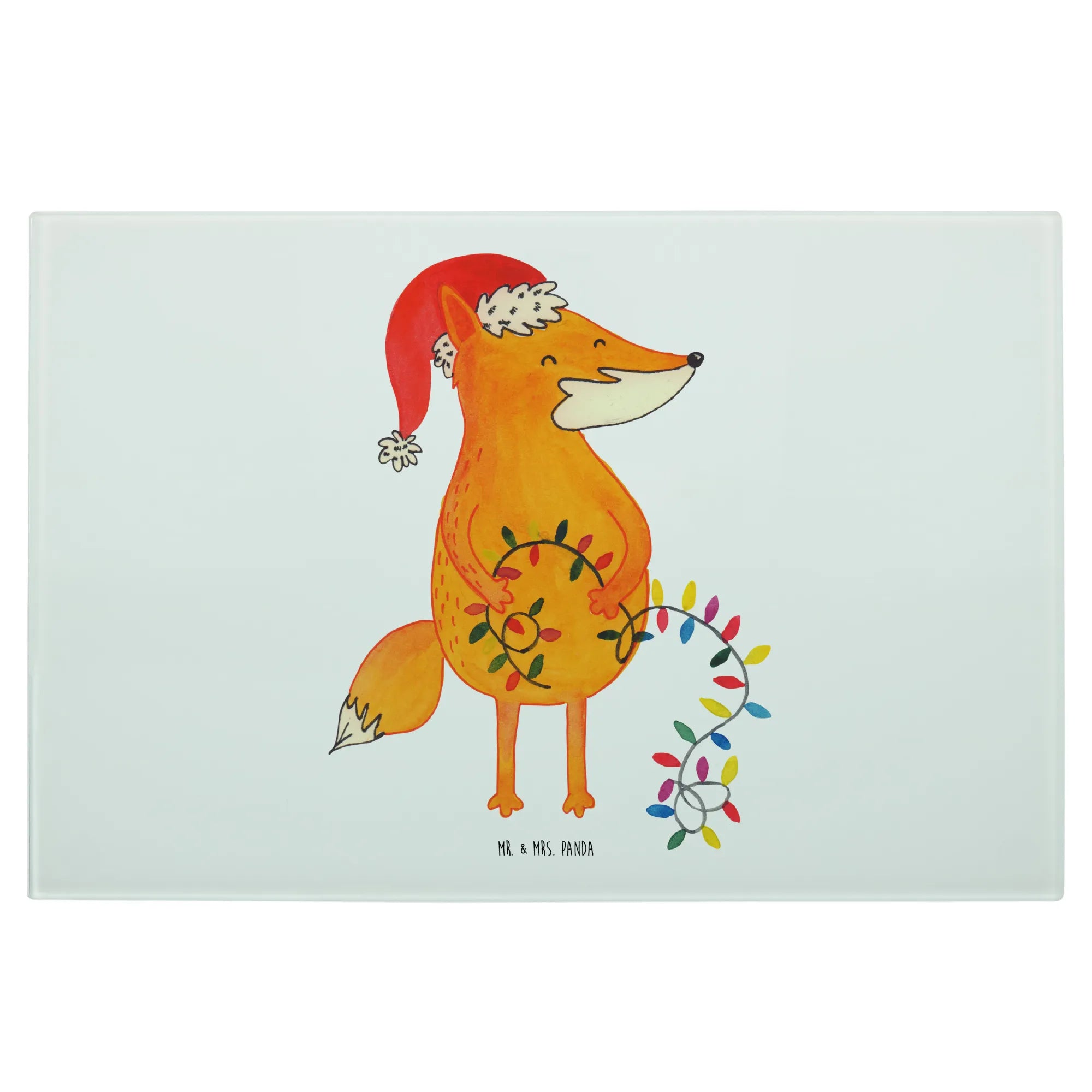 Das Medium Glas Schneidbrett Fuchs Weihnachten von Mr. & Mrs. Panda ist das perfekte Geschenk für die bevorstehenden Feiertage! Mit einem fröhlichen Fuchs in einer niedlichen Weihnachtsmütze und einer Lichterkette, bringt dieses handgezeichnete Design Freude und festliche Stimmung in jede Küche. Die warme Farbgebung, die an Wintermotive erinnert, lässt dieses Schneidebrett nicht nur als Küchenutensil, sondern auch als dekorativen Blickfang auf deinem Tisch glänzen.
