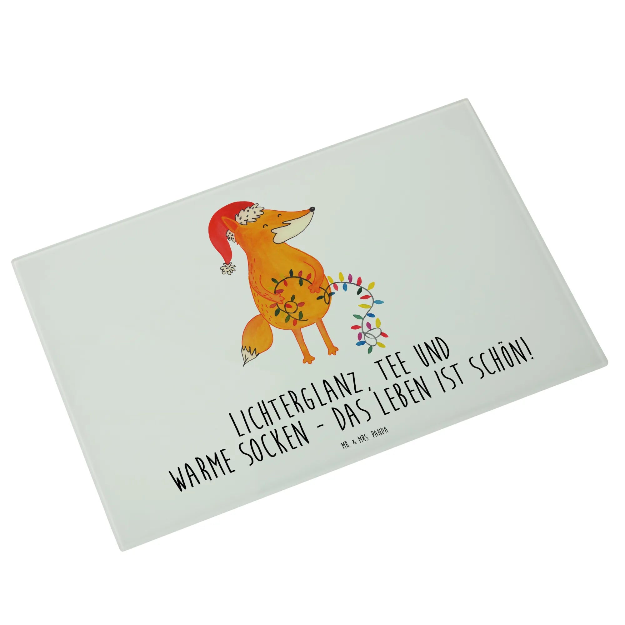 Mit dem Slogan 'Lichterglanz, Tee und warme Socken – das Leben ist schön!' ist es perfekt, um die Gemütlichkeit der Winterzeiten hervorzuheben. Schenke Lächeln, Wärme und Freude mit dem Medium Glas Schneidbrett Fuchs Weihnachten von Mr. & Mrs. Panda!