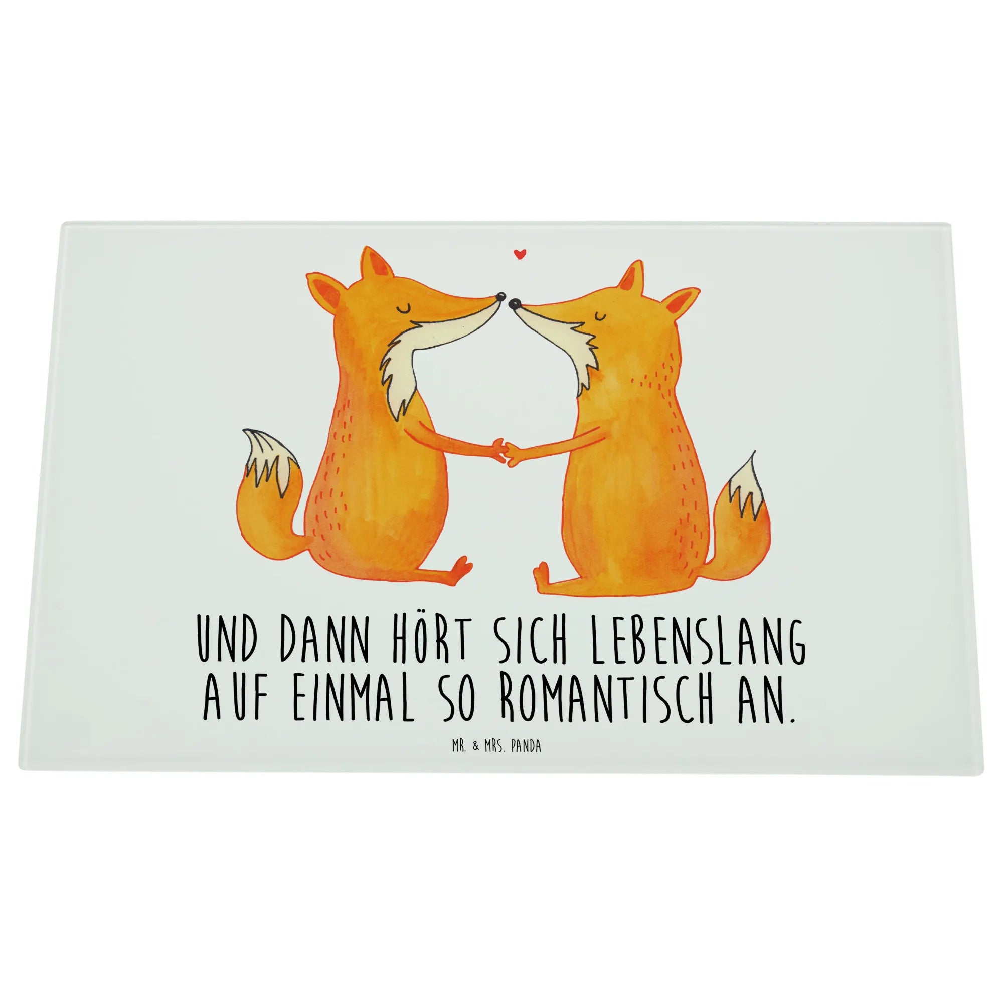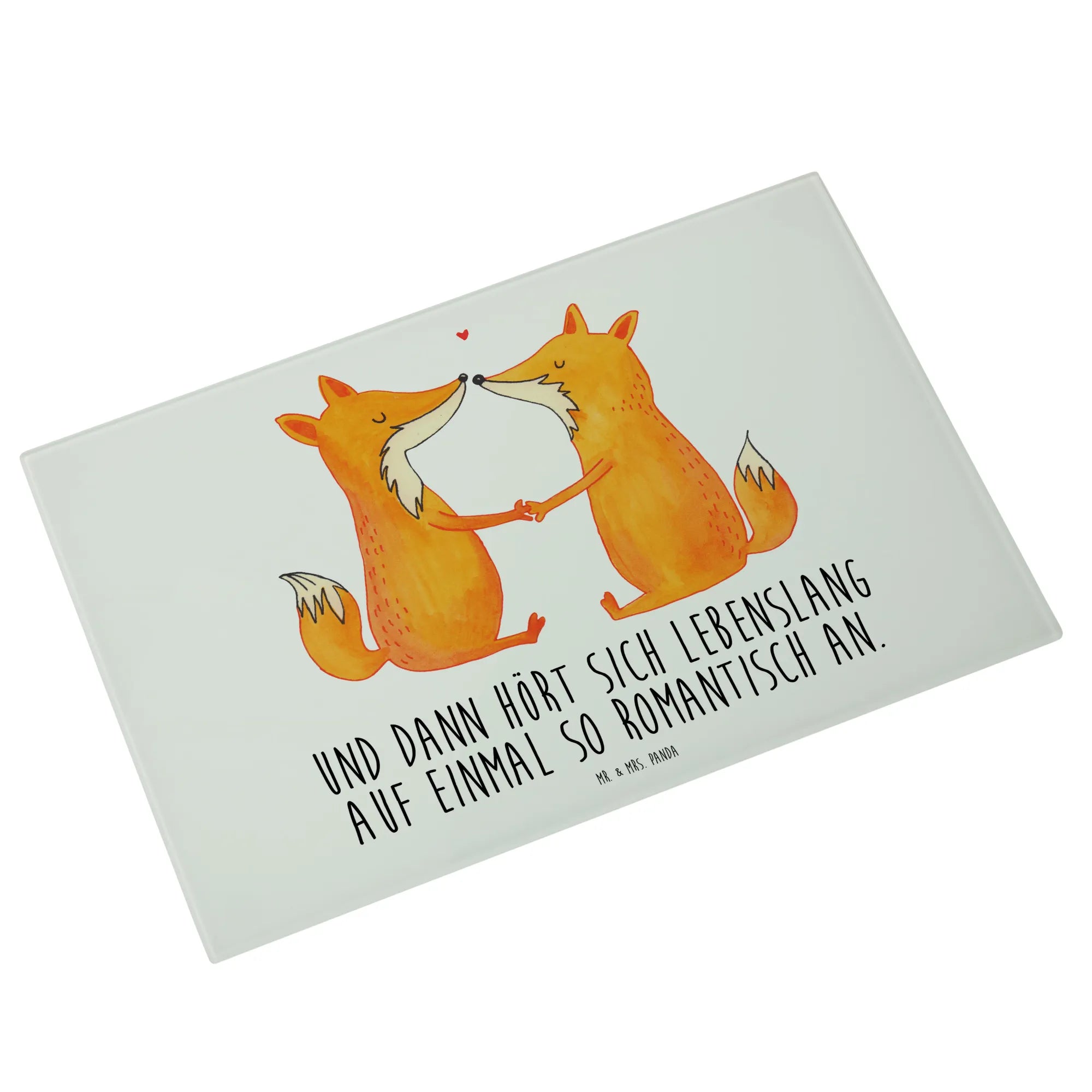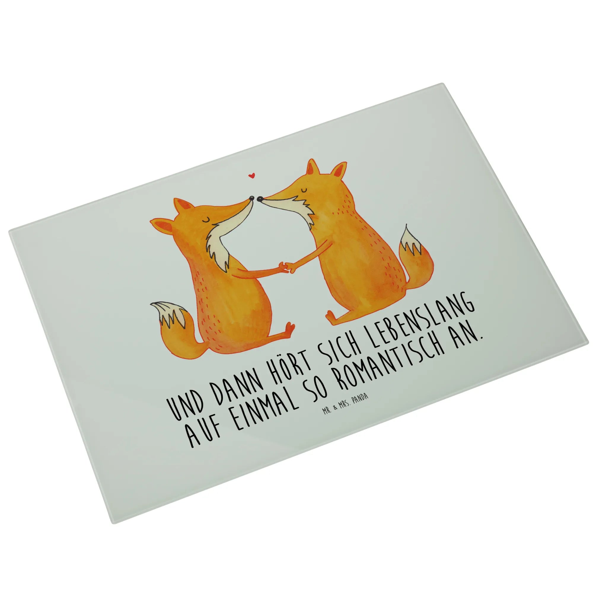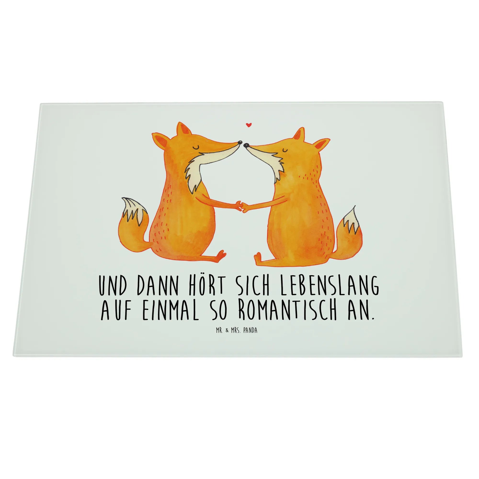 Das XL Glas Schneidbrett "Füchse Liebe" von Mr. & Mrs. Panda ist der perfekte Begleiter für alle, die in ihrer Küche einen Hauch von Romantik verbreiten möchten.